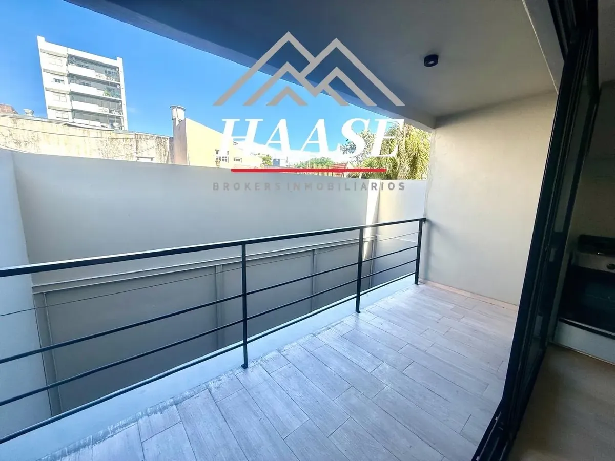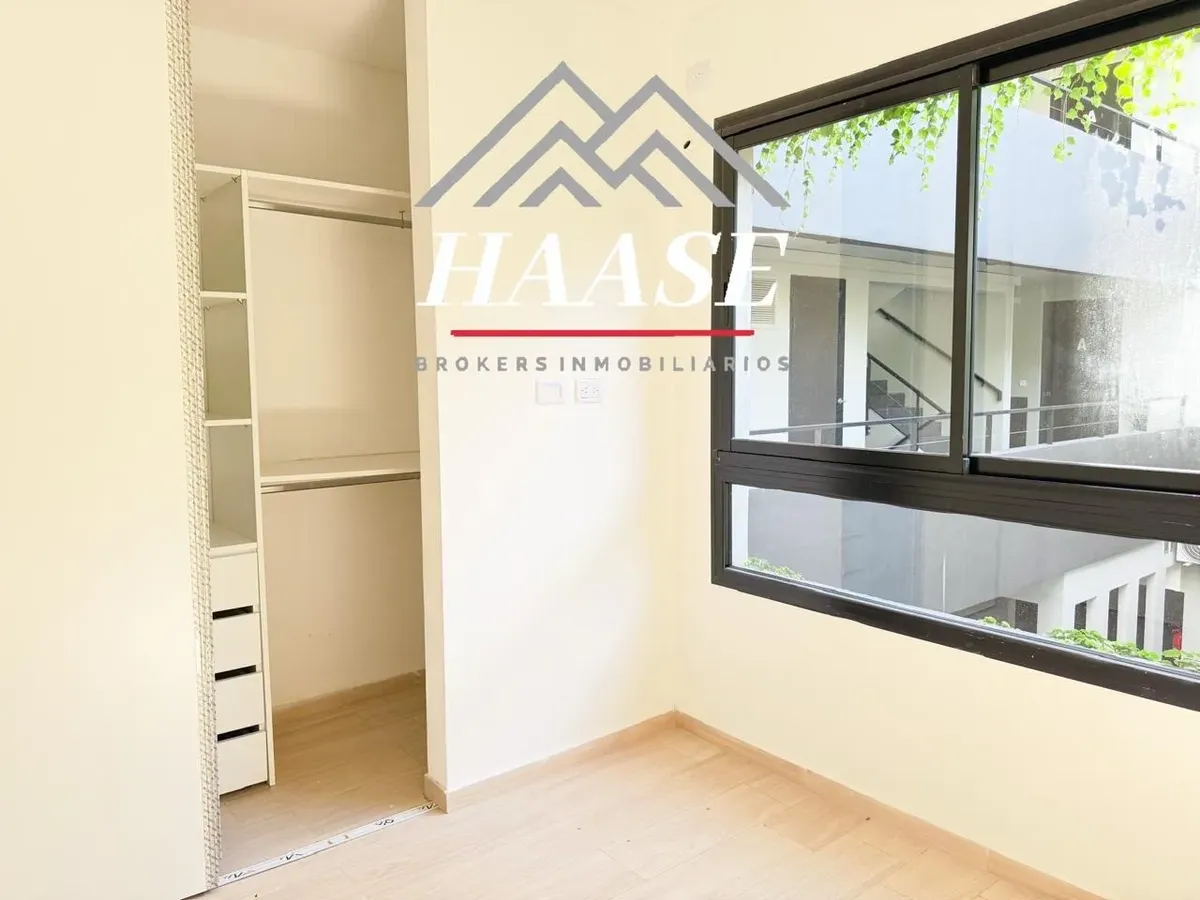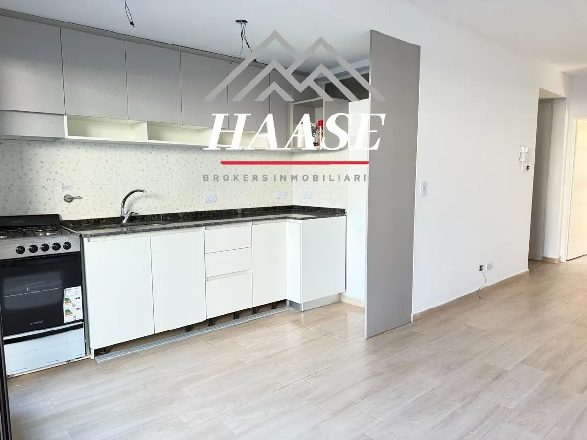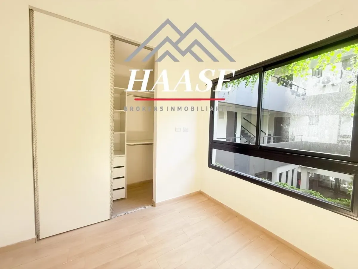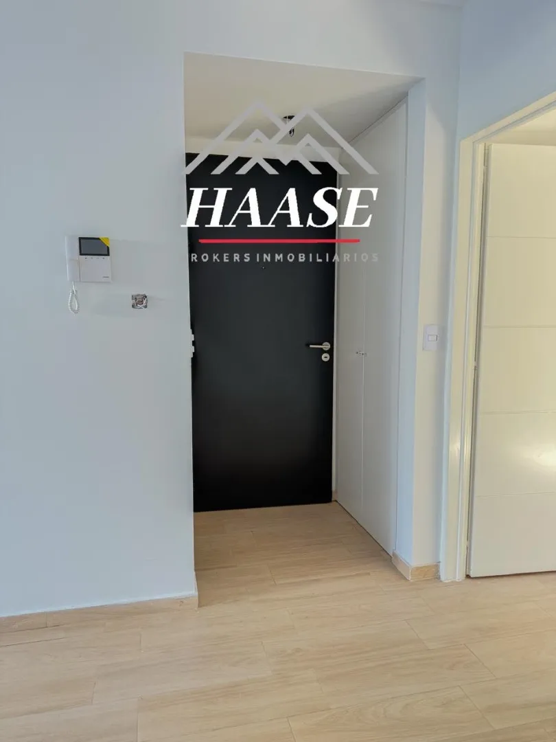 Квартира 2 ambientes площадью 53 m², 1-й этаж, окна во двор (contrafrente), с балконом. Планировка включает прихожую, гостиную-столовую с панорамным остеклением и выходом на балкон, полуприложенную кухню с газовой плитой, спальню с полувместительной гардеробной и встроенными шкафами, а также ванную. Квартира с двумя новыми кондиционерами; отопление тёплым полом с термостатами, горячая вода и отопление обеспечиваются индивидуальной двухконтурной котельной. На балконе размещены котёл и предусмотре