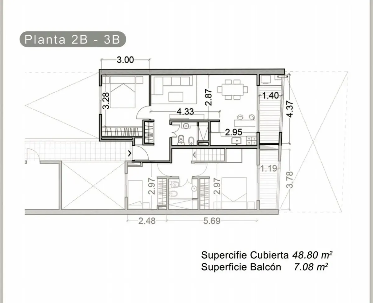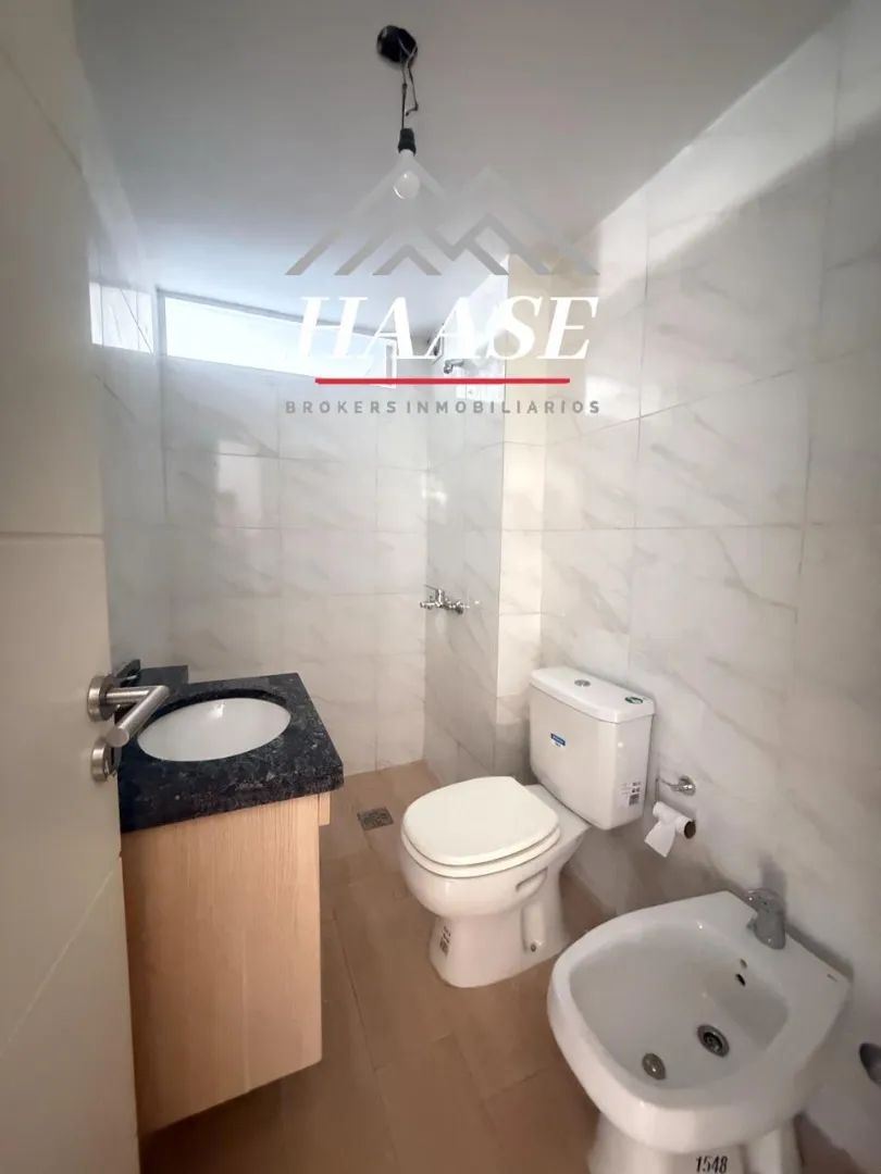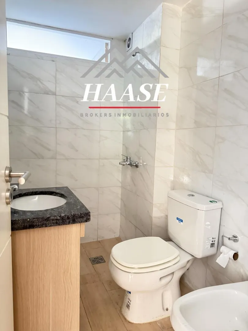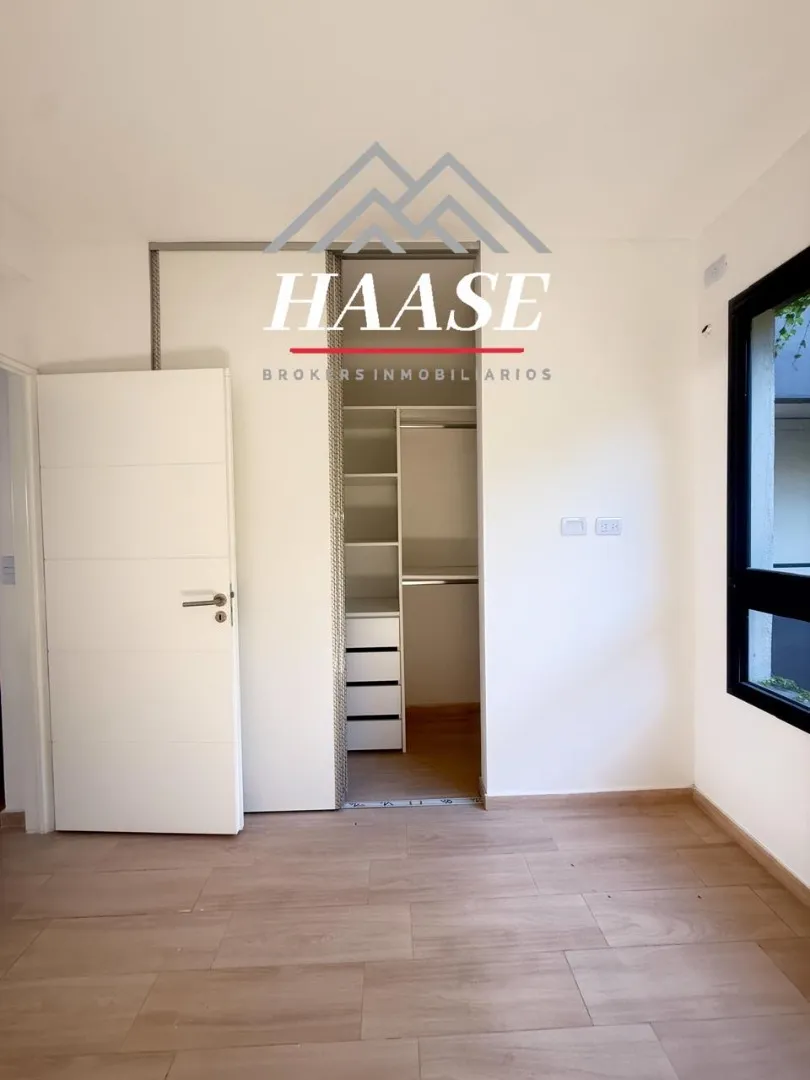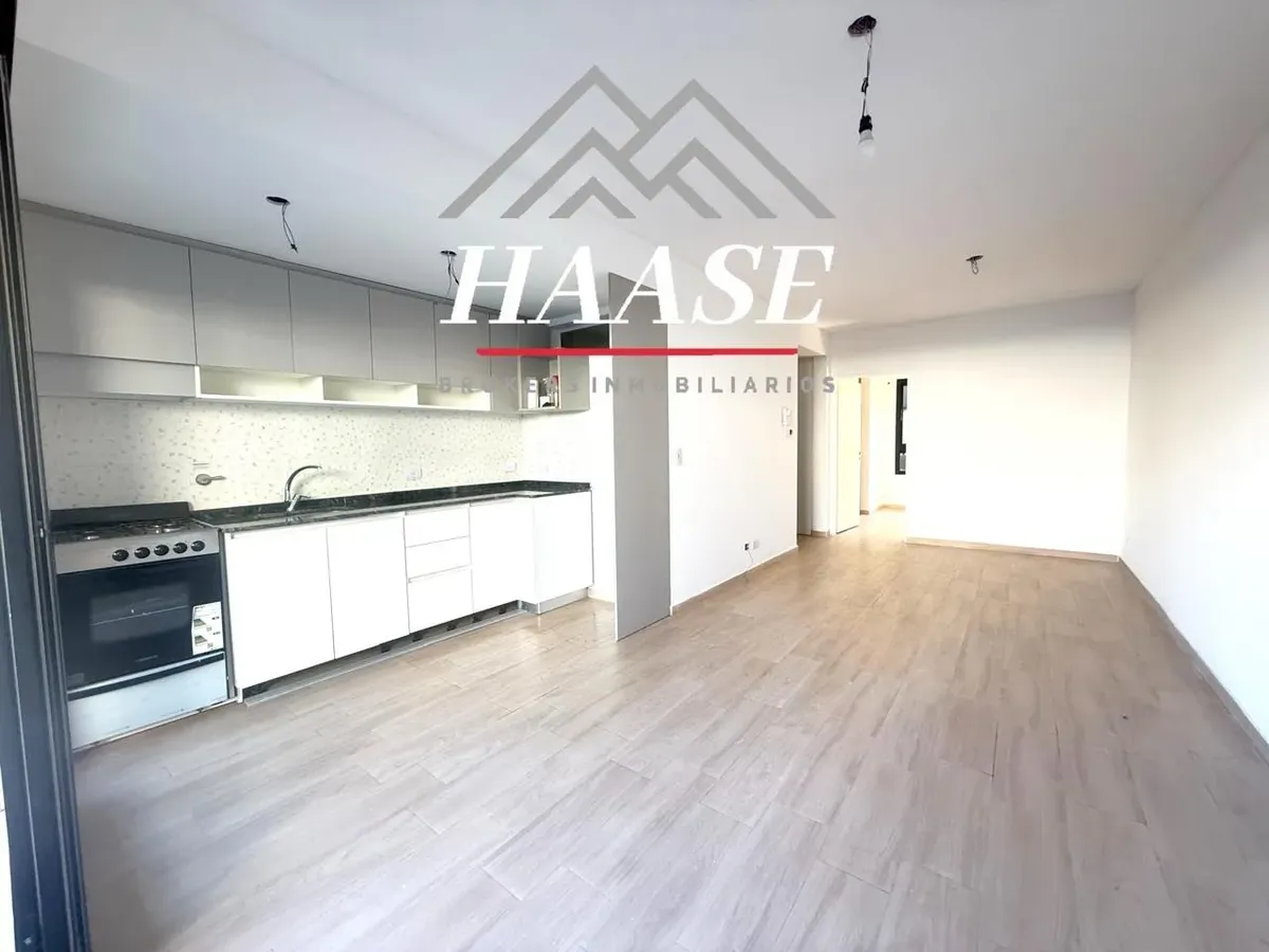 Квартира 2 ambientes площадью 53 m², 1-й этаж, окна во двор (contrafrente), с балконом. Планировка включает прихожую, гостиную-столовую с панорамным остеклением и выходом на балкон, полуприложенную кухню с газовой плитой, спальню с полувместительной гардеробной и встроенными шкафами, а также ванную. Квартира с двумя новыми кондиционерами; отопление тёплым полом с термостатами, горячая вода и отопление обеспечиваются индивидуальной двухконтурной котельной. На балконе размещены котёл и предусмотре