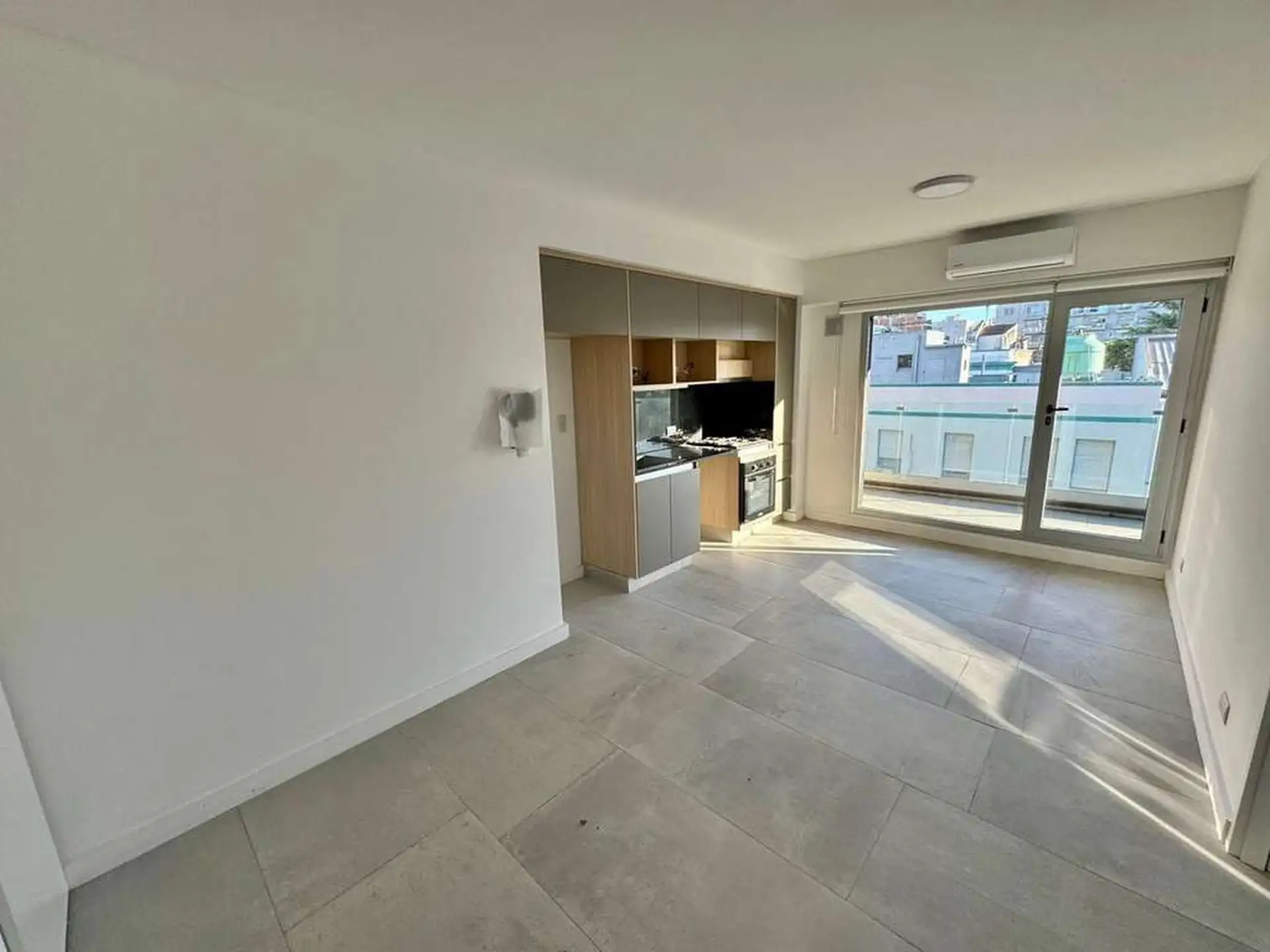 Квартира 2 ambientes в Belgrano. Площадь в описании не указана: гостиная с кухней открытой планировки, туалет, спальня с гардеробом в suite и отдельной ванной. Большие окна на улицу и выход на полуоткрытый балкон. Установлен сплит холод/тепло, предусмотрено место для установки стиральной машины. Коммунальные платежи здания указаны как низкие. Условия аренды: обеспеченные подтверждённые доходы, гарантия CABA или страхование залога-страховка аренды, депозит 1 месяц и аванс 1 месяц.
