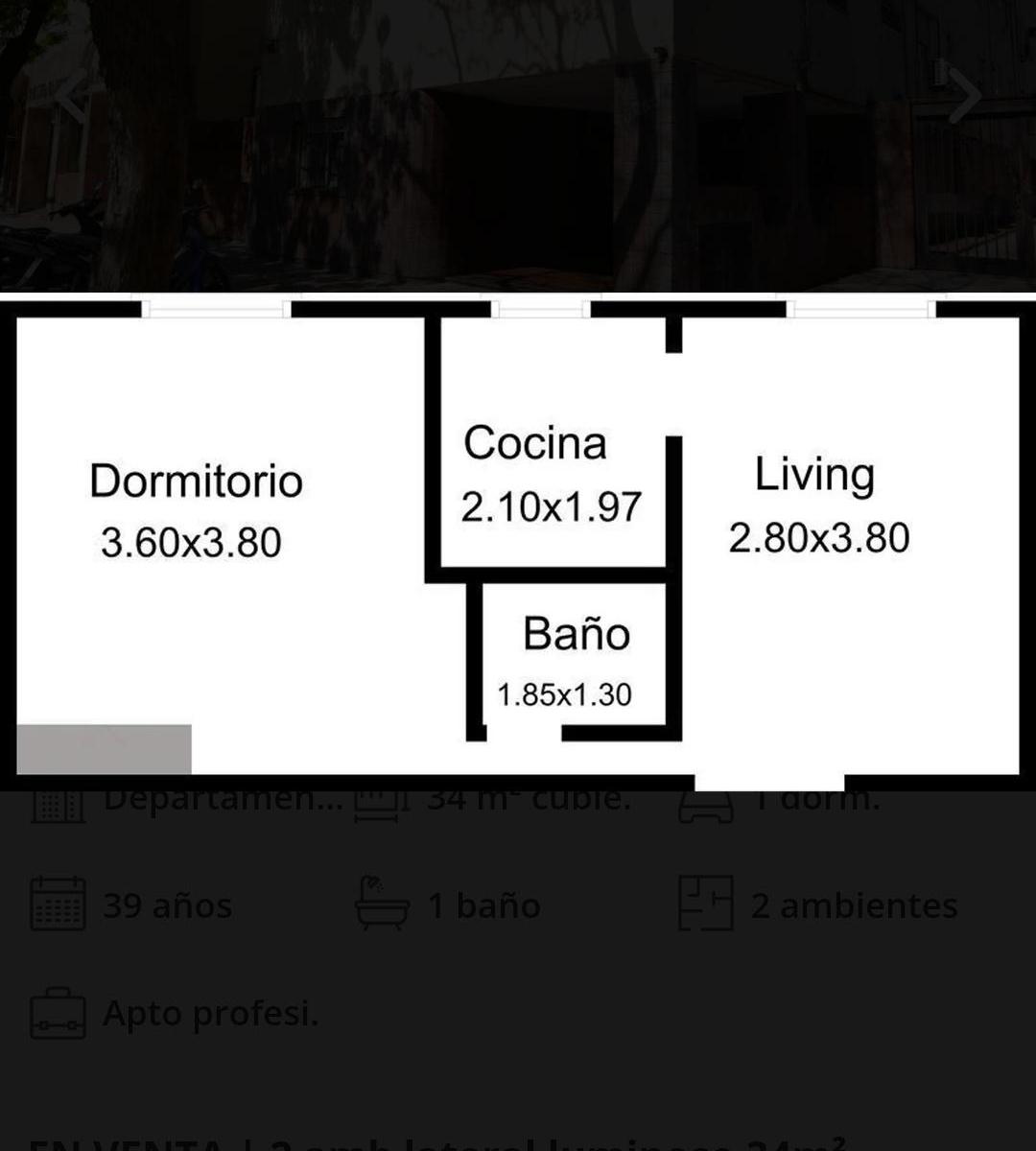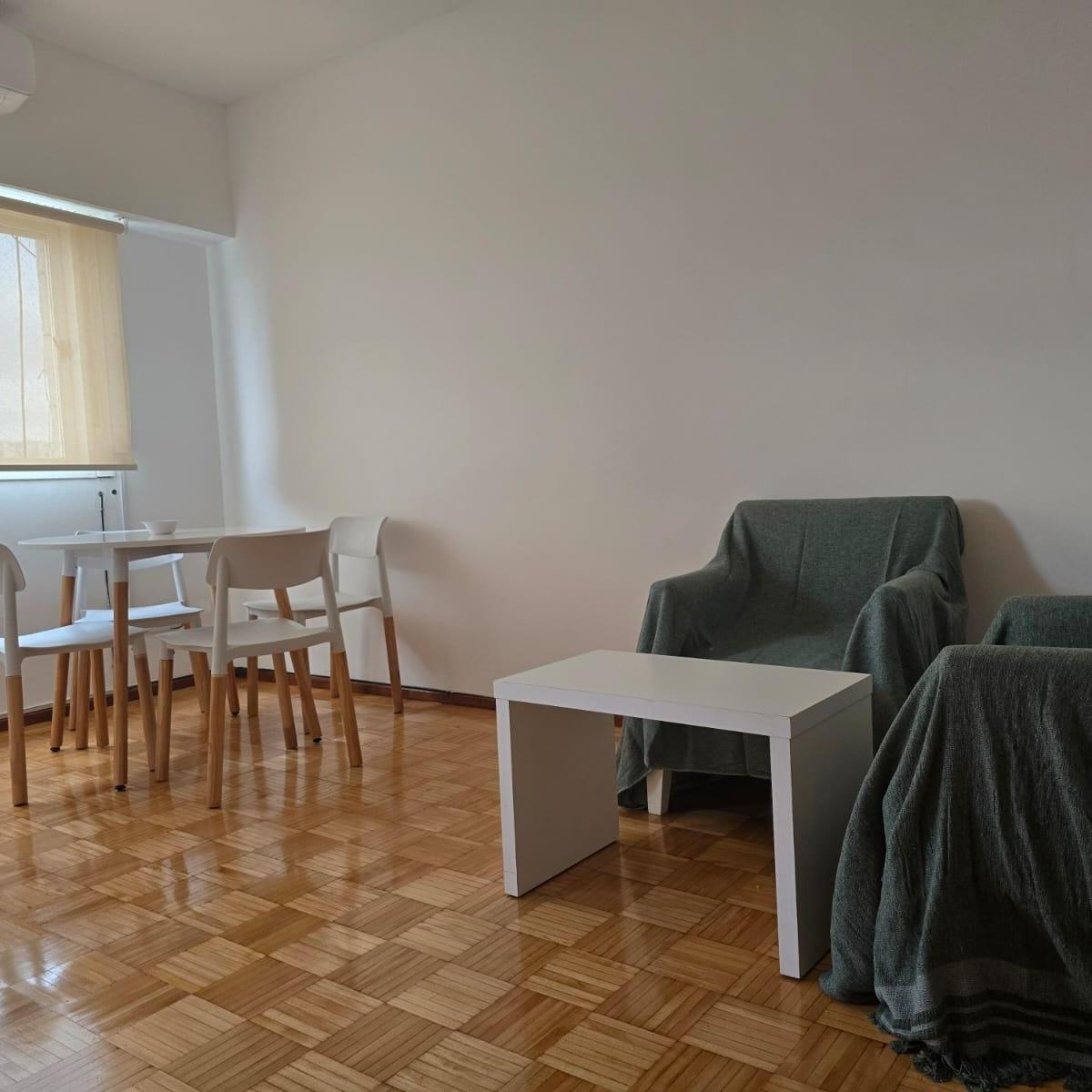 Квартира в формате 2 ambientes площадью 34 m² с окнами на бок (lateral) в Coghlan. Квартира оборудована: холодильник с морозильной камерой, шторы Black Out, система освещения. Оборудована бойлером (calefón) и кондиционером split (холод/тепло), полы паркет, ванная с душем. В гостиной два небольших дивана и стол со 4 стульями; спальное место — кровать 1 plaza с дополнительной раскладной кроватью, которая убирается из-под основной. Возможно проживание максимум 2 человек, без домашних животных. Комм