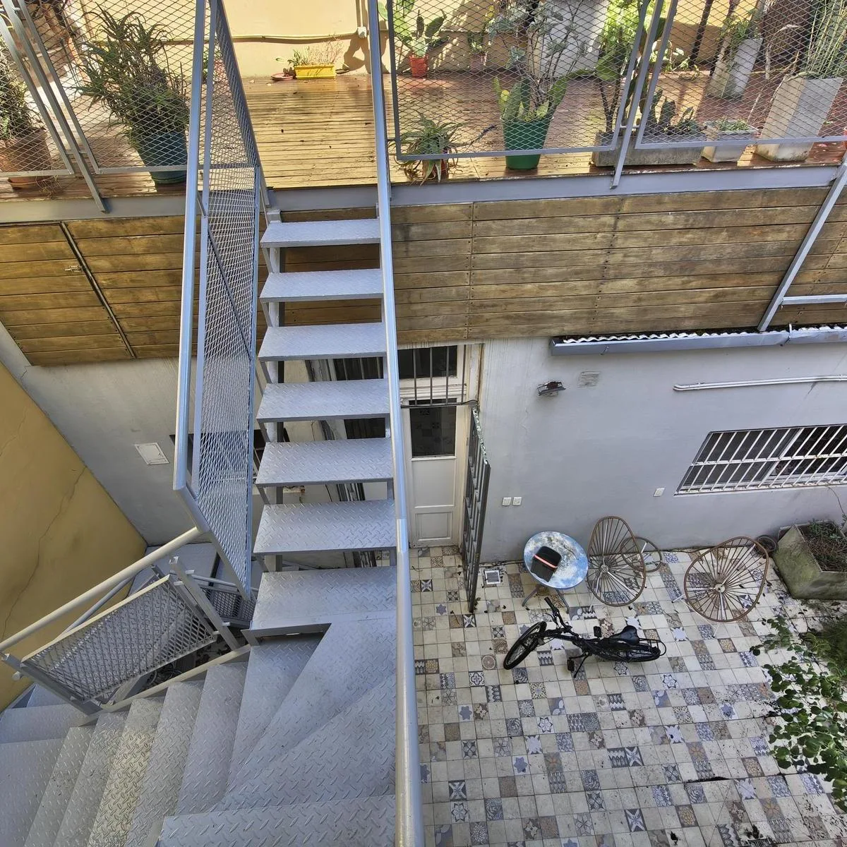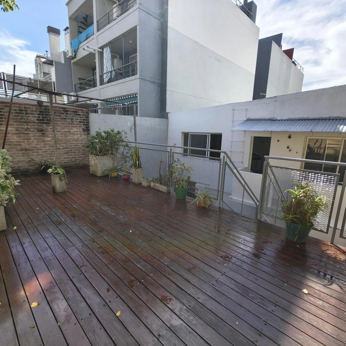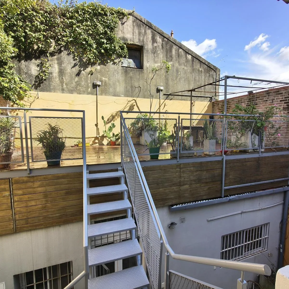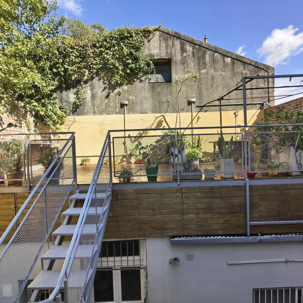 Квартира PH на правах Propiedad Horizontal (квартира с отдельным входом) в Coghlan, 2 комнаты, 50 m² крытых, с террасой 30 m² и окнами на дневной свет во внутренней части. Доступ в единицу осуществляется по общей галерее через общий двор; лестница ведёт на первый этаж, вход только по лестнице. В планировке: гостиная-столовая, спальня с широкими окнами, полная ванная. Терраса оборудована настилом; кондиционер или конкретная бытовая техника в описании не указаны. Коммунальные платежи здания — Aysa