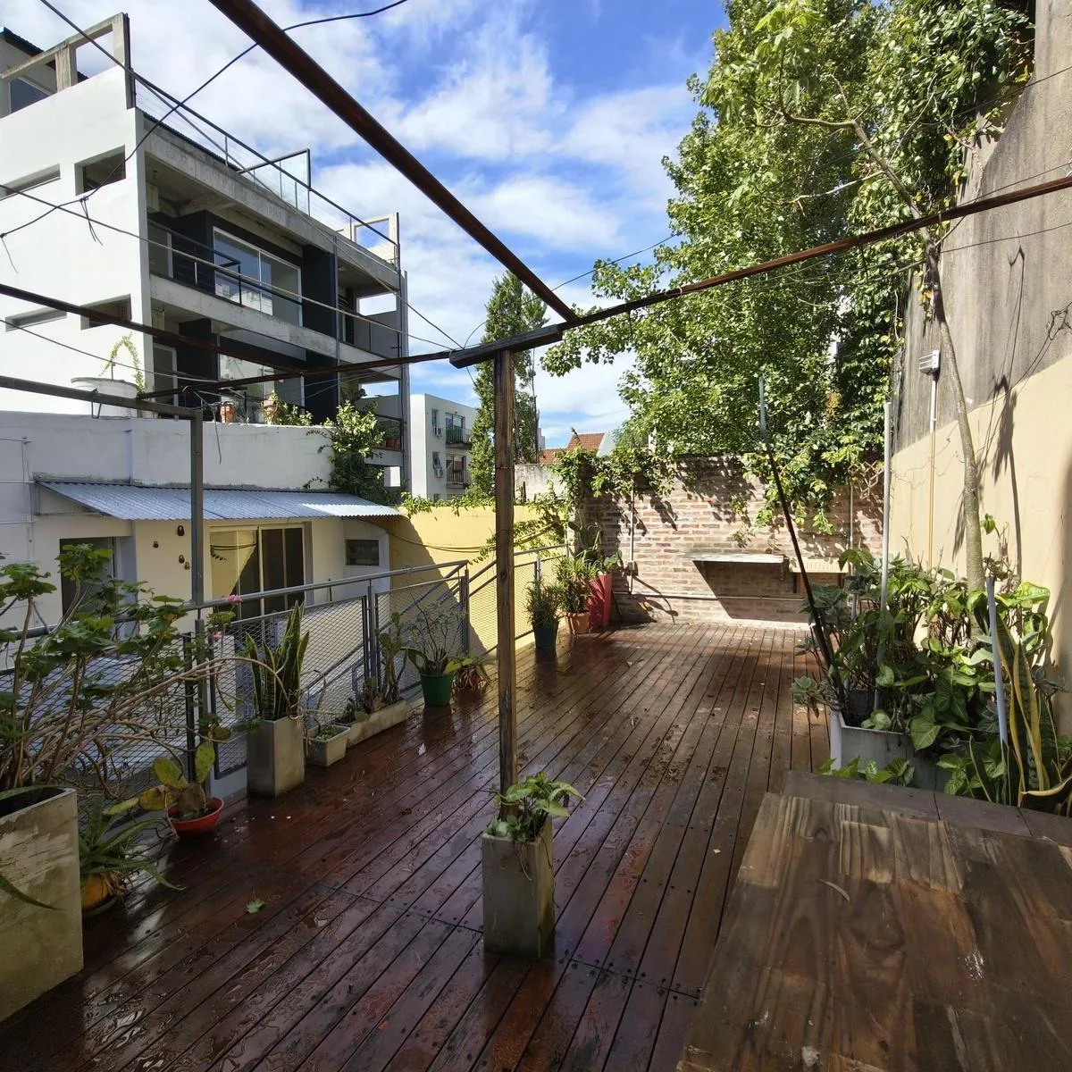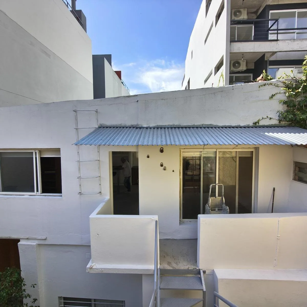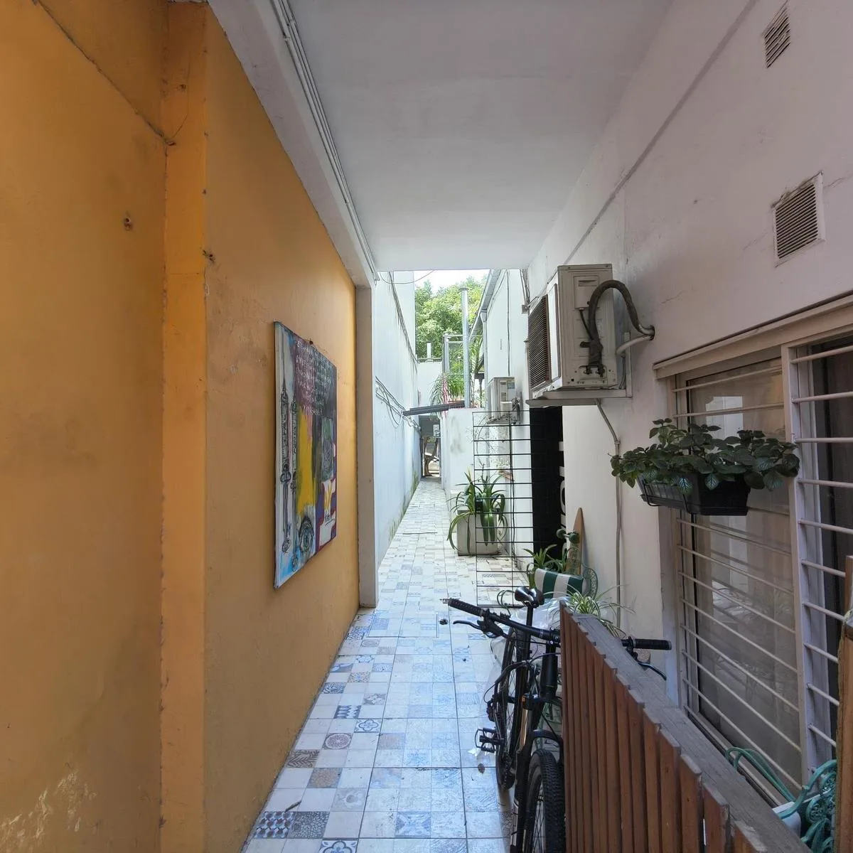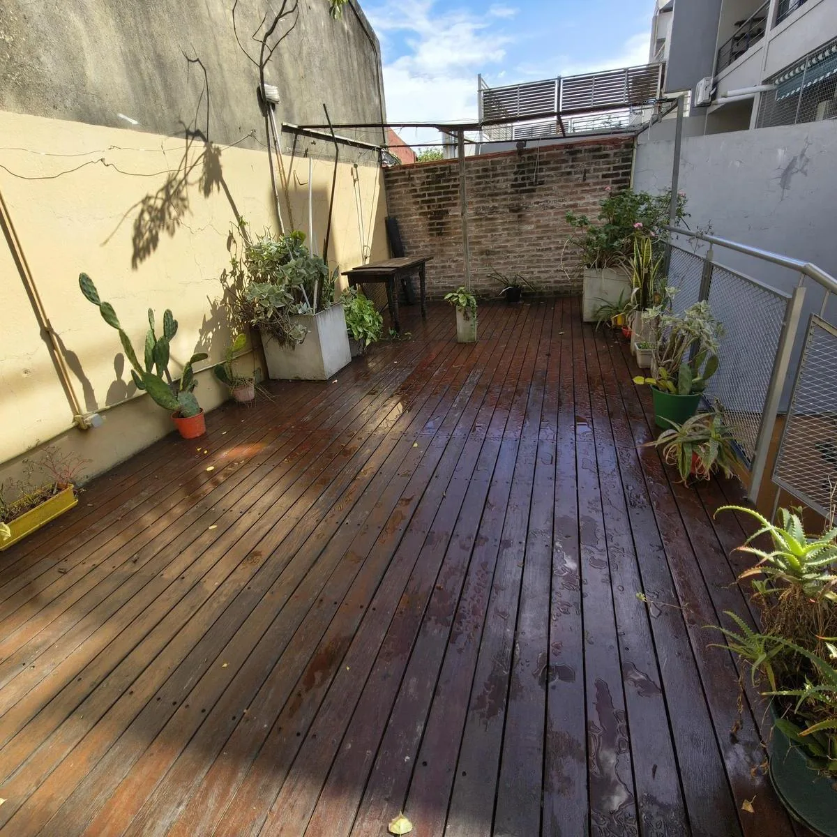 Квартира PH на правах Propiedad Horizontal (квартира с отдельным входом) в Coghlan, 2 комнаты, 50 m² крытых, с террасой 30 m² и окнами на дневной свет во внутренней части. Доступ в единицу осуществляется по общей галерее через общий двор; лестница ведёт на первый этаж, вход только по лестнице. В планировке: гостиная-столовая, спальня с широкими окнами, полная ванная. Терраса оборудована настилом; кондиционер или конкретная бытовая техника в описании не указаны. Коммунальные платежи здания — Aysa