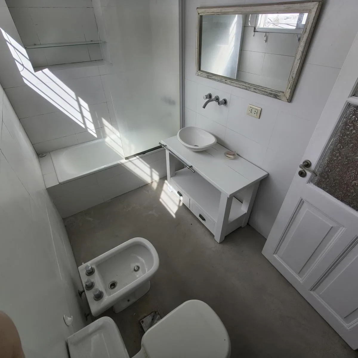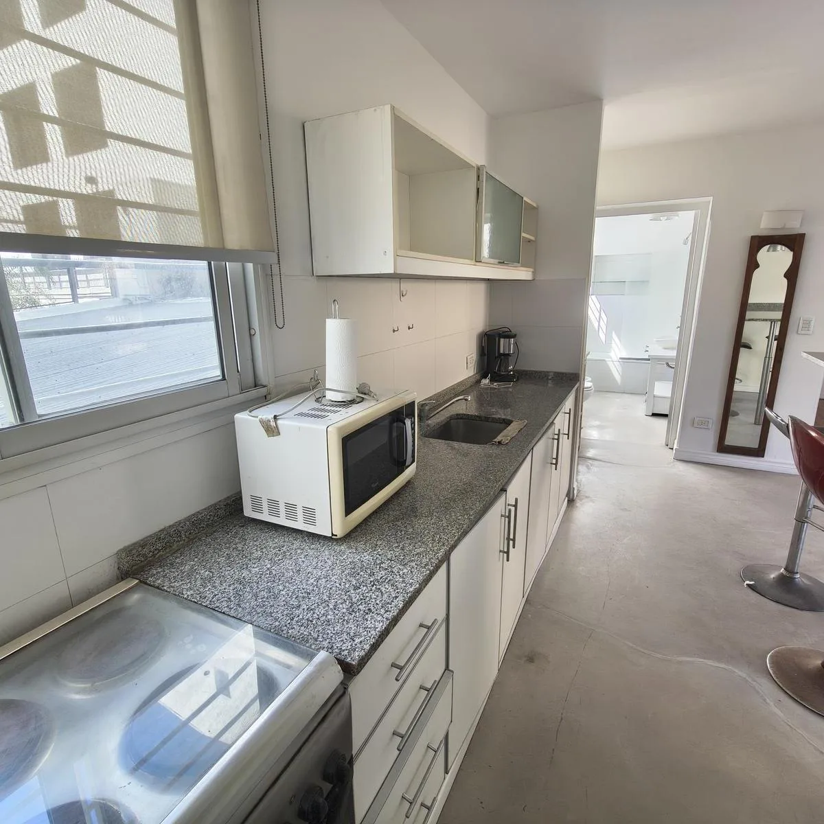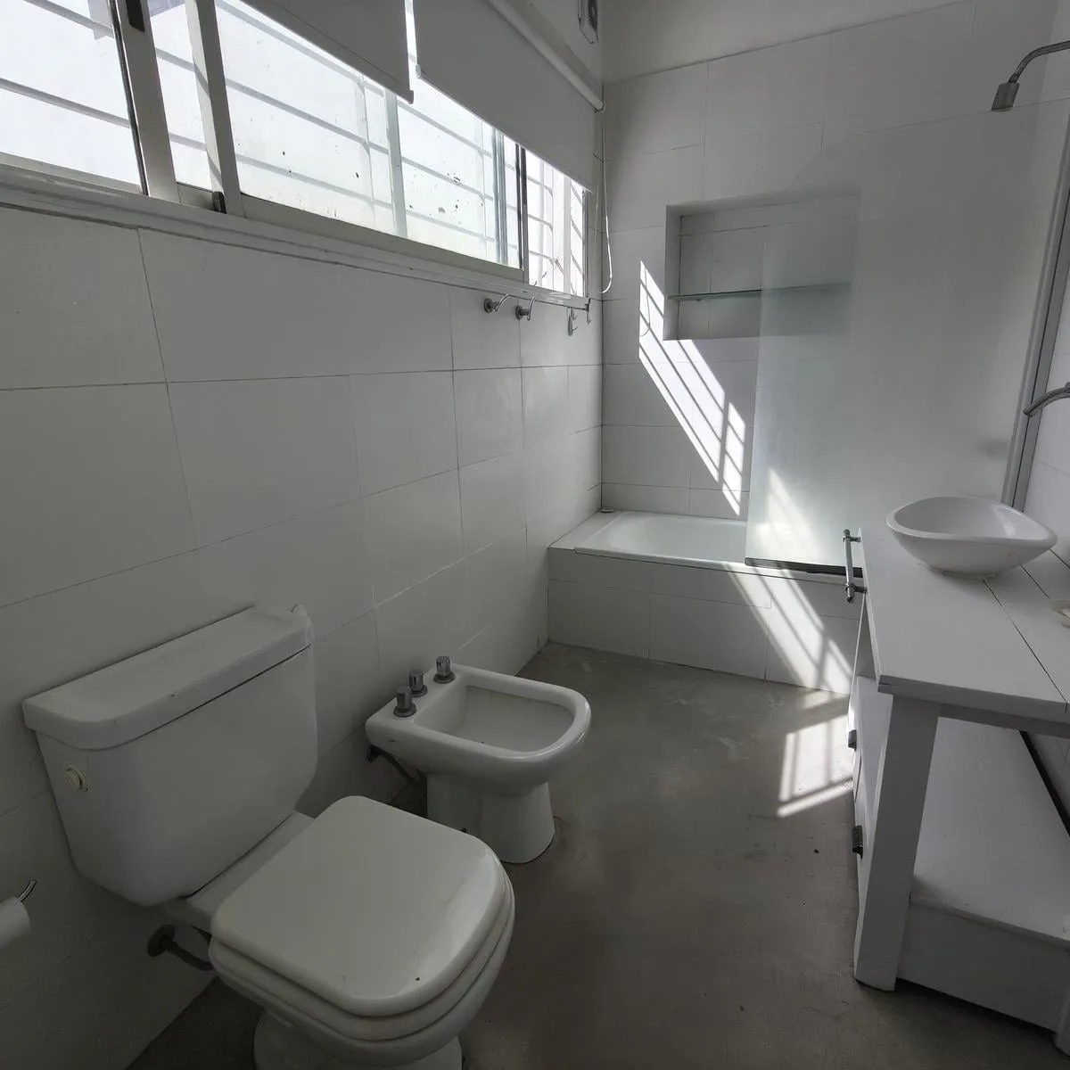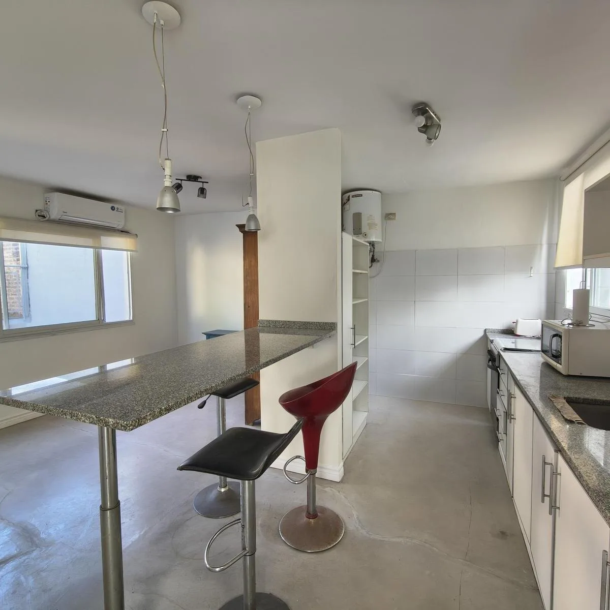 Квартира PH на правах Propiedad Horizontal (квартира с отдельным входом) в Coghlan, 2 комнаты, 50 m² крытых, с террасой 30 m² и окнами на дневной свет во внутренней части. Доступ в единицу осуществляется по общей галерее через общий двор; лестница ведёт на первый этаж, вход только по лестнице. В планировке: гостиная-столовая, спальня с широкими окнами, полная ванная. Терраса оборудована настилом; кондиционер или конкретная бытовая техника в описании не указаны. Коммунальные платежи здания — Aysa