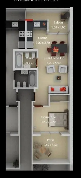 Квартира в Coghlan после 3 лет эксплуатации, варианты планировки: 2 ambientes или профессиональная студия, с возможностью (опционально) (закреплённого) парковочного места. Квартира расположена на четвертьэтаже с окнами во двор: два окна-балкона, один на внутриквартальный двор, второй на широкий балкон в форме буквы «L» площадью около 11 m². Просторное помещение с возможностью разделения для отдельной спальни с выходом во двор; кухня с постирочной зоной в форме «L» и отдельная ванная комната. Газ