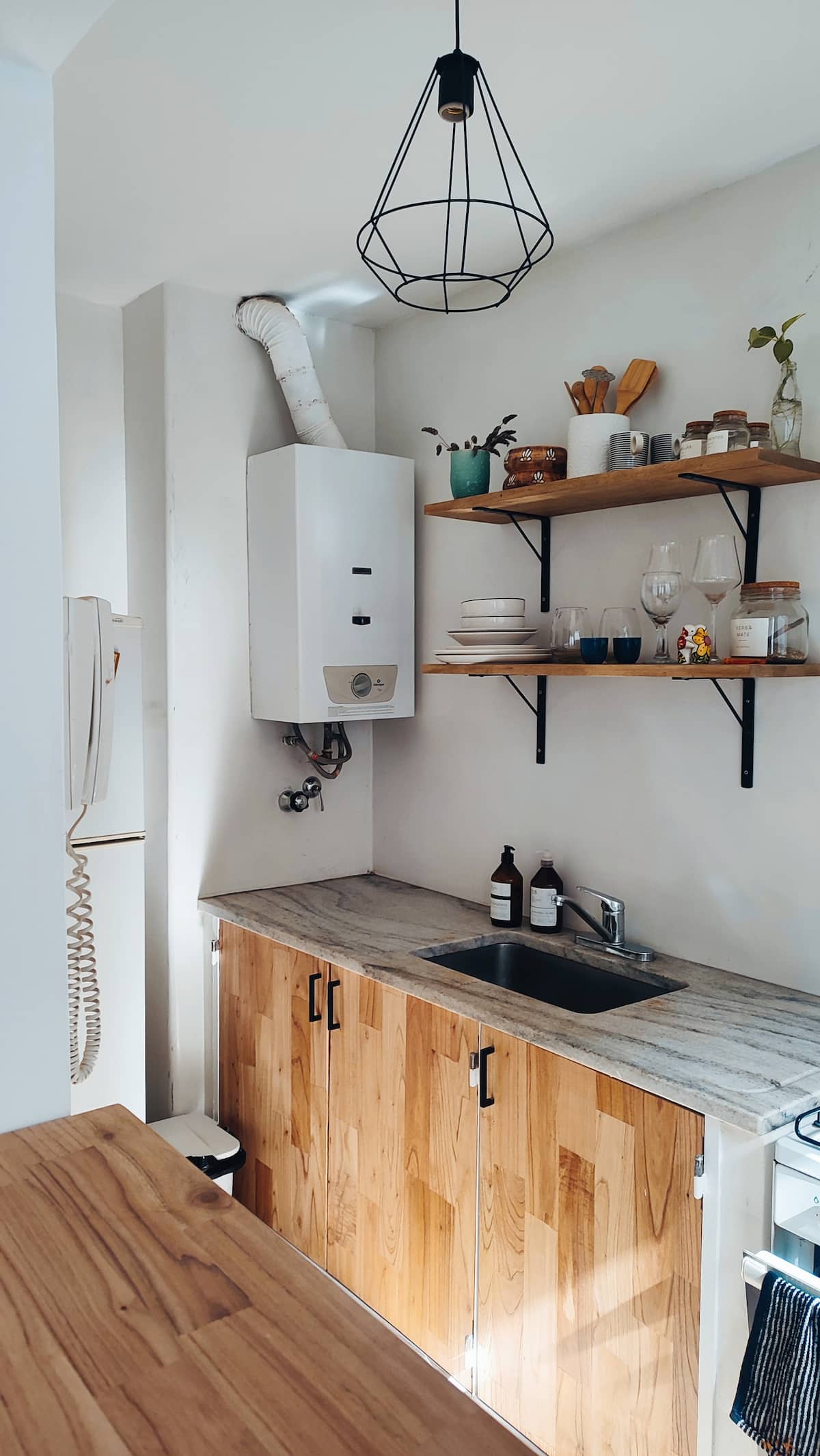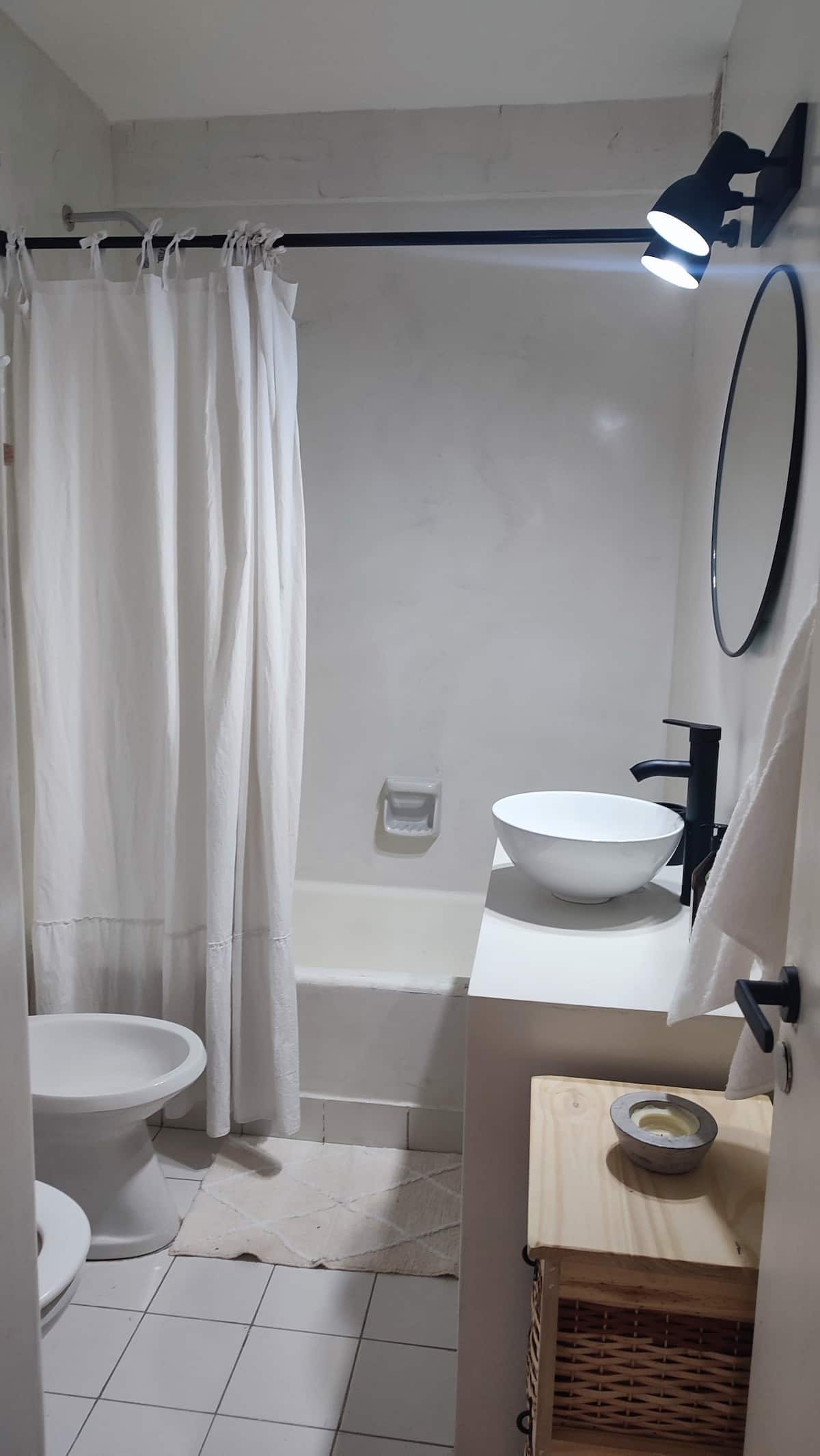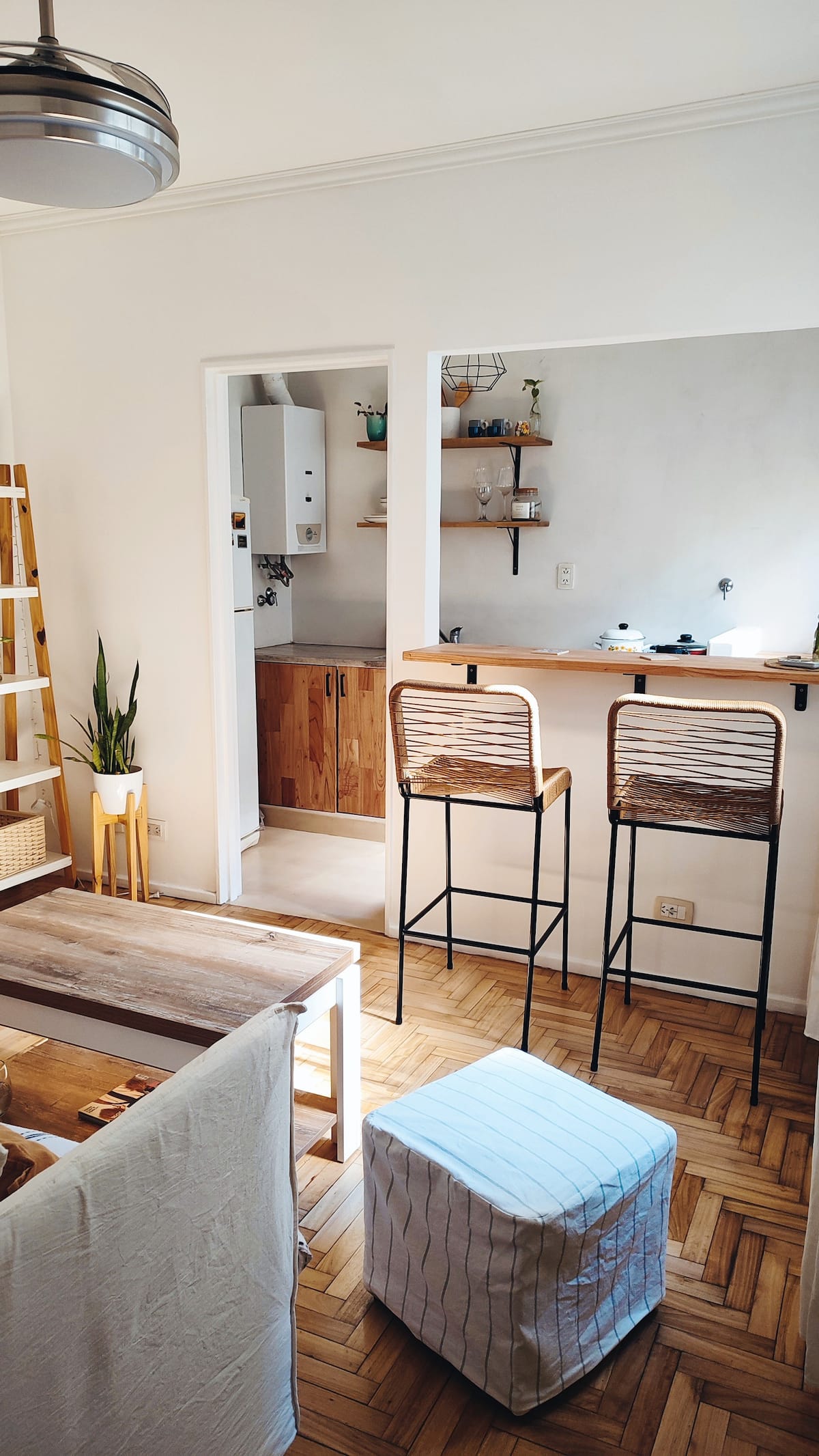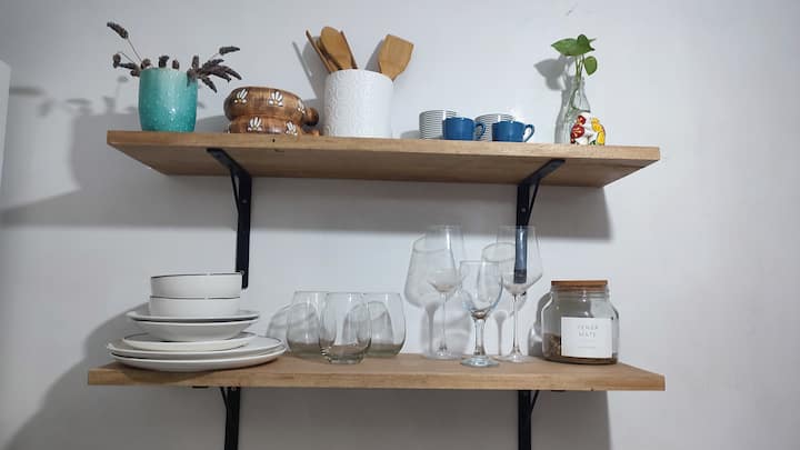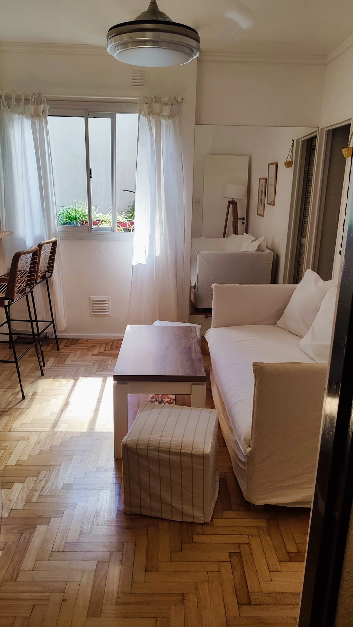 Квартира с двумя комнатами в Colegiales. В ней есть интегрированная кухня и спальня с двуспальной кроватью, где установлен телевизор. В прихожей предусмотрен шкаф для хранения, а также есть стул и письменный стол для работы.