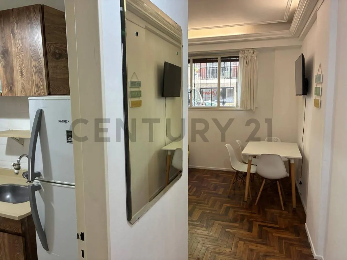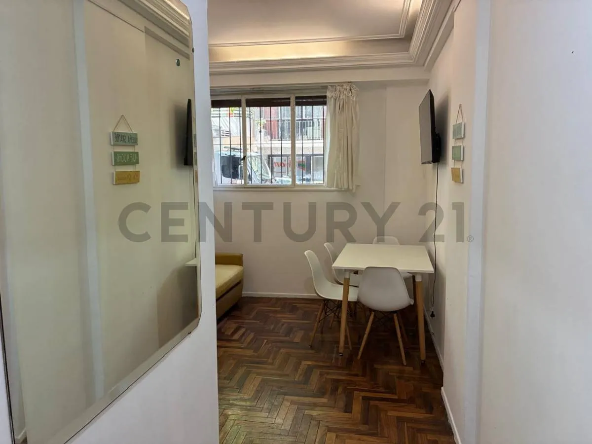 Квартира из 2 комнат площадью 50 m² в аренду в Belgrano, в доме с отдельным входом на уровне planta baja, с собственным внутренним двориком. Полностью меблирована, все электрическое, паркетные полы. Входной холл 2,02 x 1,10 m. Гостиная-столовая с диваном, столом, стульями, телевизором и панорамным окном во двор 3,75 x 2,85 m. Основная спальня с двуспальной кроватью, тумбами и встроенными шкафами, ванная комната с естественной вентиляцией. Кухня с верхними и нижними шкафами, холодильником, стирал