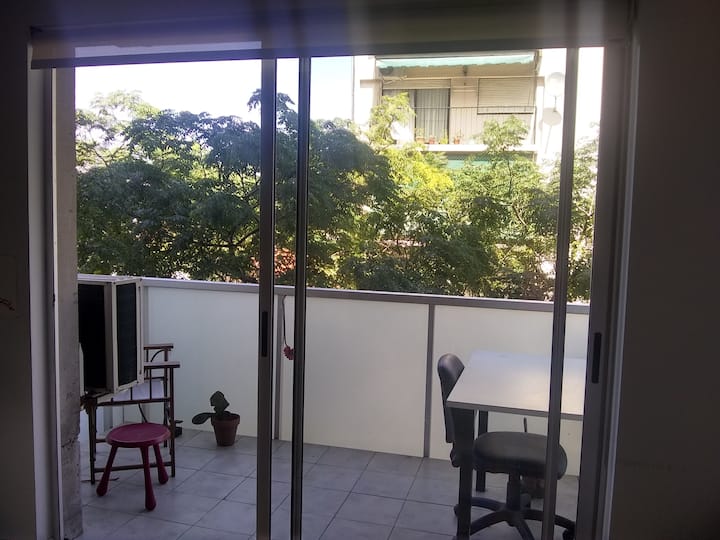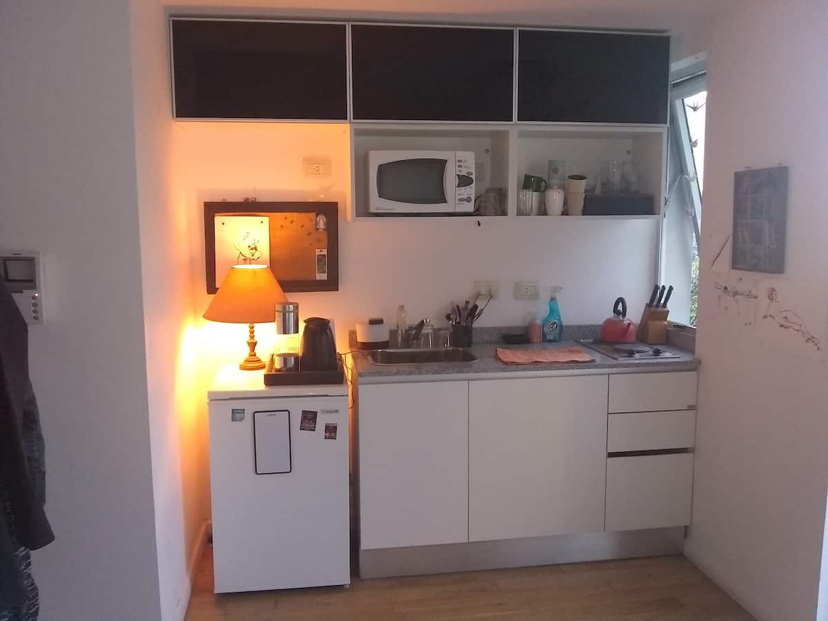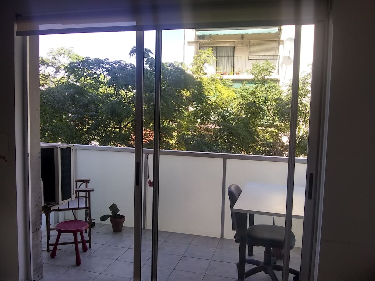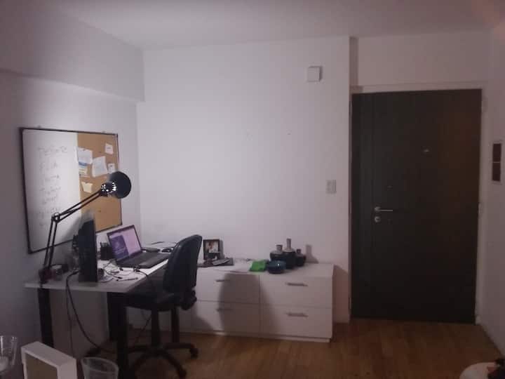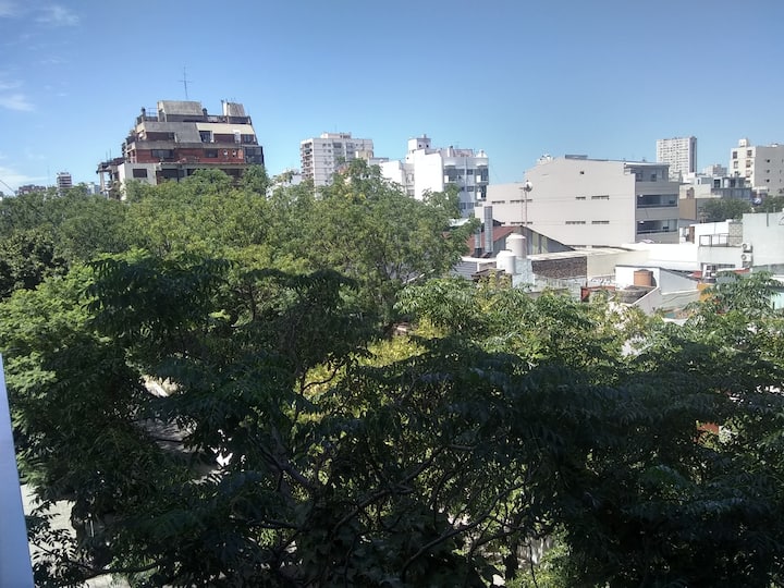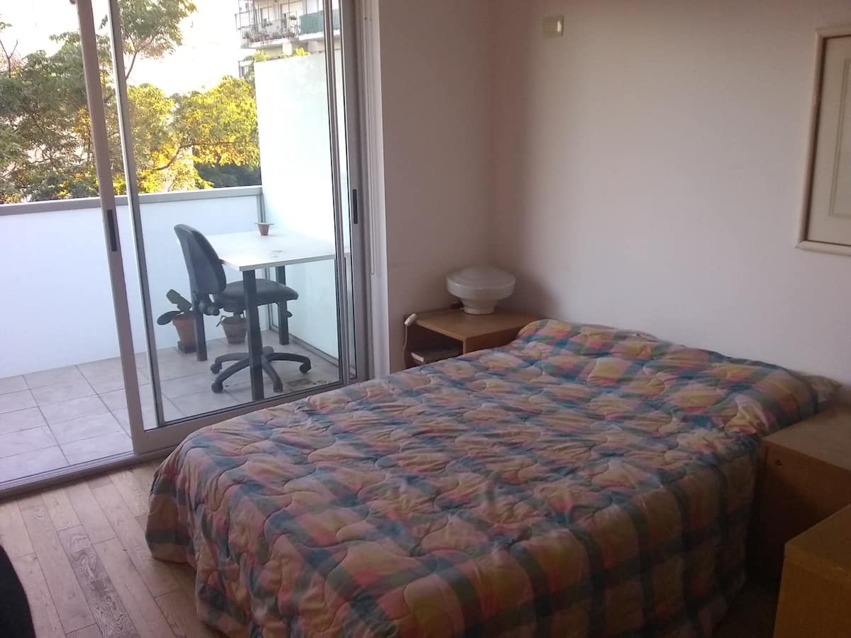 Квартира-студия, 1 комната, в Colegiales, с балконом и окнами на улицу. В здании категории Colegiales. Окрестности с магазинами в нескольких метрах, удобный доступ к общественному транспорту. В описании указано, что управление квартирой осуществляется соседом.