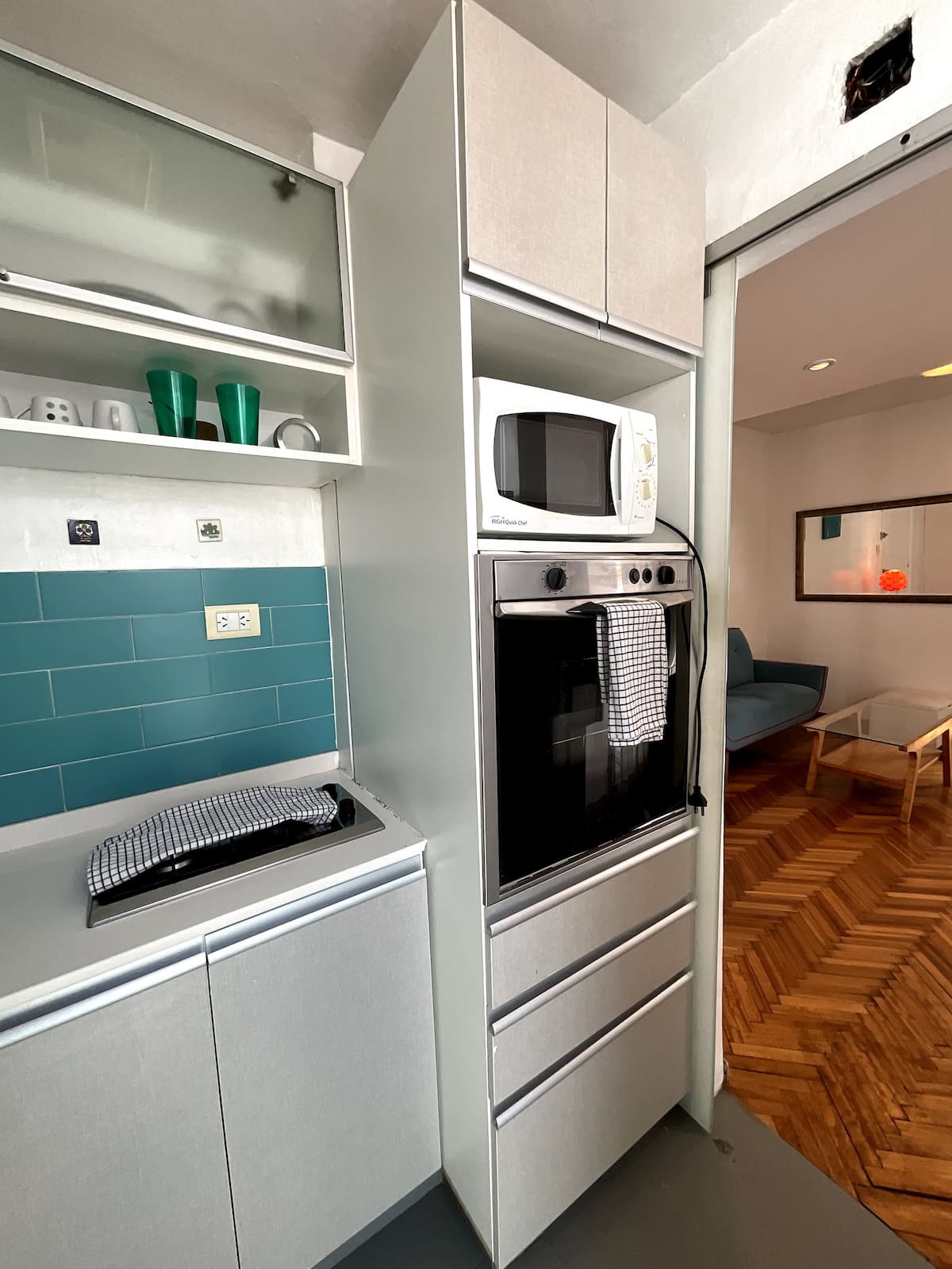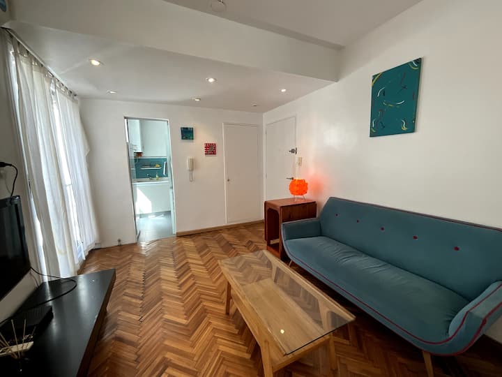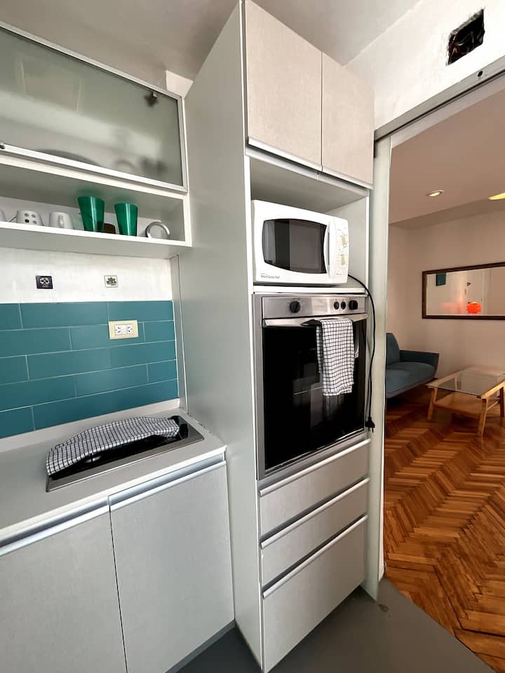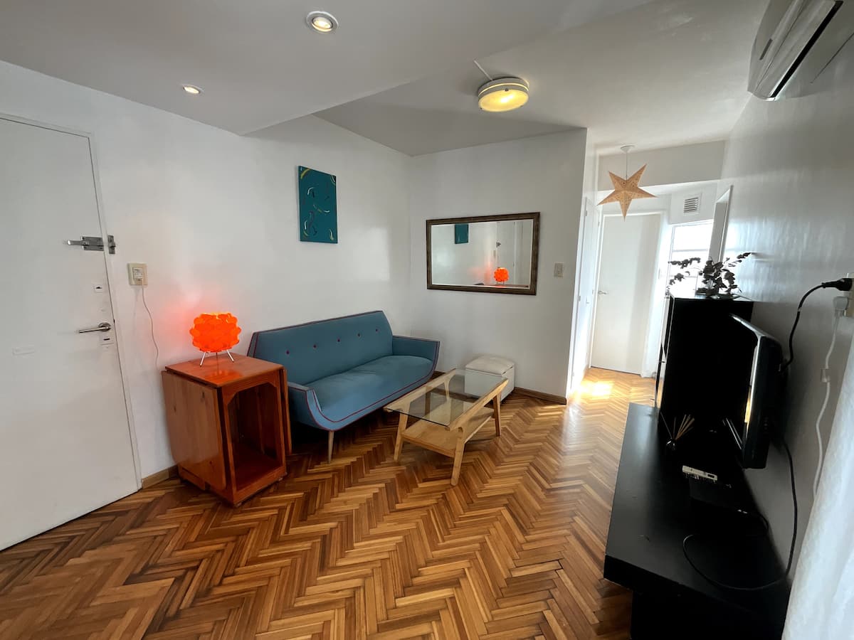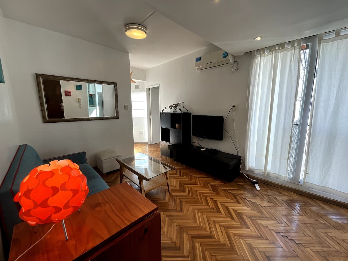 Квартира в Belgrano с 1 спальней. В квартире предусмотрены 2 небольших балкона и окна в каждой комнате. Кухня компактная, с 2 газовыми конфорками, духовкой, микроволновой печью и холодильником. В ванной установлен электрический полотенцесушитель, в гостиной есть кабельное телевидение, стол и стулья, а также Wi-Fi. Кондиционер работает в гостиной, в спальне предусмотрена панель отопления. Для стирки предусмотрено помещение в 30 метрах. Установлен режим оплаты электроэнергии: при проживании дольше