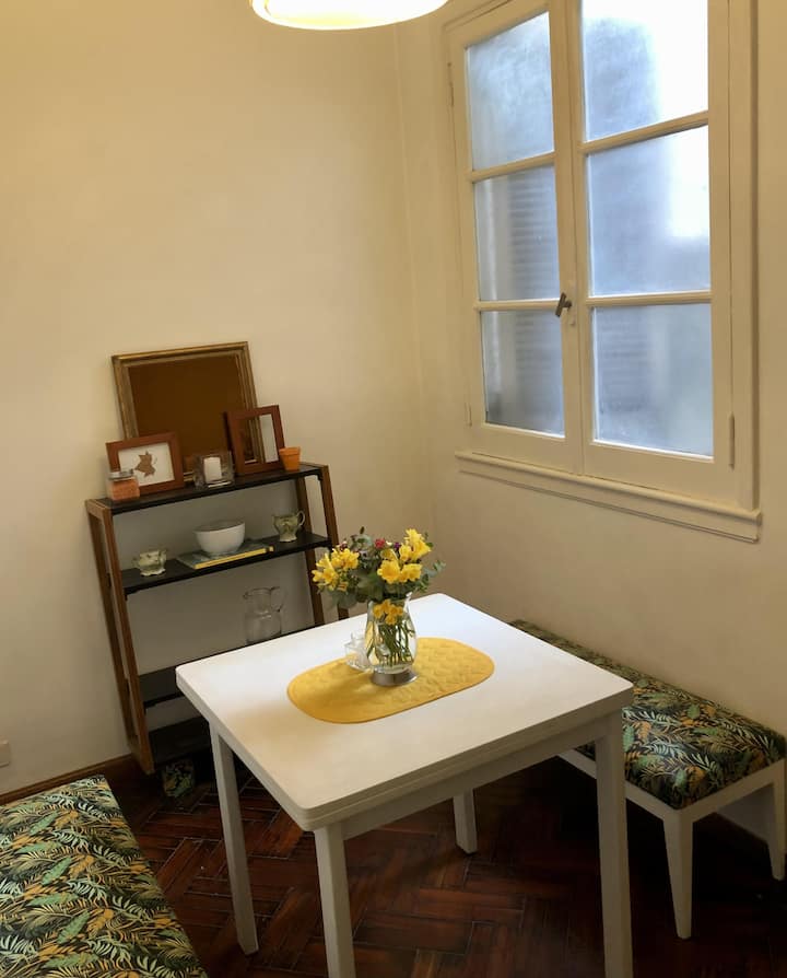 Квартира после ремонта в здании на 2 этажа в Colegiales. Планировка включает 1 спальню. Балкон с видом во внутреннее зелёное пространство выходит на тихую улицу. Окна на улицу находятся на расстоянии половины квартала от Av. Cabildo, рядом остановки транспорта.