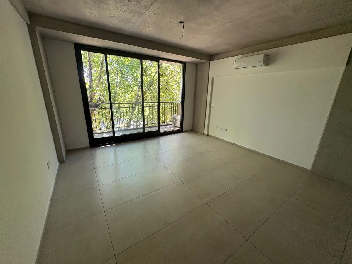Квартира-студия в Colegiales, новая (никто не жил), площадью не указана, 5-й этаж, окна на улицу, с собственным балконом. Установлен сплит для холод/тепло. Электрическая кухня с нижними шкафами и навесными полками, полностью оборудованная ванная комната. Отдельное горячее водоснабжение. В объявлении указано, что принимают домашних животных.