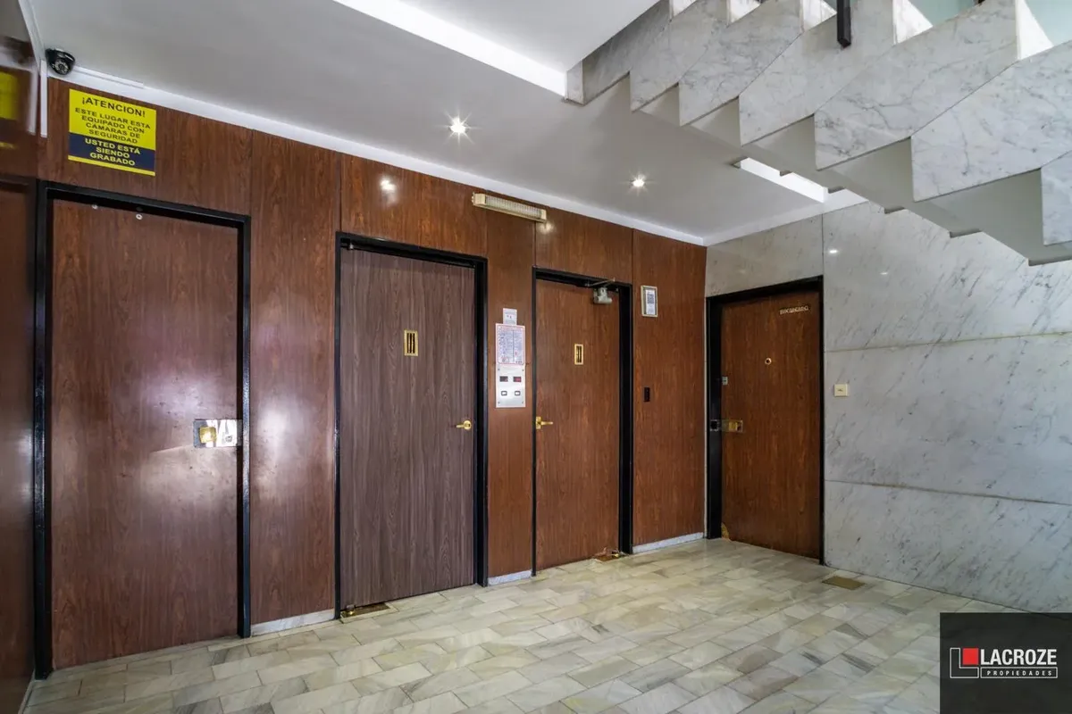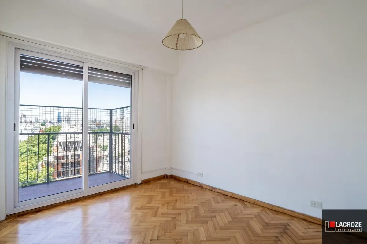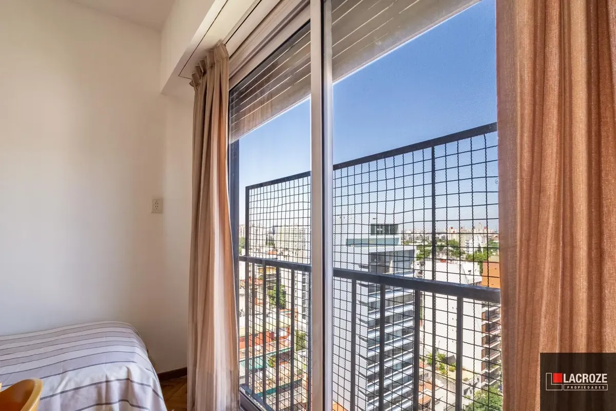 Квартира в Colegiales из 2 комнат, этаж ante-ultimo, с открытым видом. Жилые помещения с большими окнами и москитными сетками, полы отполированы и покрыты защитным слоем. В гостиной-столовой французский балкон, кухня с окном, местом под холодильник и стиральную машину. Ванная комната с выходом на внешнюю вентиляцию, спальня с выходом на балкон и распределительный холл. Центральный радиаторный нагрев (losa radiante) и новый водонагреватель (calefón), в здании 2 автоматических лифта, камеры наблюд
