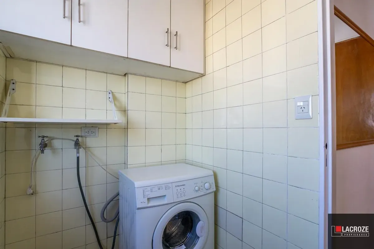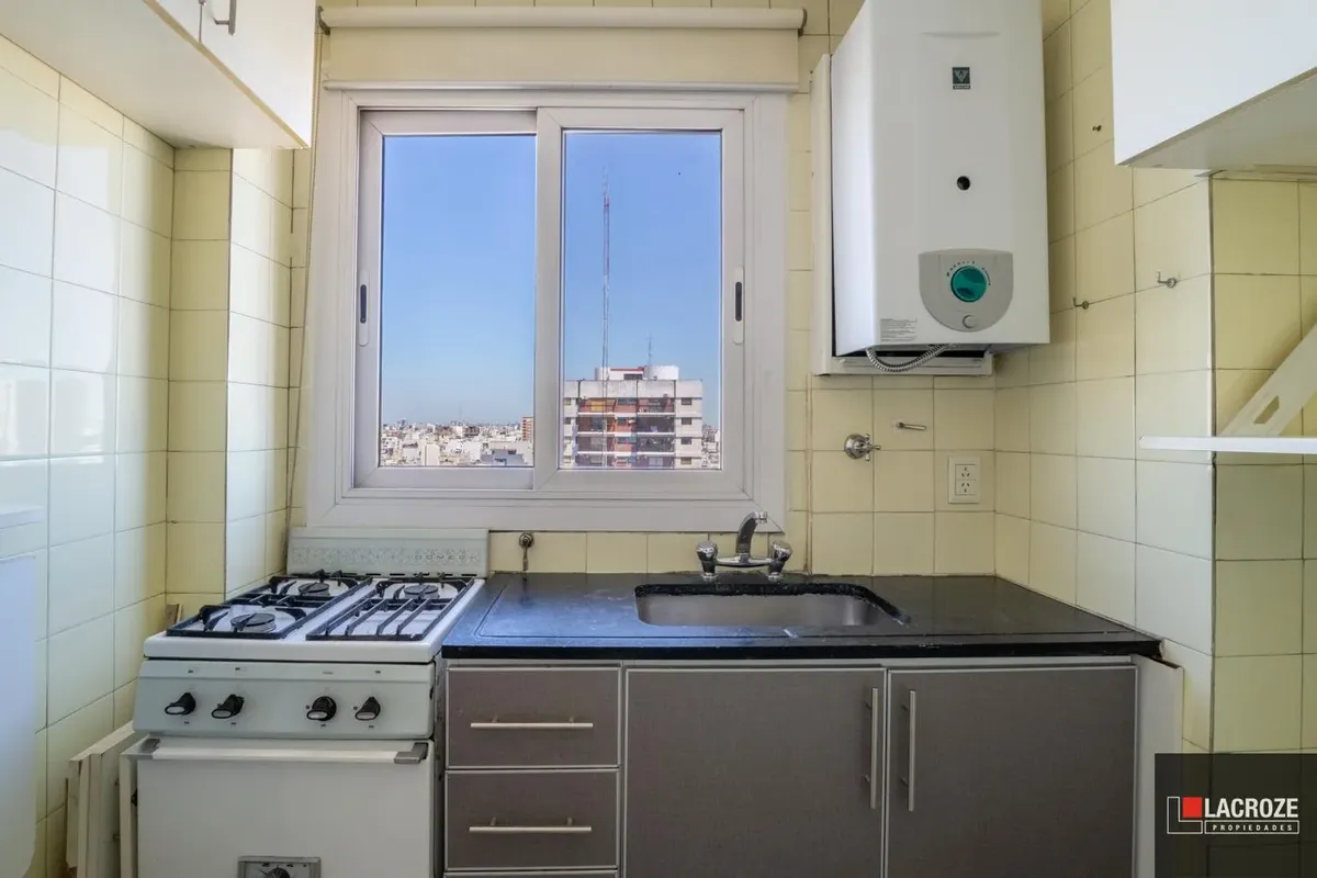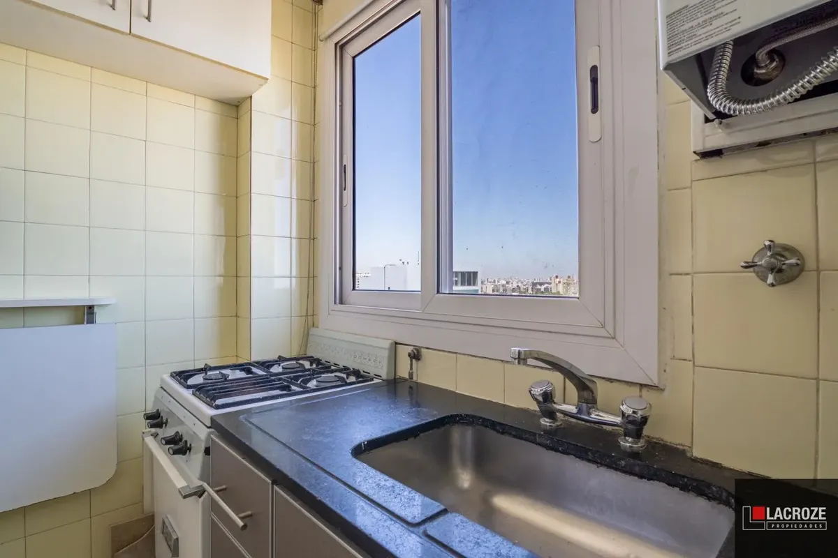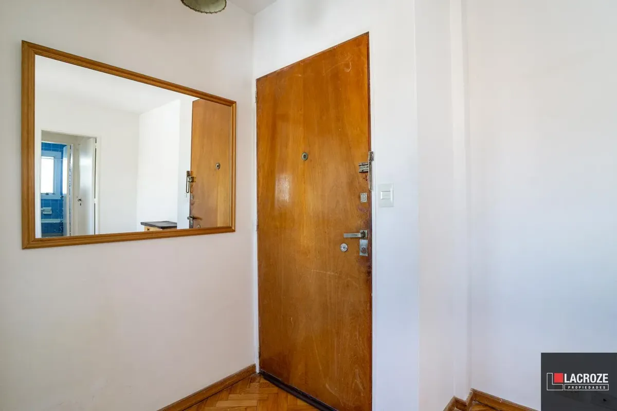 Квартира в Colegiales из 2 комнат, этаж ante-ultimo, с открытым видом. Жилые помещения с большими окнами и москитными сетками, полы отполированы и покрыты защитным слоем. В гостиной-столовой французский балкон, кухня с окном, местом под холодильник и стиральную машину. Ванная комната с выходом на внешнюю вентиляцию, спальня с выходом на балкон и распределительный холл. Центральный радиаторный нагрев (losa radiante) и новый водонагреватель (calefón), в здании 2 автоматических лифта, камеры наблюд