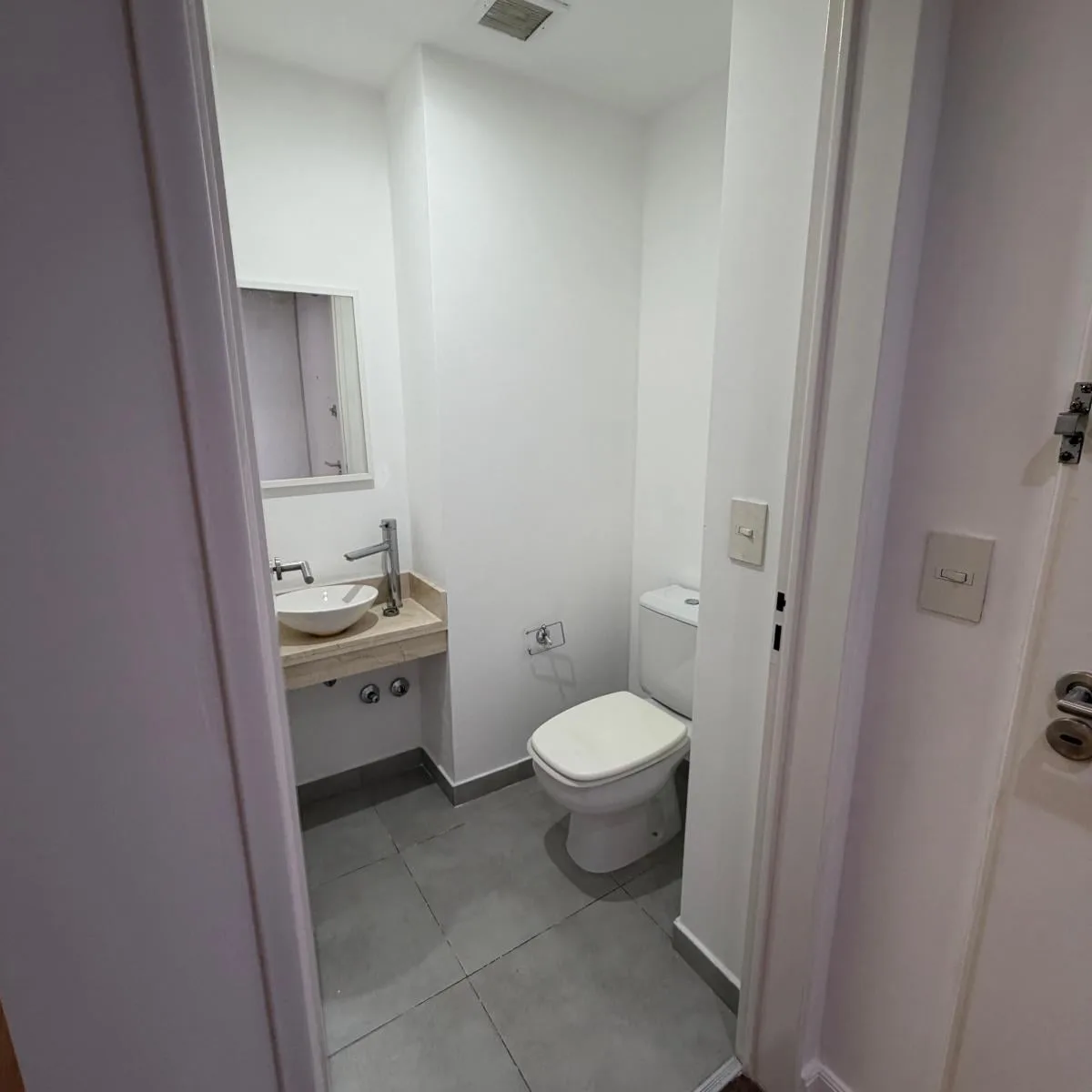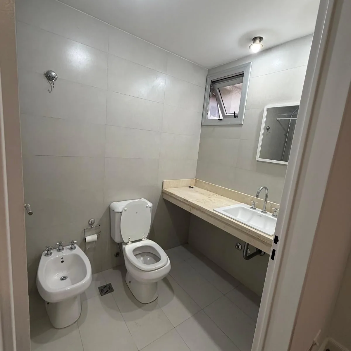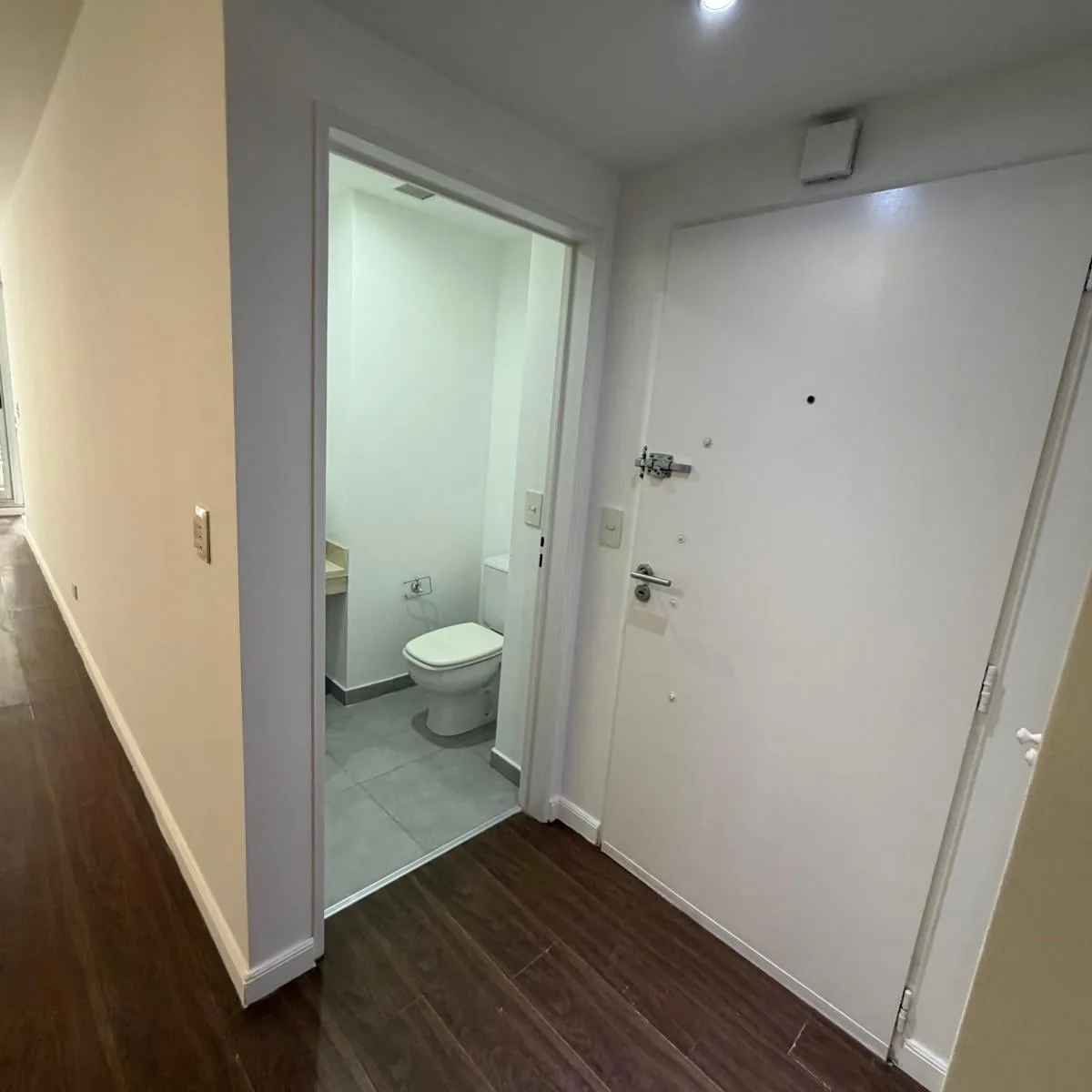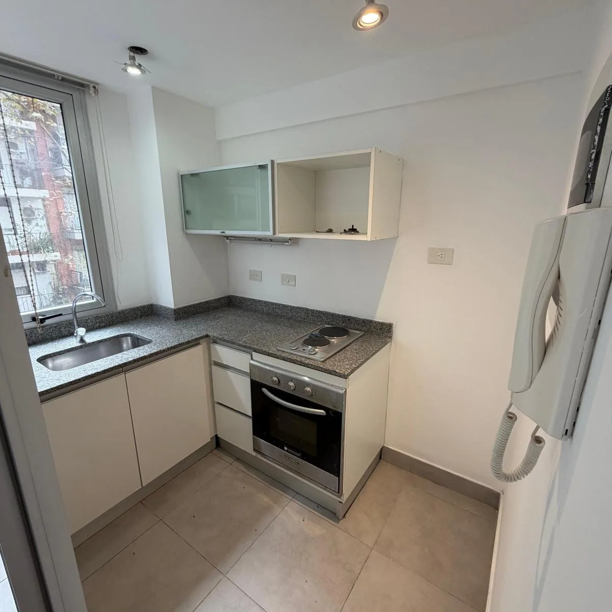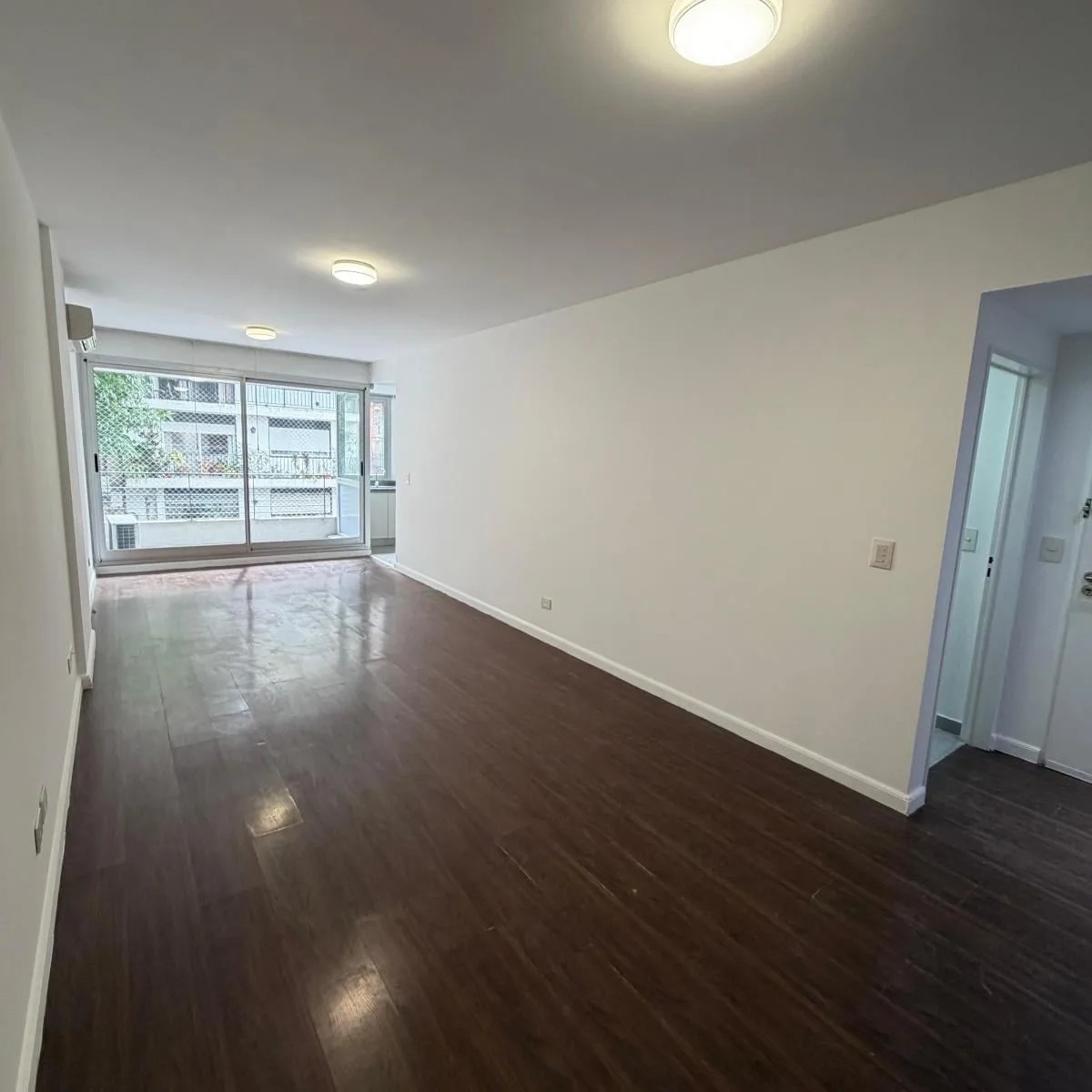 Квартира-студия площадью 46 m² в Colegiales, окна во двор, с балконом на лицевой стороне полукрытого типа 4 m². Комната разделена установленной перегородкой с мебелью. В квартире есть кухня, полноценная ванная и отдельный туалет. За охраной отвечает система с круглосуточным наблюдением и столбом Prosegur. Коммунальные платежи здания включают газ и воду.