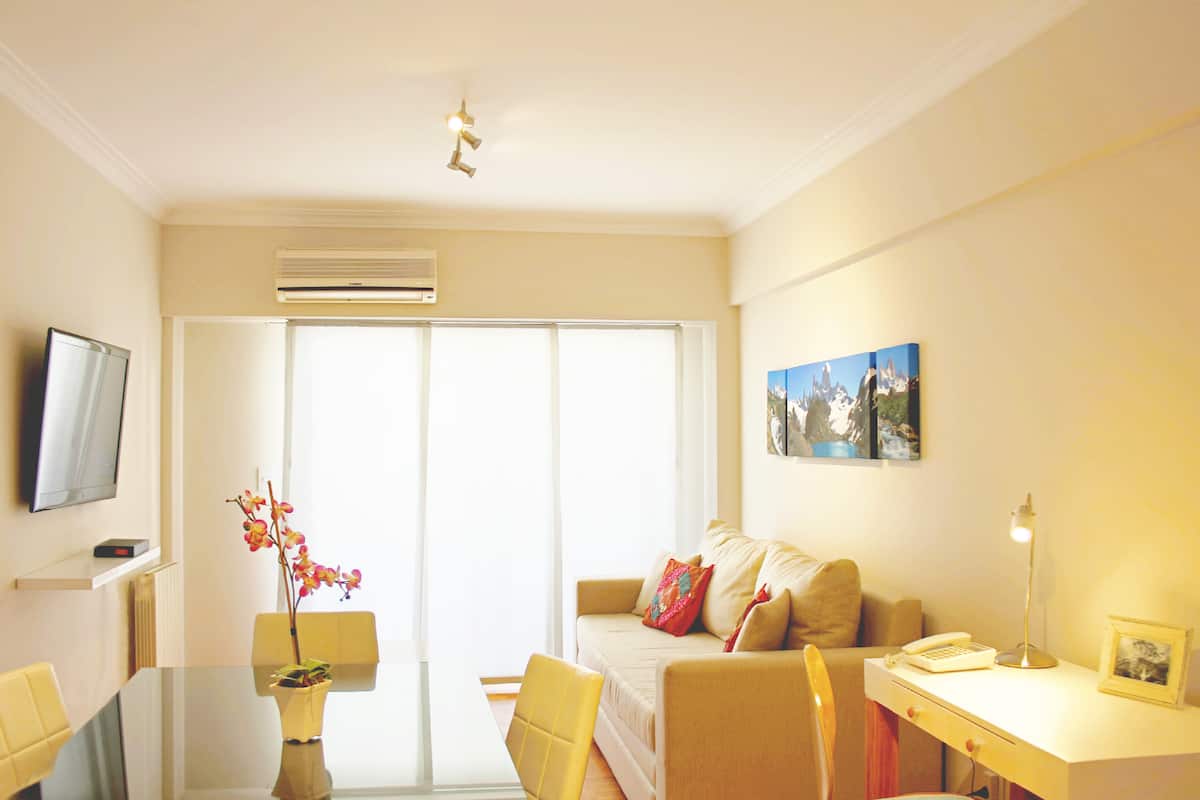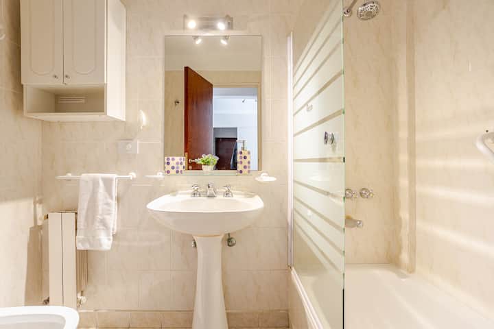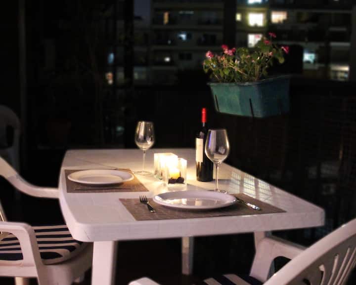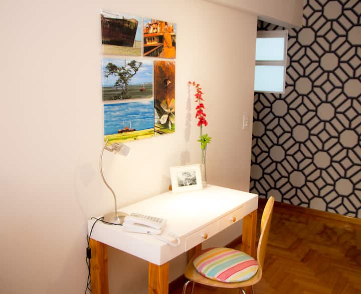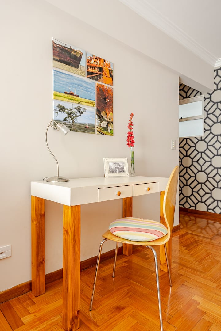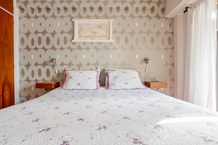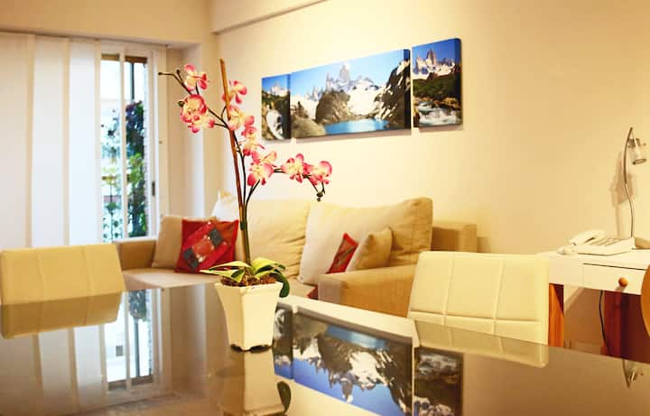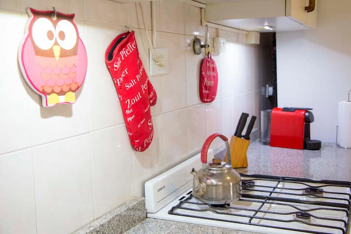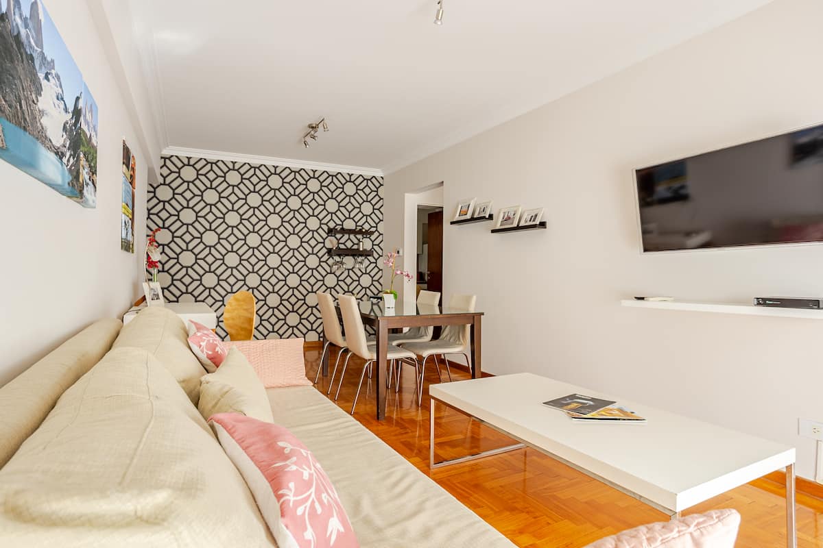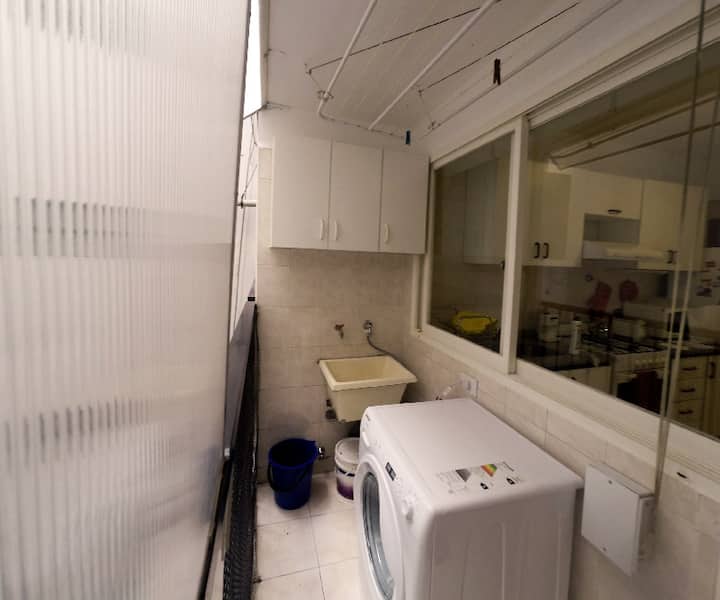 Квартира с 1 спальней площадью 60 m² в Colegiales. Кровать queen size, кухня полностью оборудована, есть стиральная машина и большая гостиная-столовая. Большой балкон с зеленью и столом для еды. В числе оборудования телевизор HD 40" LED, доступ в интернет и Wi‑Fi, кофемашина, тостер, микроволновая печь, духовка, холодильник и мультифункциональный кухонный прибор, а также утюг; предусмотрен манеж для ребёнка без дополнительной платы. Отопление регулируется термостатом по расписанию; предоставляет
