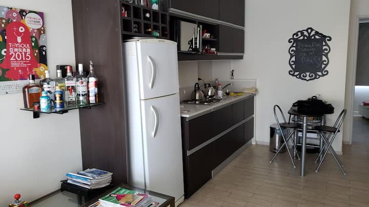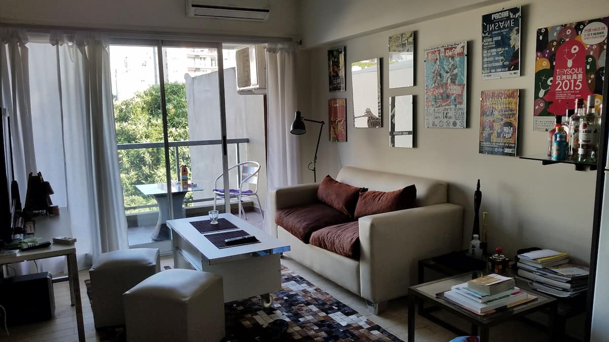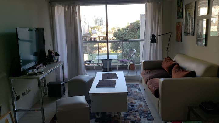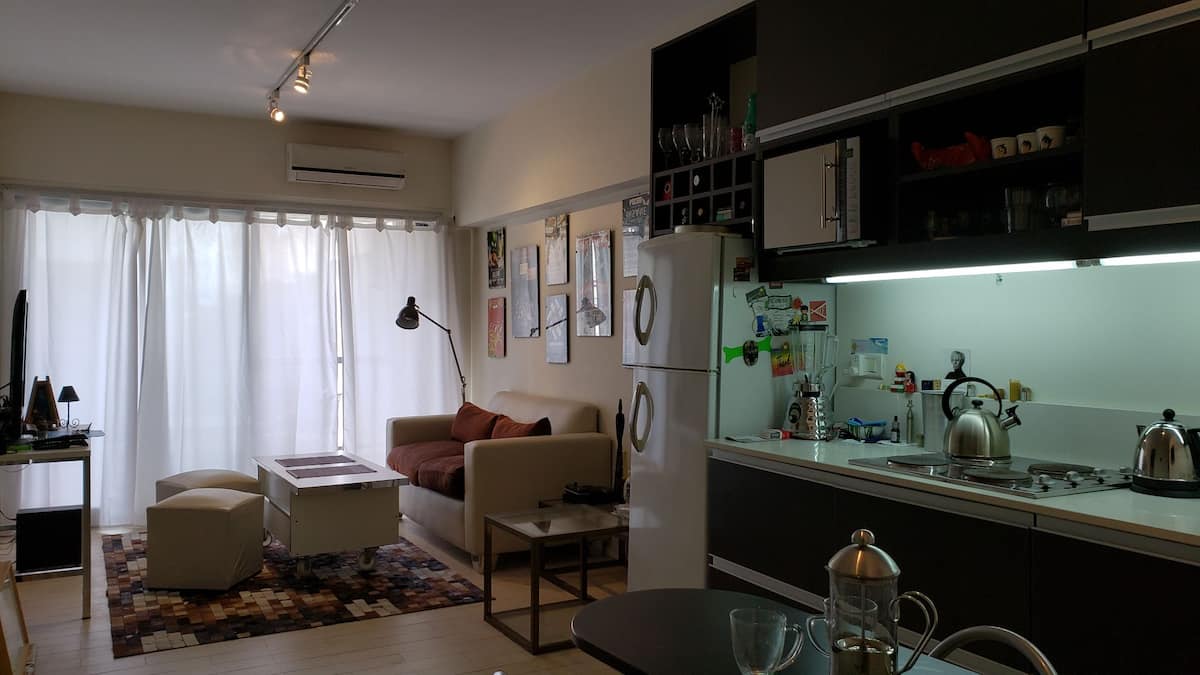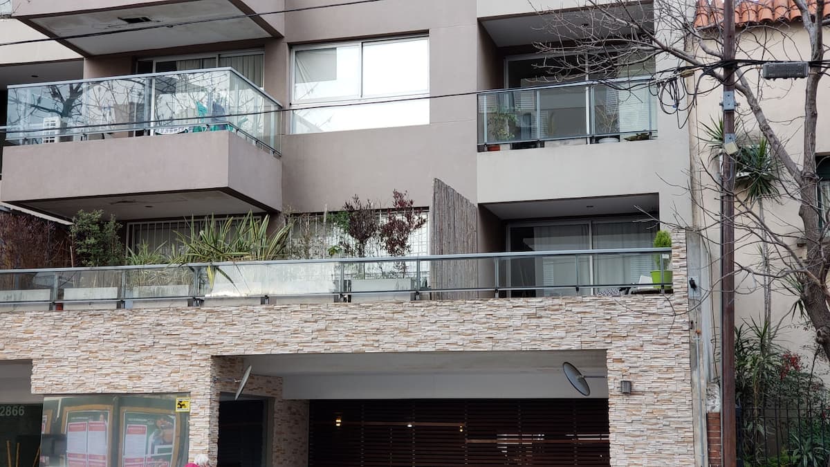 Квартира в Colegiales площадью около 40 m² расположена на 2-м этаже, с видом на бассейн и внутренний двор. В планировке гостиная с полностью оборудованной кухней и спальня с кроватью queen. Окна выходят в обе комнаты; в гостиной есть балкон с столом и стульями. Дом с лифтом, в комплексе есть бассейн, зона гриля и прачечная. Рядом Av. Federico Lacroze (1 квартал) и Av. Cabildo (5 кварталов); поезд находится в 50 метрах.
