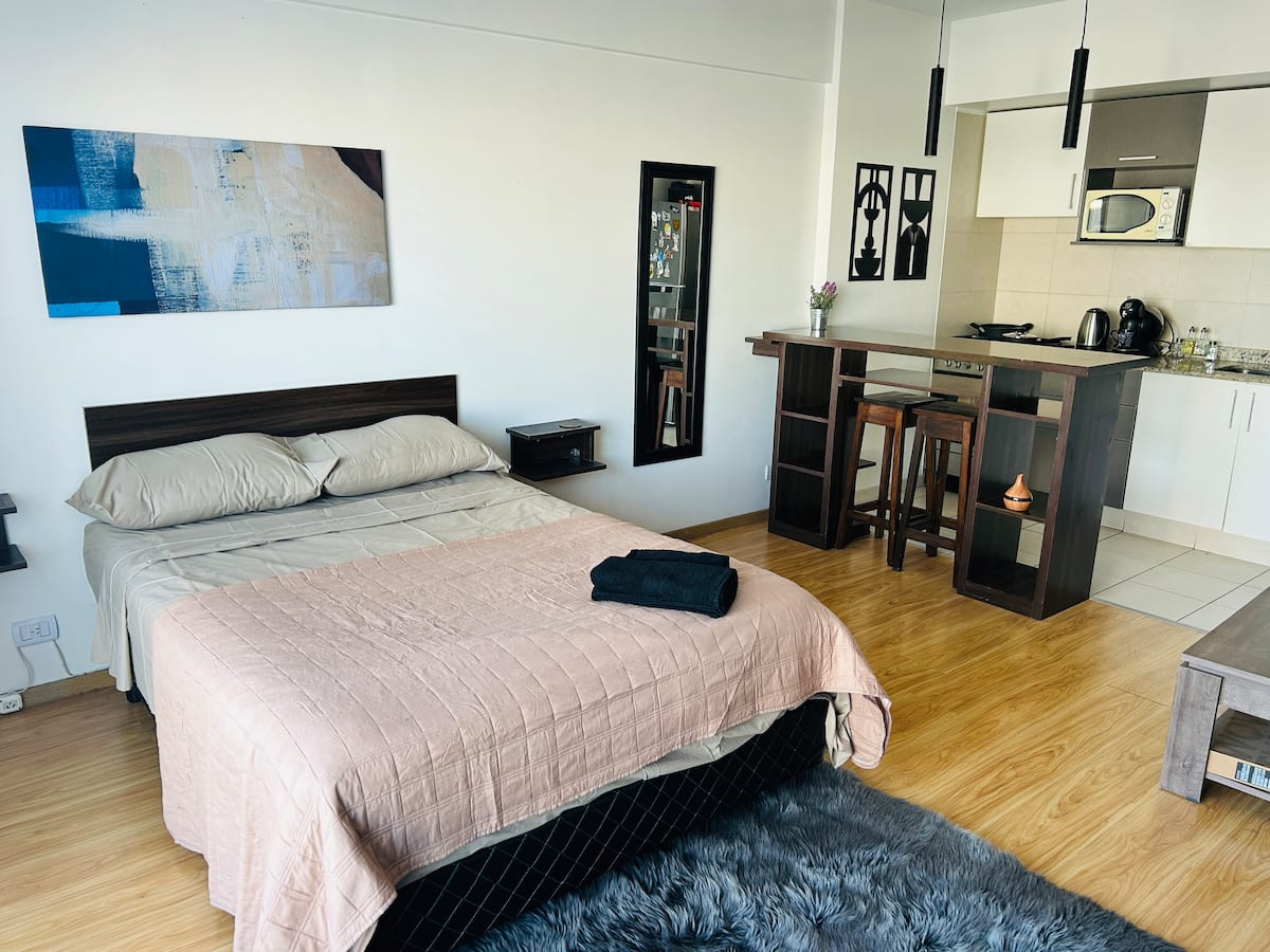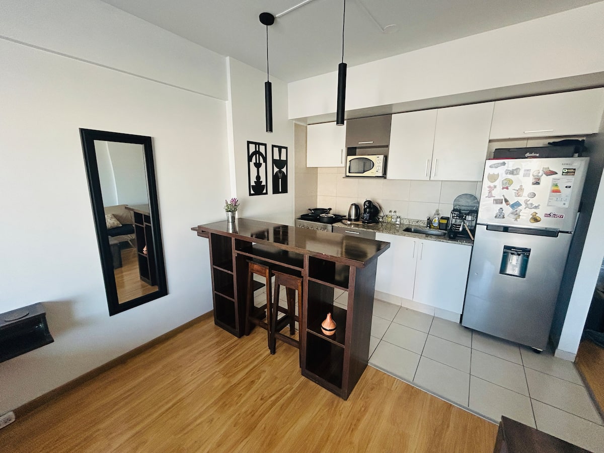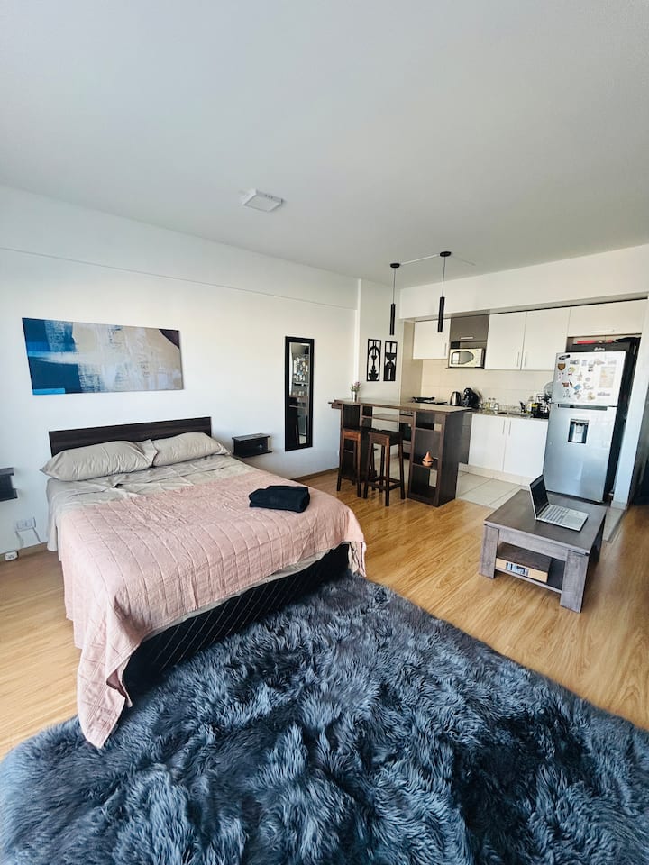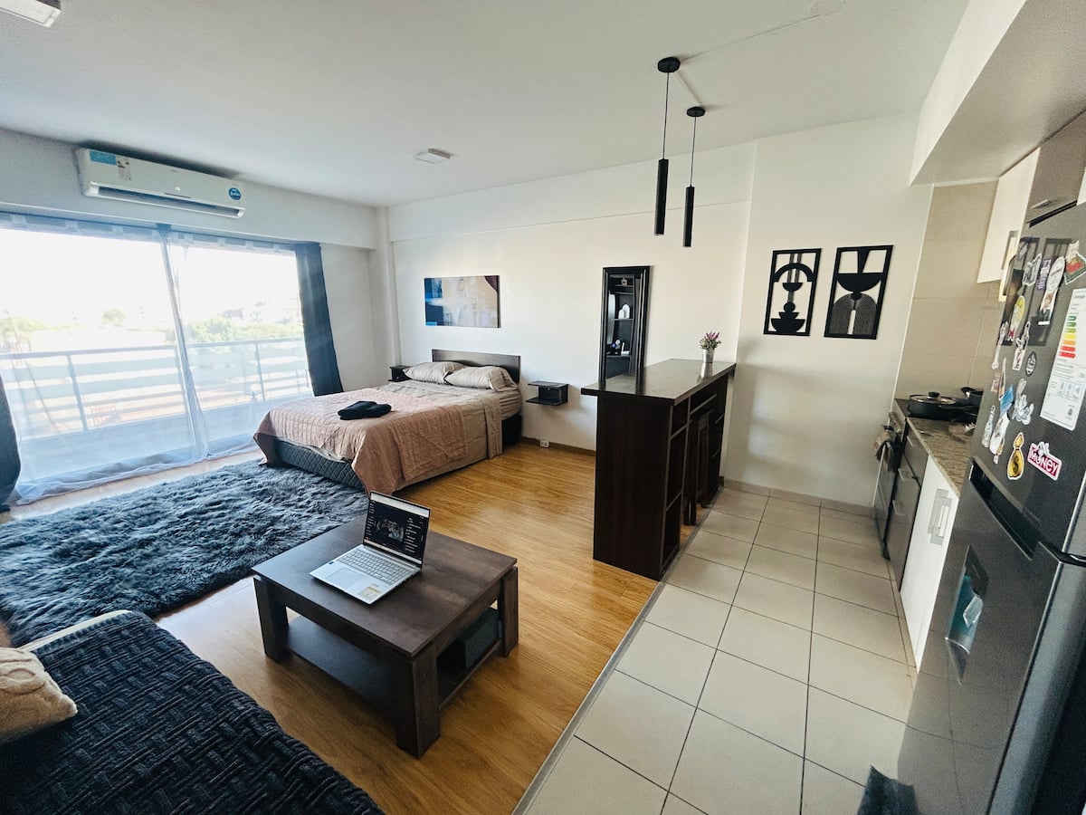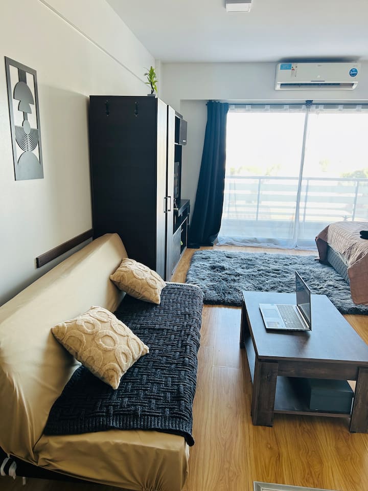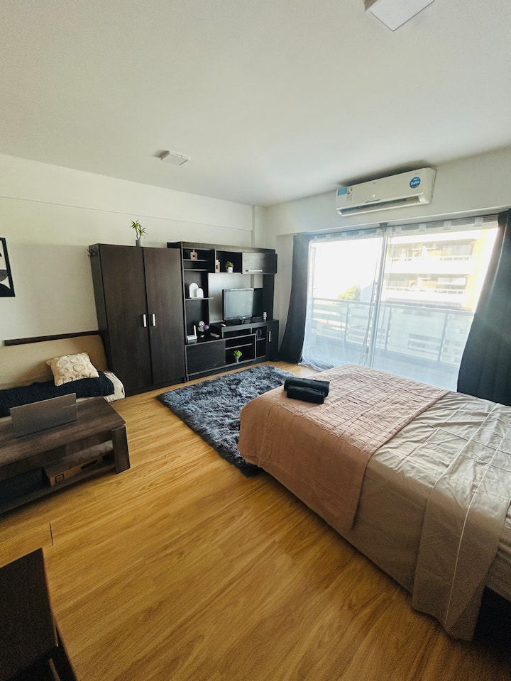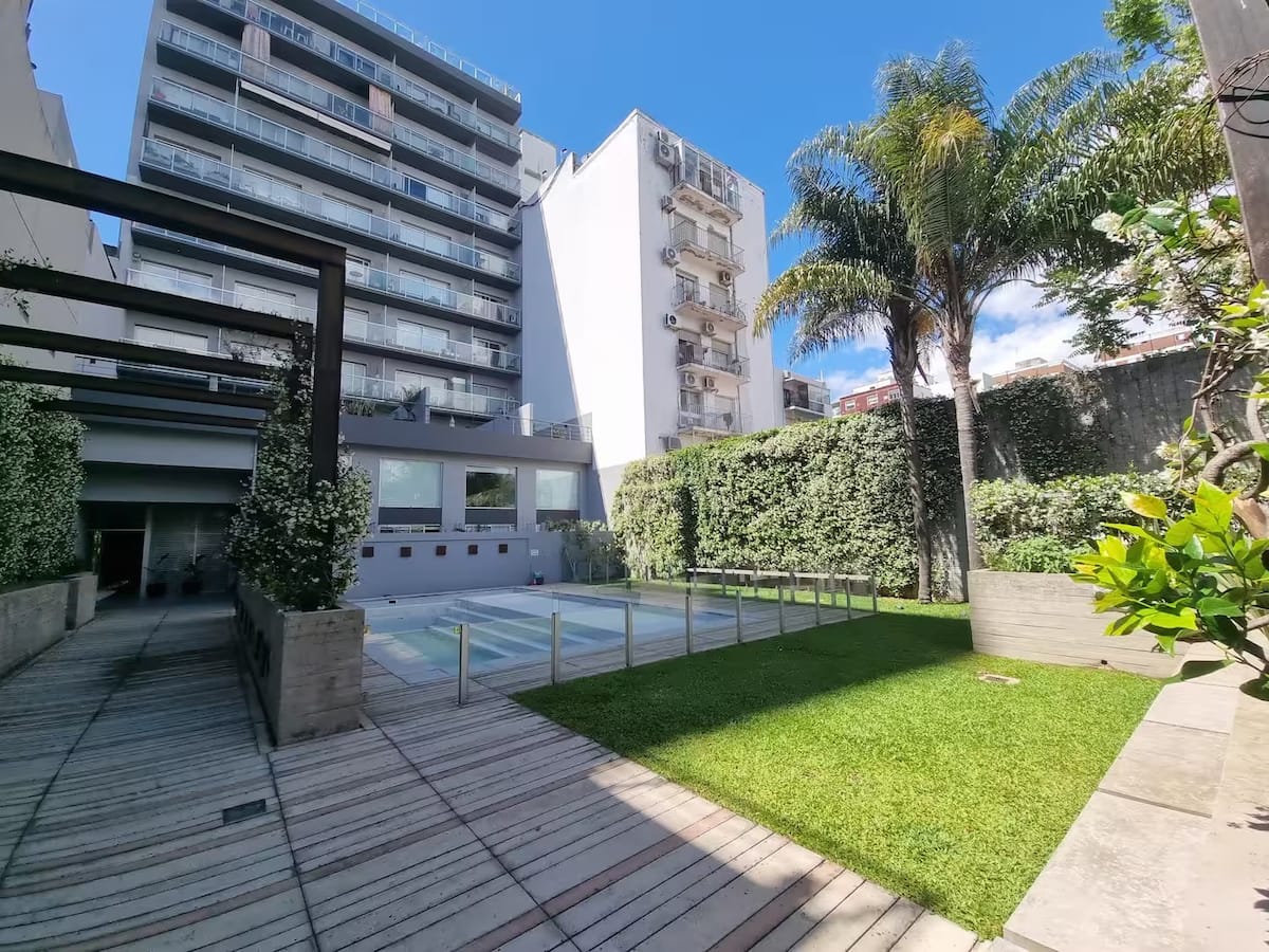 Квартира-студия площадью не указана в Colegiales, с балконом. В комплексе есть бассейн, тренажёрный зал, прачечная, общая гостиная для жильцов (SUM) и зона гриля, а также охрана 24/7. Планировка с двуспальной кроватью и креслом-кроватью, рассчитана на 3 человека с комфортом и на 4 человека при необходимости.