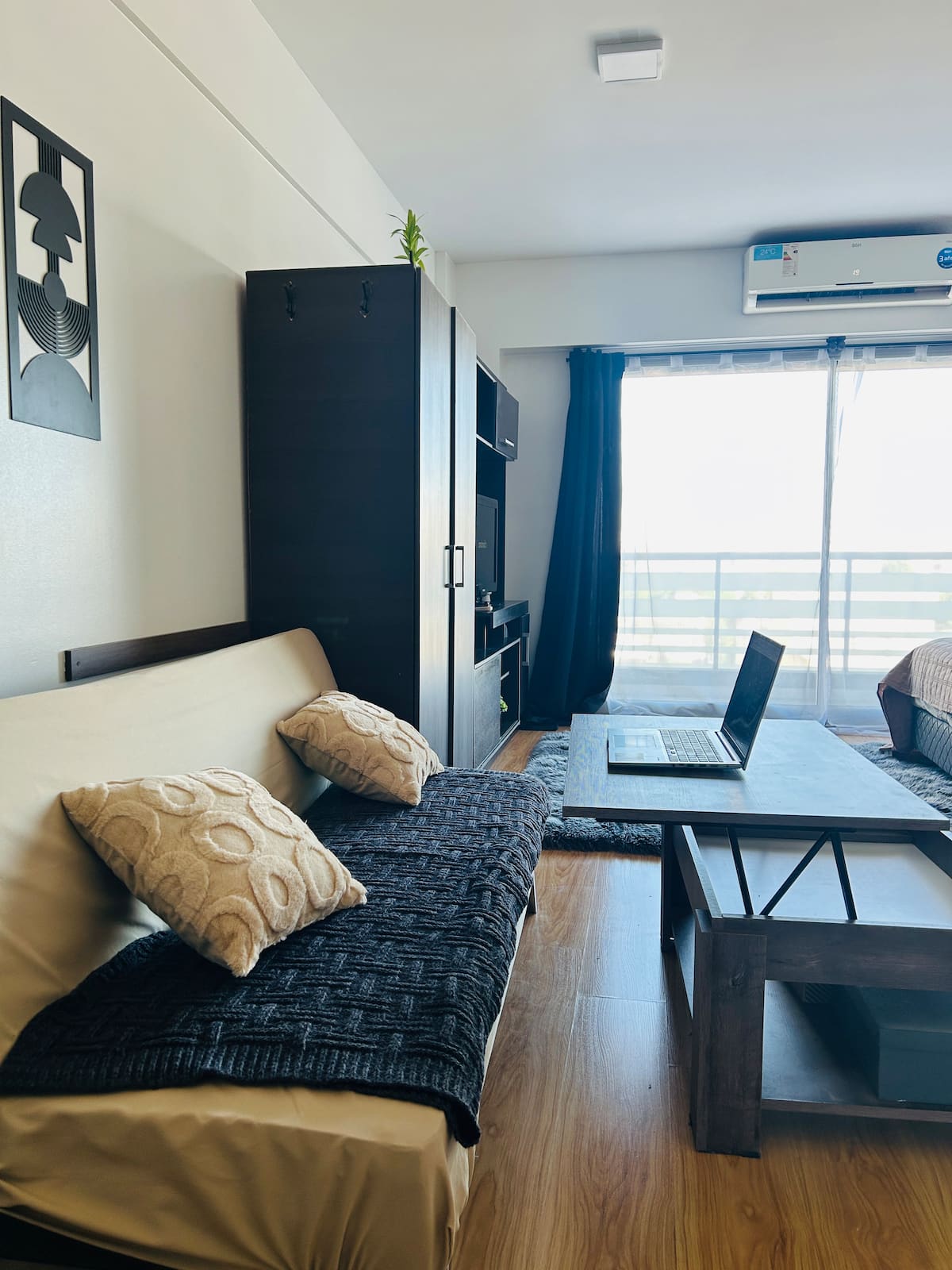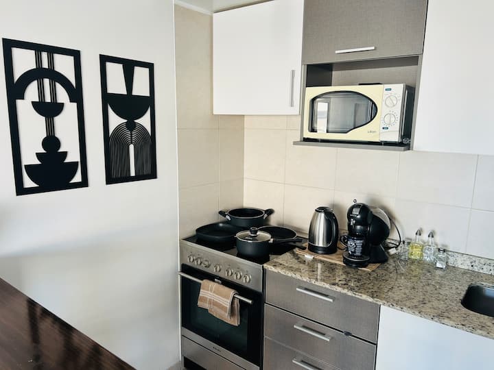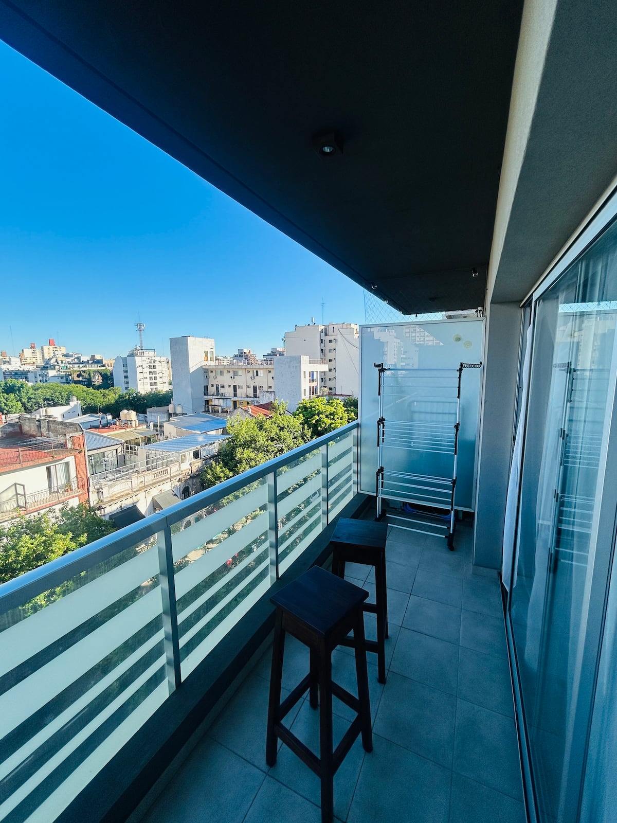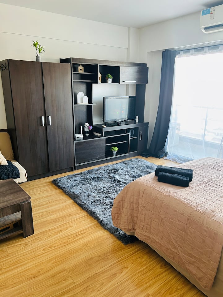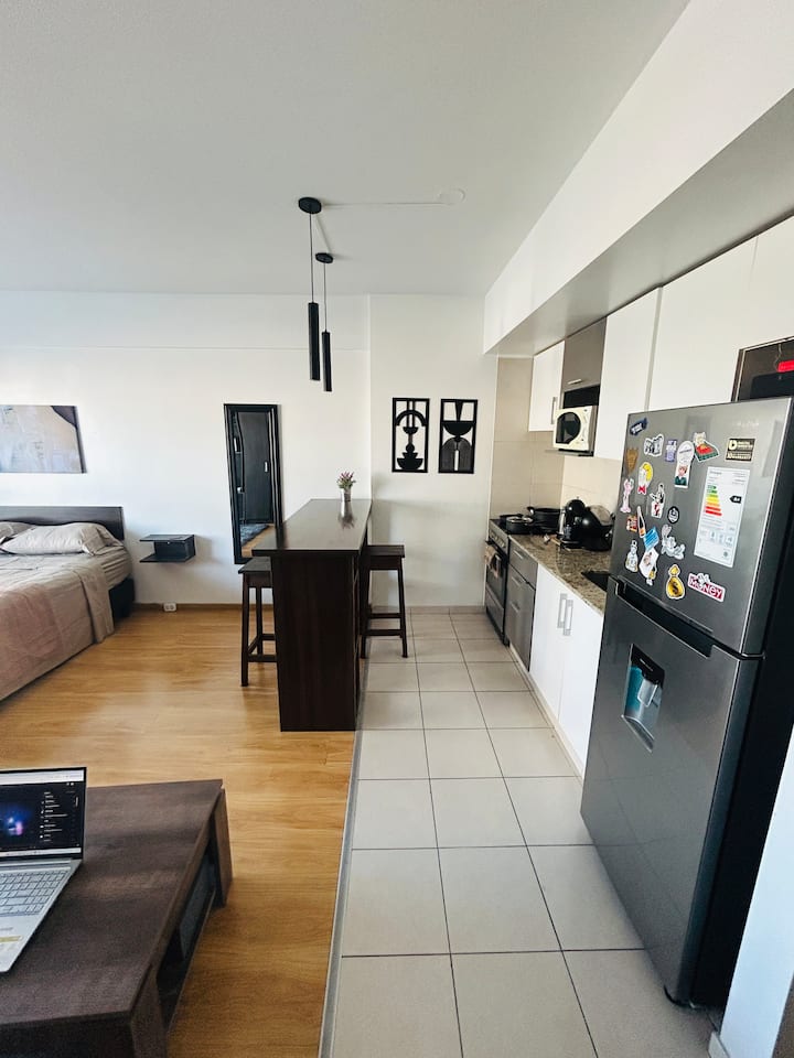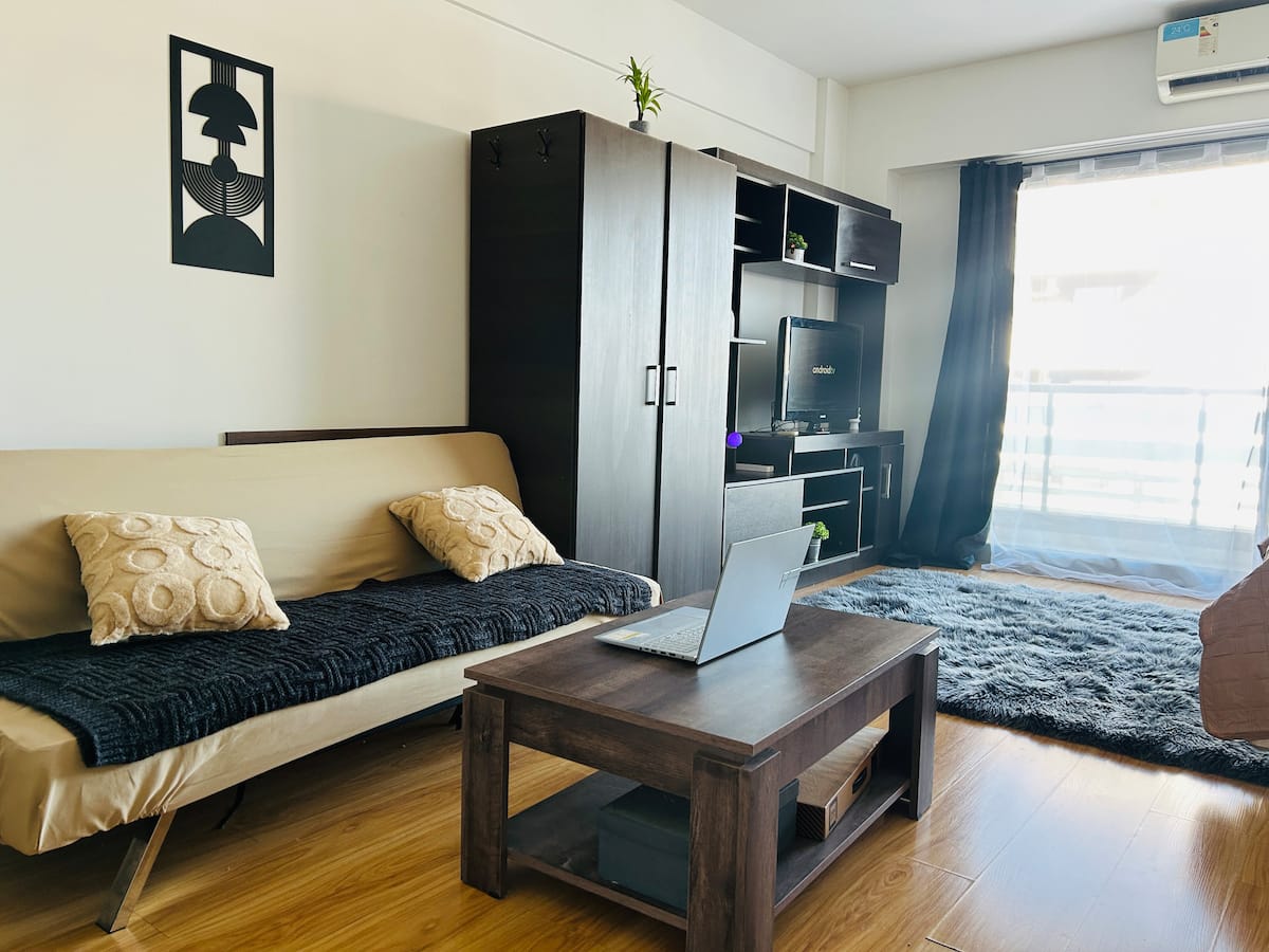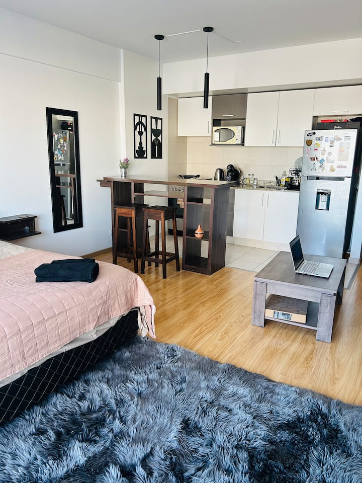 Квартира-студия площадью не указана в Colegiales, с балконом. В комплексе есть бассейн, тренажёрный зал, прачечная, общая гостиная для жильцов (SUM) и зона гриля, а также охрана 24/7. Планировка с двуспальной кроватью и креслом-кроватью, рассчитана на 3 человека с комфортом и на 4 человека при необходимости.