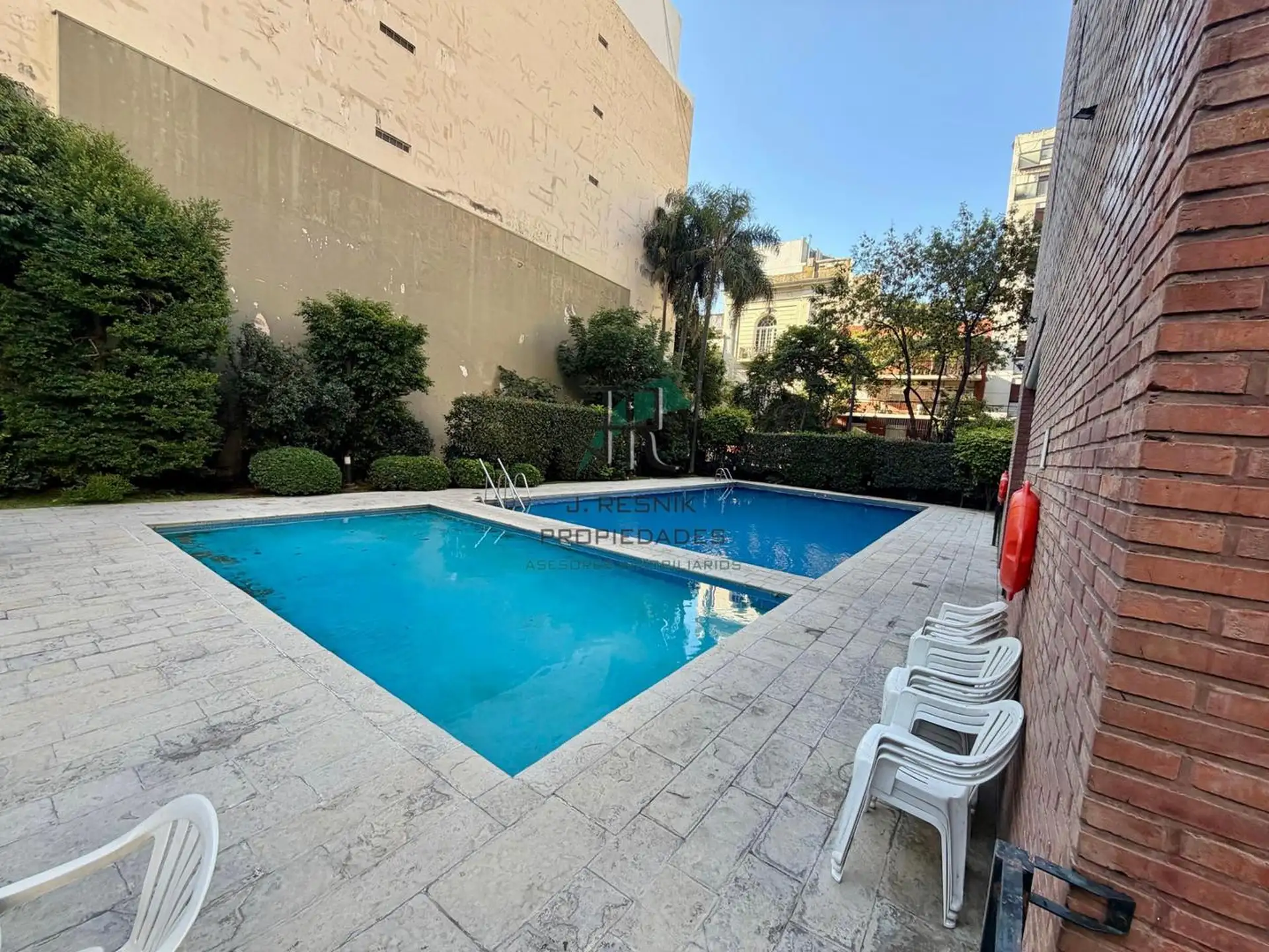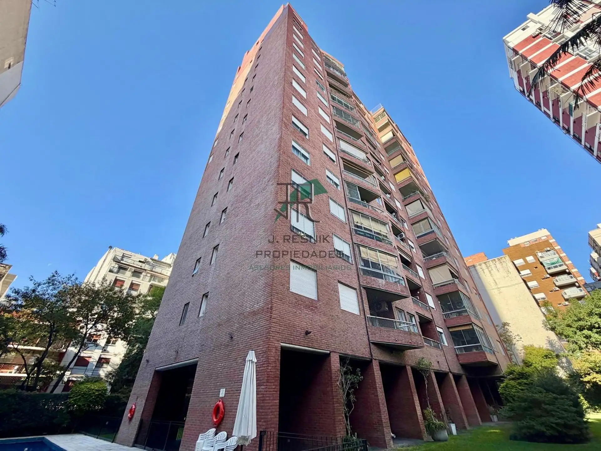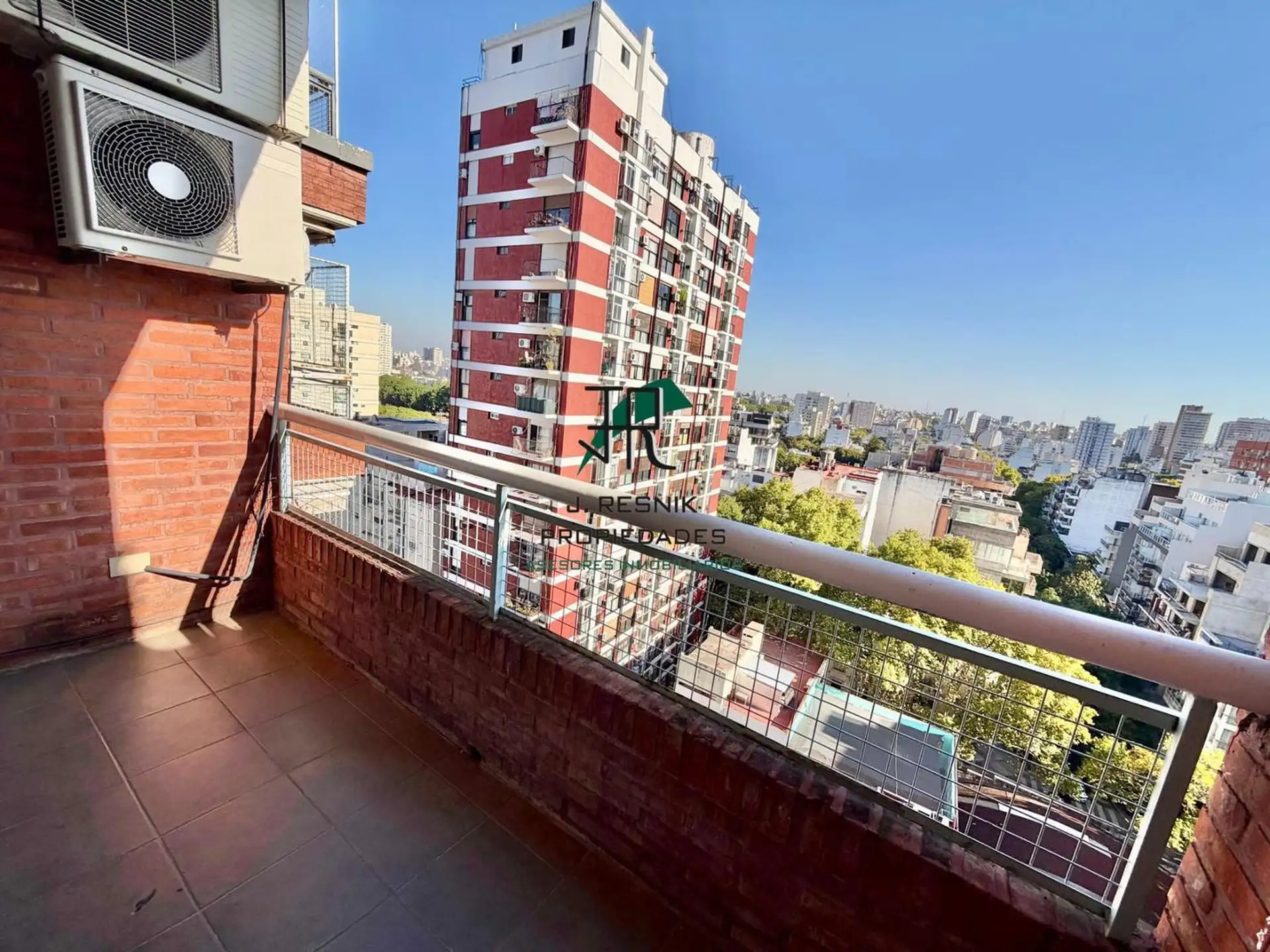 Квартира с 2 комнатами в Colegiales, 13-й этаж, с окнами на улицу и видом. Отдельная кухня с прачечной, спальня с увеличенной площадью, ванная комната с ванной. Есть (закреплённое) парковочное место с навесом, охрана 24 часа, два бассейна и детская игровая зона, а также общий сад. Коммунальные платежи здания не указаны; указан депозит в размере 1 месяца.