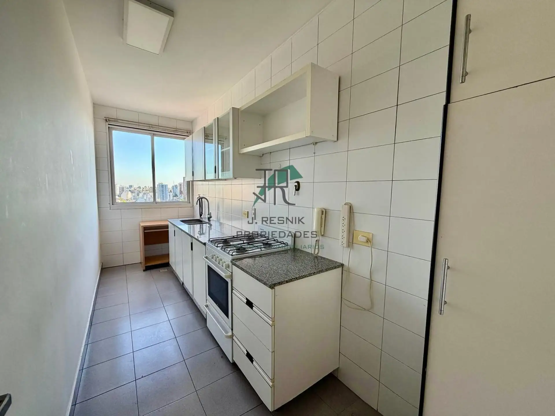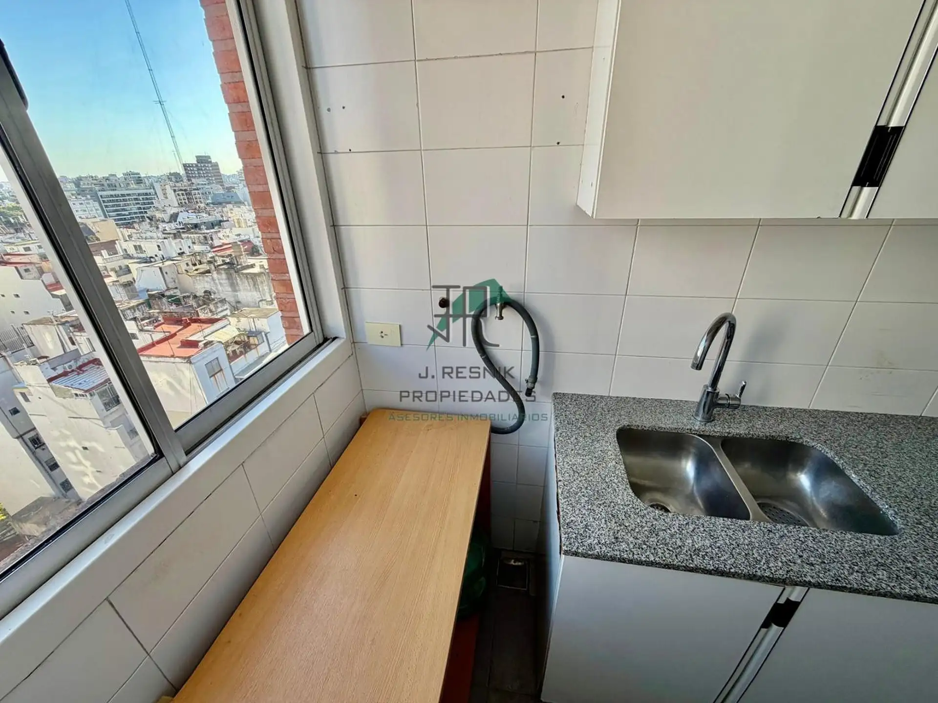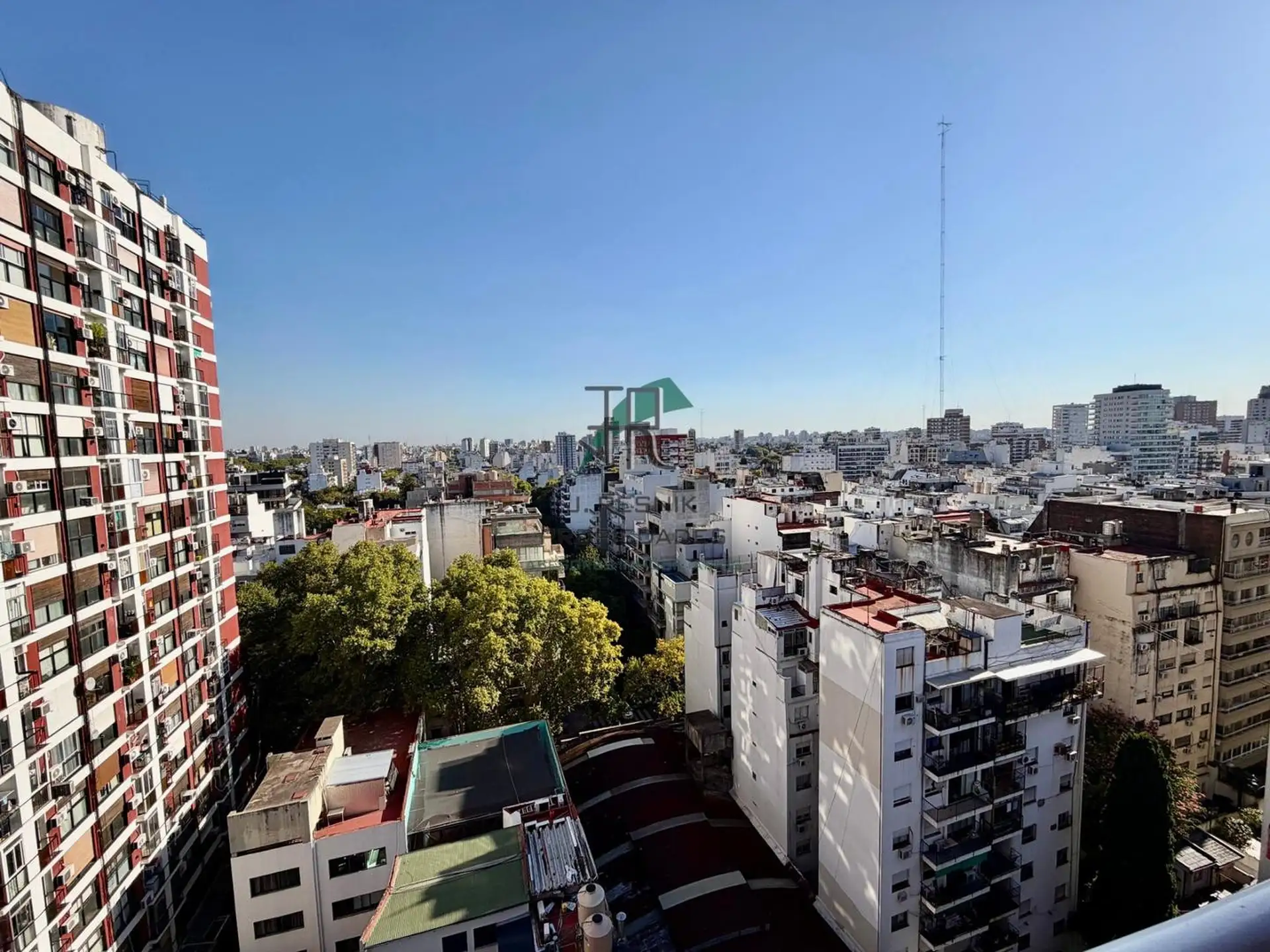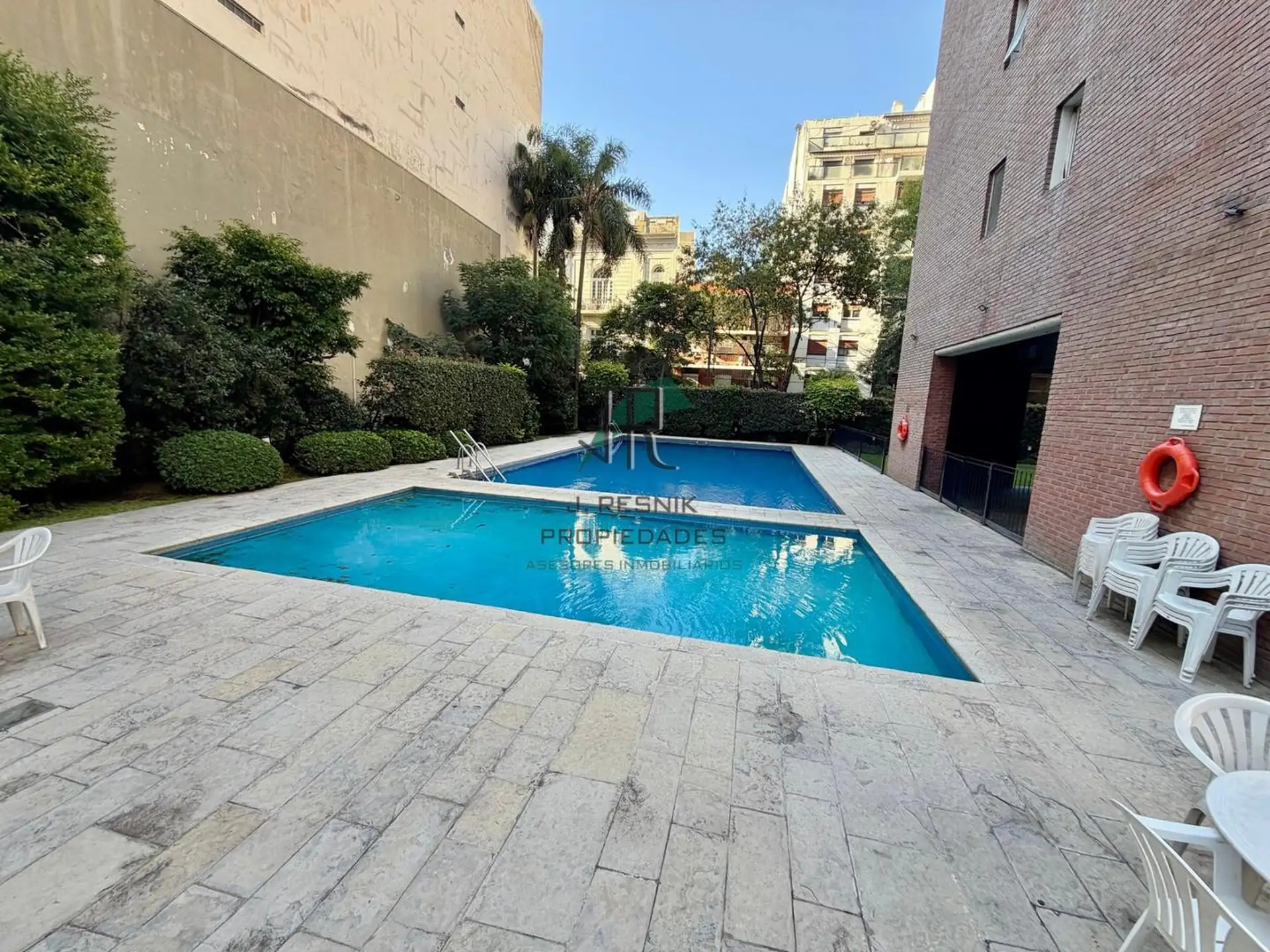Квартира с 2 комнатами в Colegiales, 13-й этаж, с окнами на улицу и видом. Отдельная кухня с прачечной, спальня с увеличенной площадью, ванная комната с ванной. Есть (закреплённое) парковочное место с навесом, охрана 24 часа, два бассейна и детская игровая зона, а также общий сад. Коммунальные платежи здания не указаны; указан депозит в размере 1 месяца.