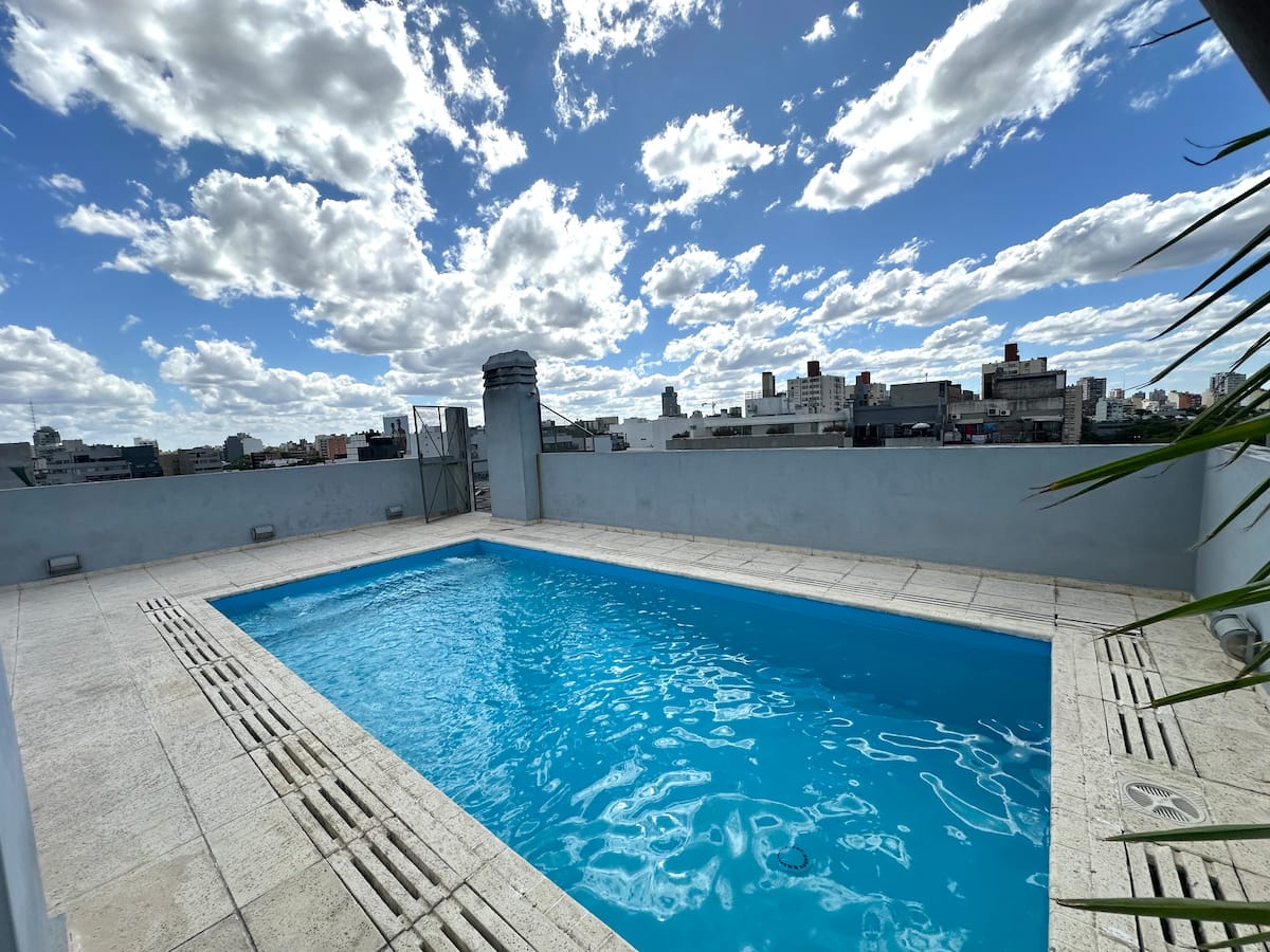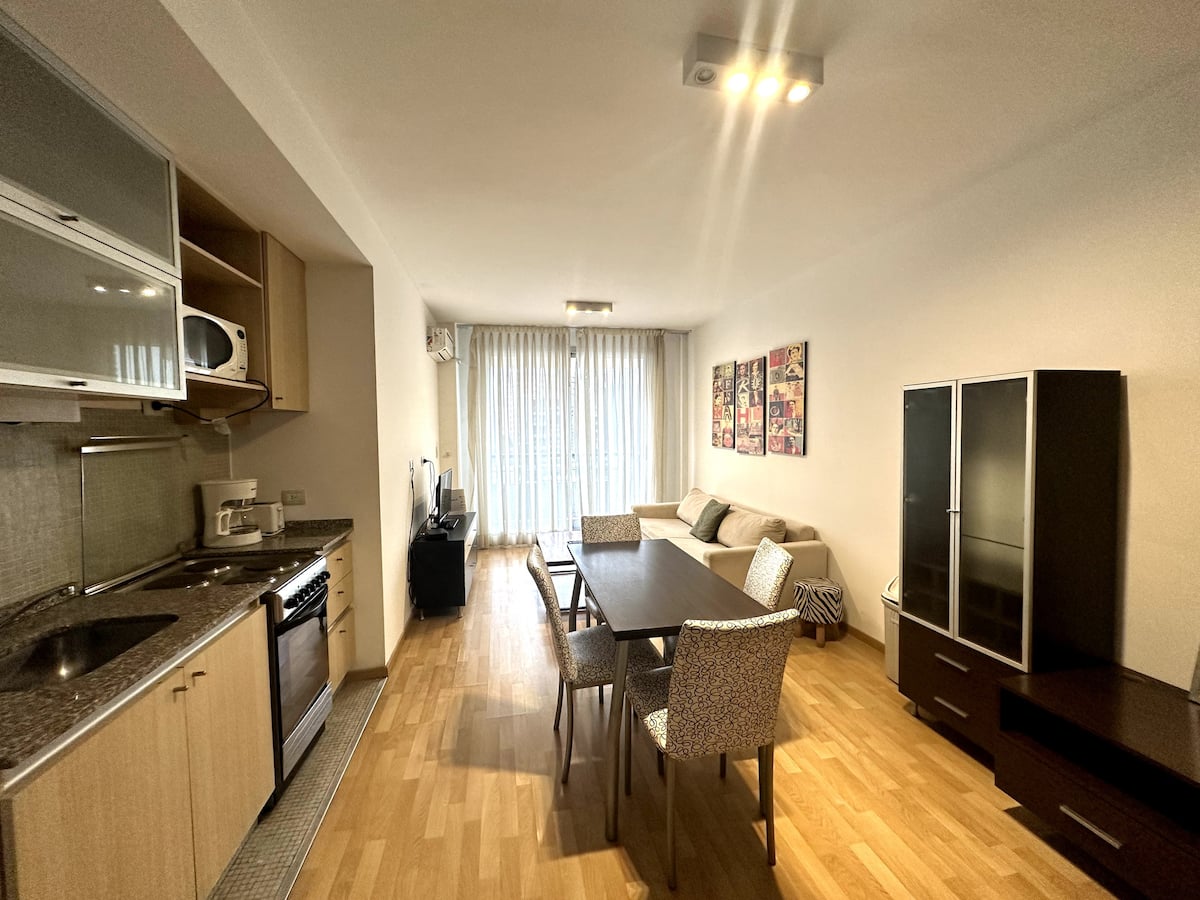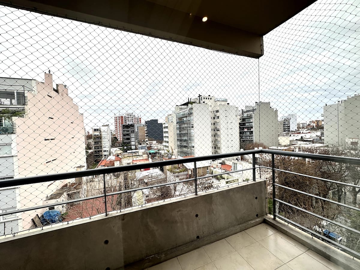 Квартира с 1 спальней в Palermo Hollywood с балконом. В описании указано, что квартира оборудована и выходит на сторону с хорошим дневным освещением. Упоминается наличие интернета.