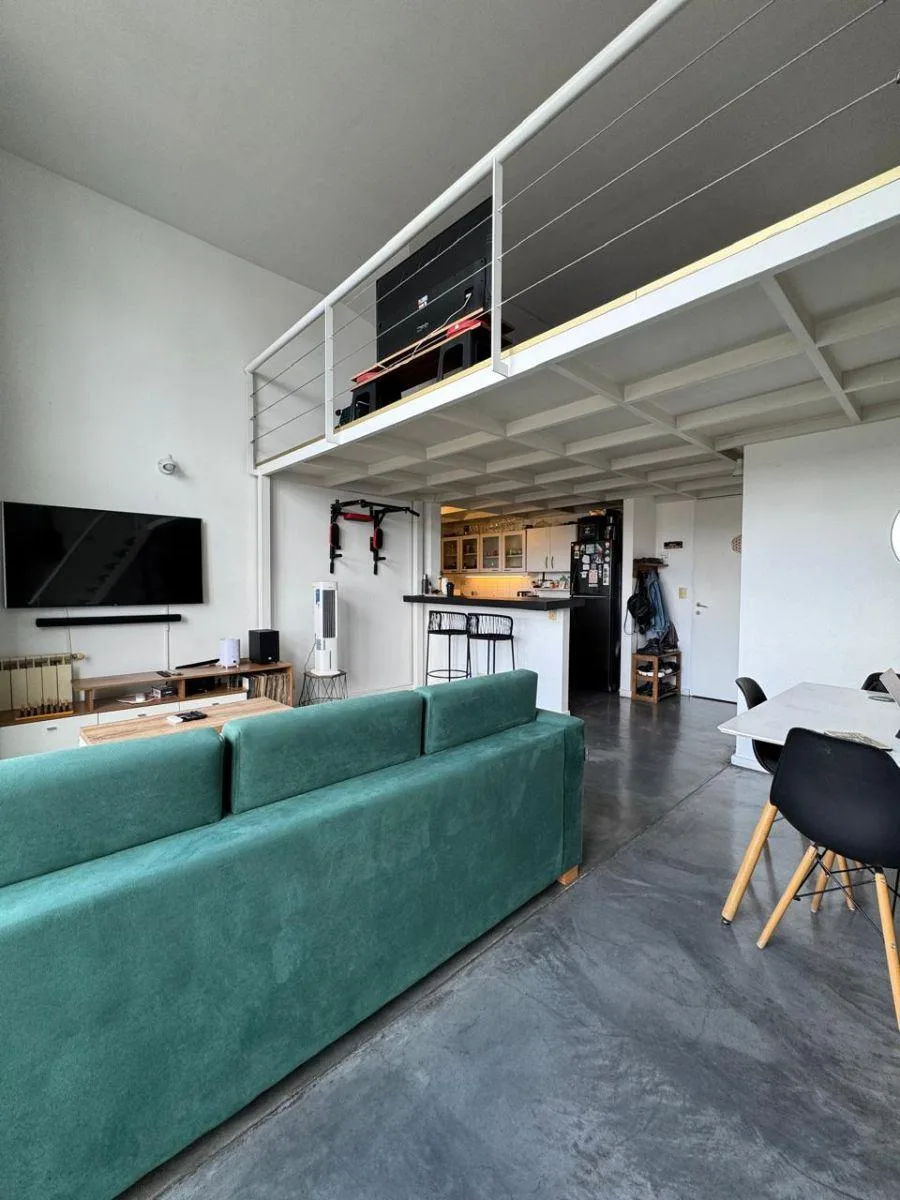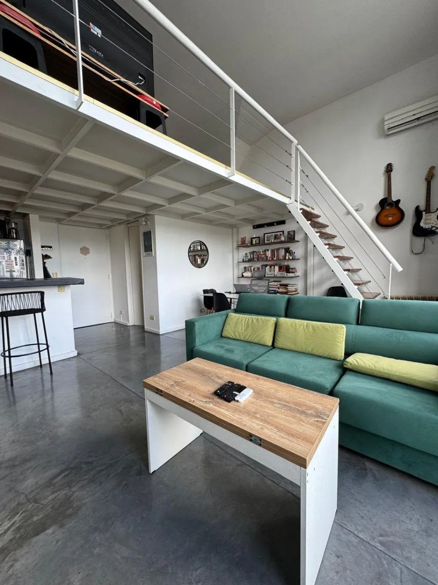 Квартира в формате дуплекса в Colegiales, 1 спальня, 2 комнаты. На первом уровне: гостиная-столовая с интегрированной кухней с барной стойкой, полноценная ванная и балкон. На втором уровне: спальня с местом под рабочий стол и гардеробной. 5-й этаж, отопление и горячая вода через индивидуальный котёл, есть кондиционер. В комплексе La Algodonera предусмотрены круглосуточная охрана, большой сад с деревьями, бассейн для взрослых и детей, тренажёрный зал, bar-ресторан, общая гостиная для жильцов и пр