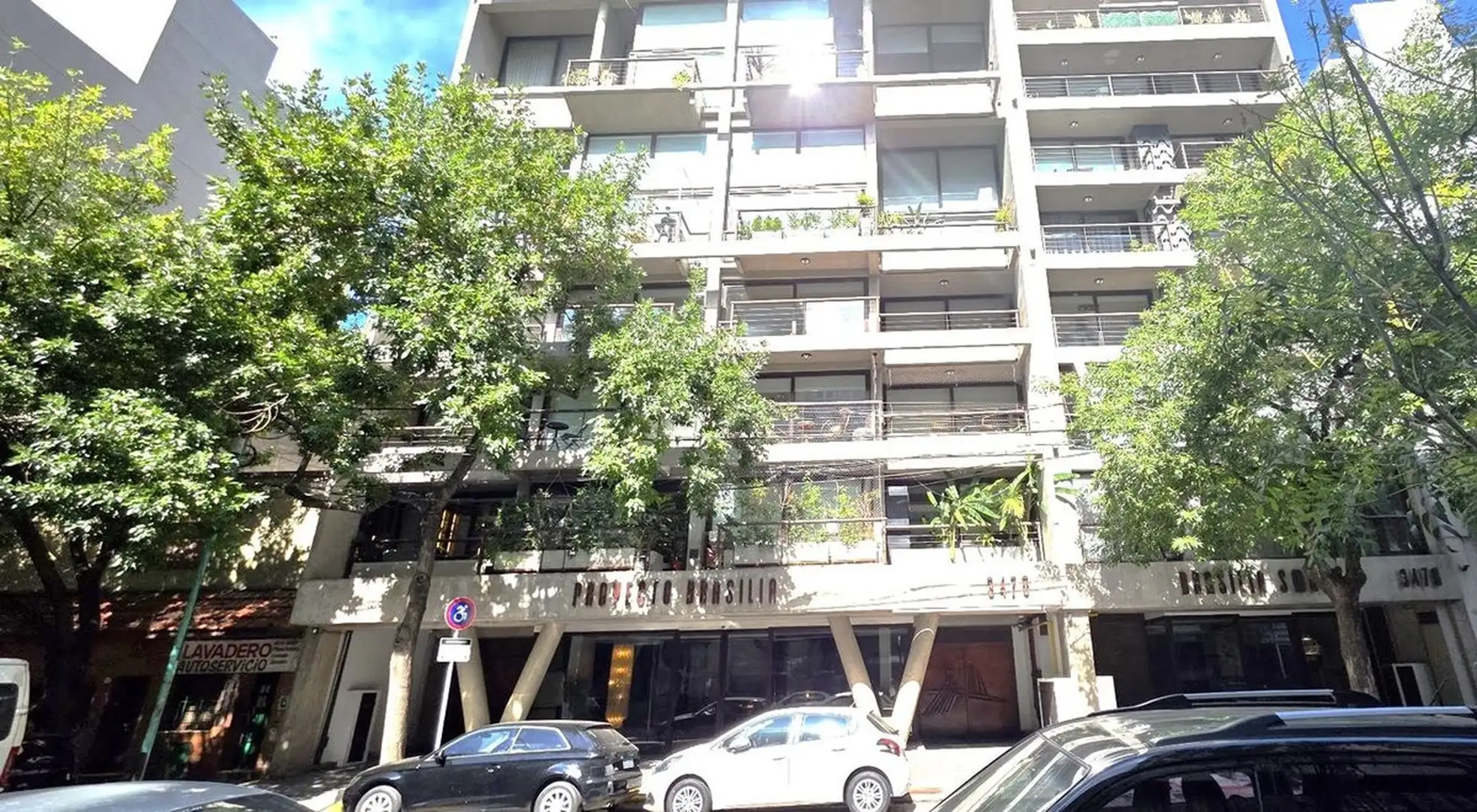 Квартира-студия площадью 36 m² в комплексе «Complejo Brasilia», 1-й этаж, с ориентацией на восток. С мебелью, с кондиционером холод/тепло. Есть собственная терраса почти 40 m². В комплексе предусмотрены бассейн, солярий, тренажёрный зал, зона коворкинга и охрана 24/7, доступ с электронным замком и по отпечатку. Также указано (закреплённое) парковочное место в крытом паркинге и лифт. Здание построено в 2022 году.