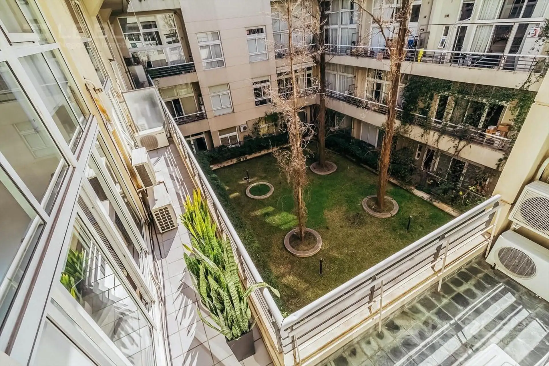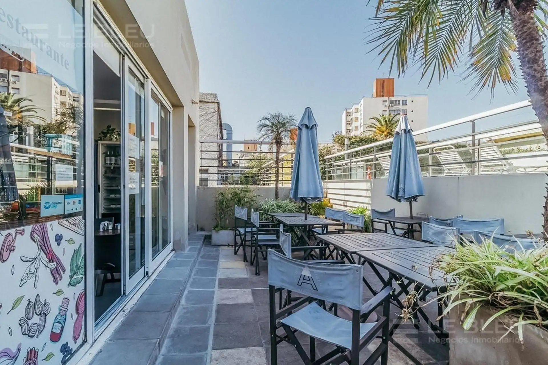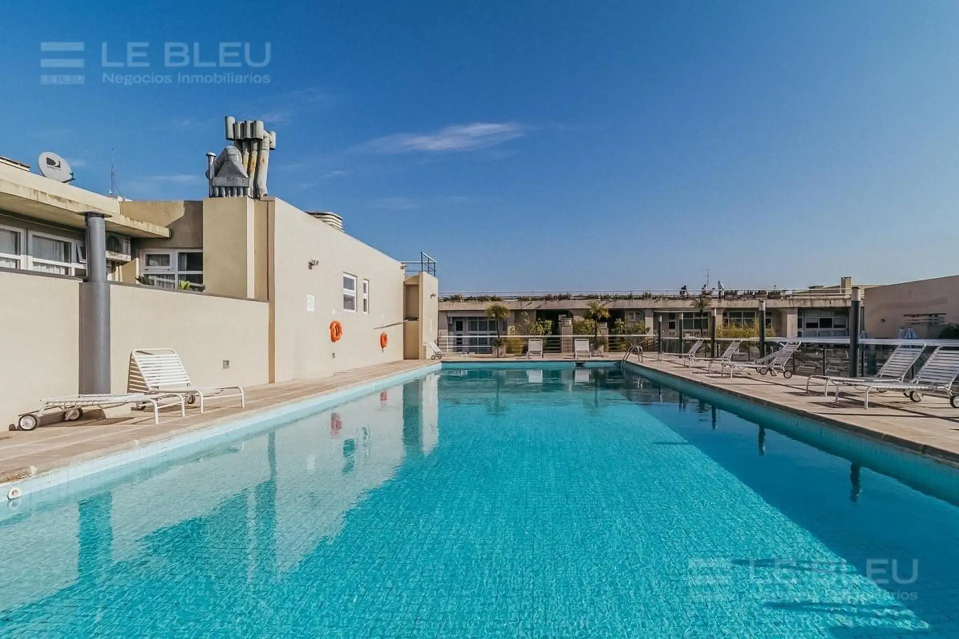 Квартира 2 ambientes площадью 65 m² в Colegiales. Есть собственный внутренний дворик/терраса. В комплексе предусмотрены бассейн, озеленённая территория, спортзал и бар/ресторан. Также указаны круглосуточная охрана и прачечная (laundry) в здании.