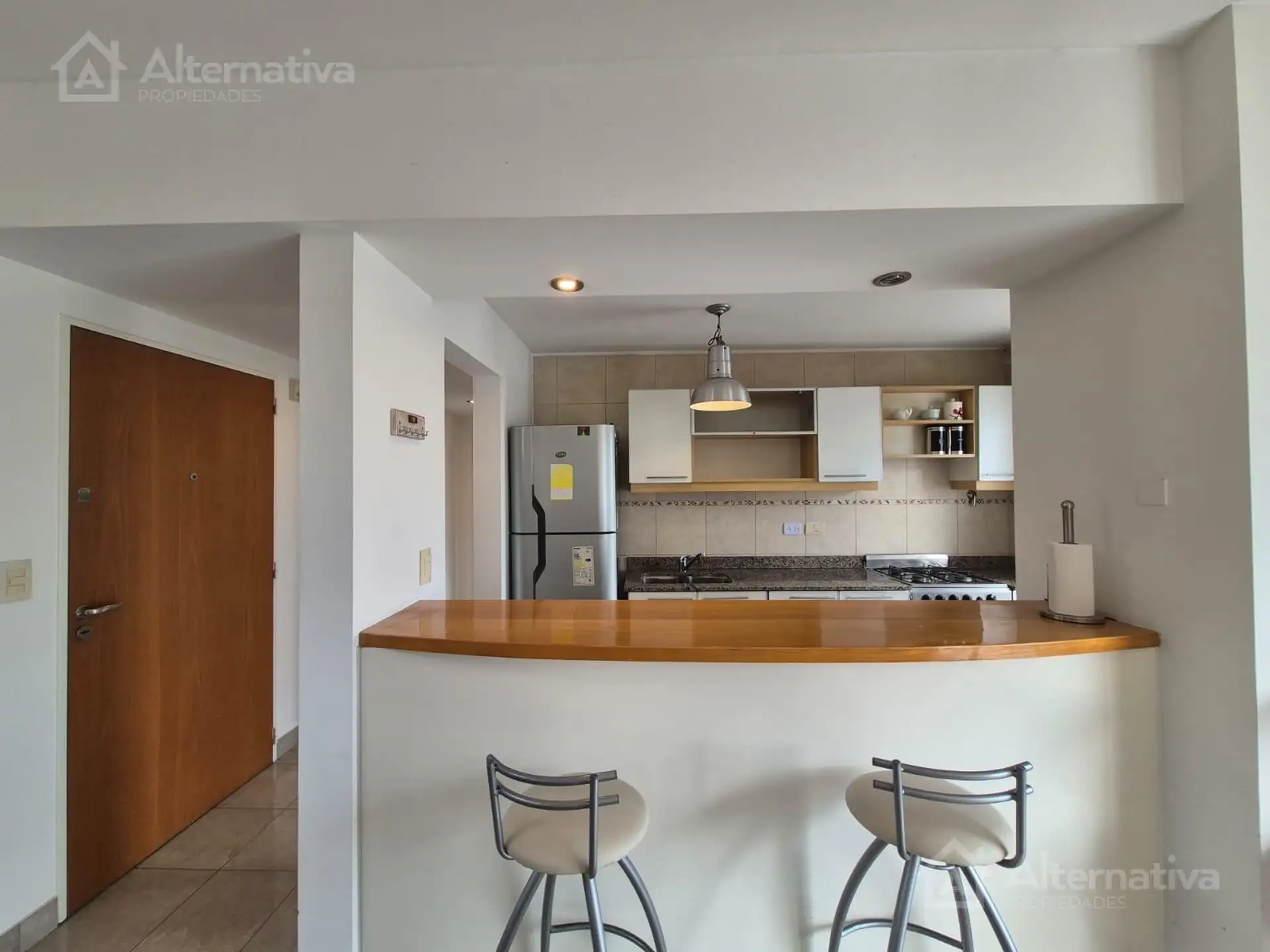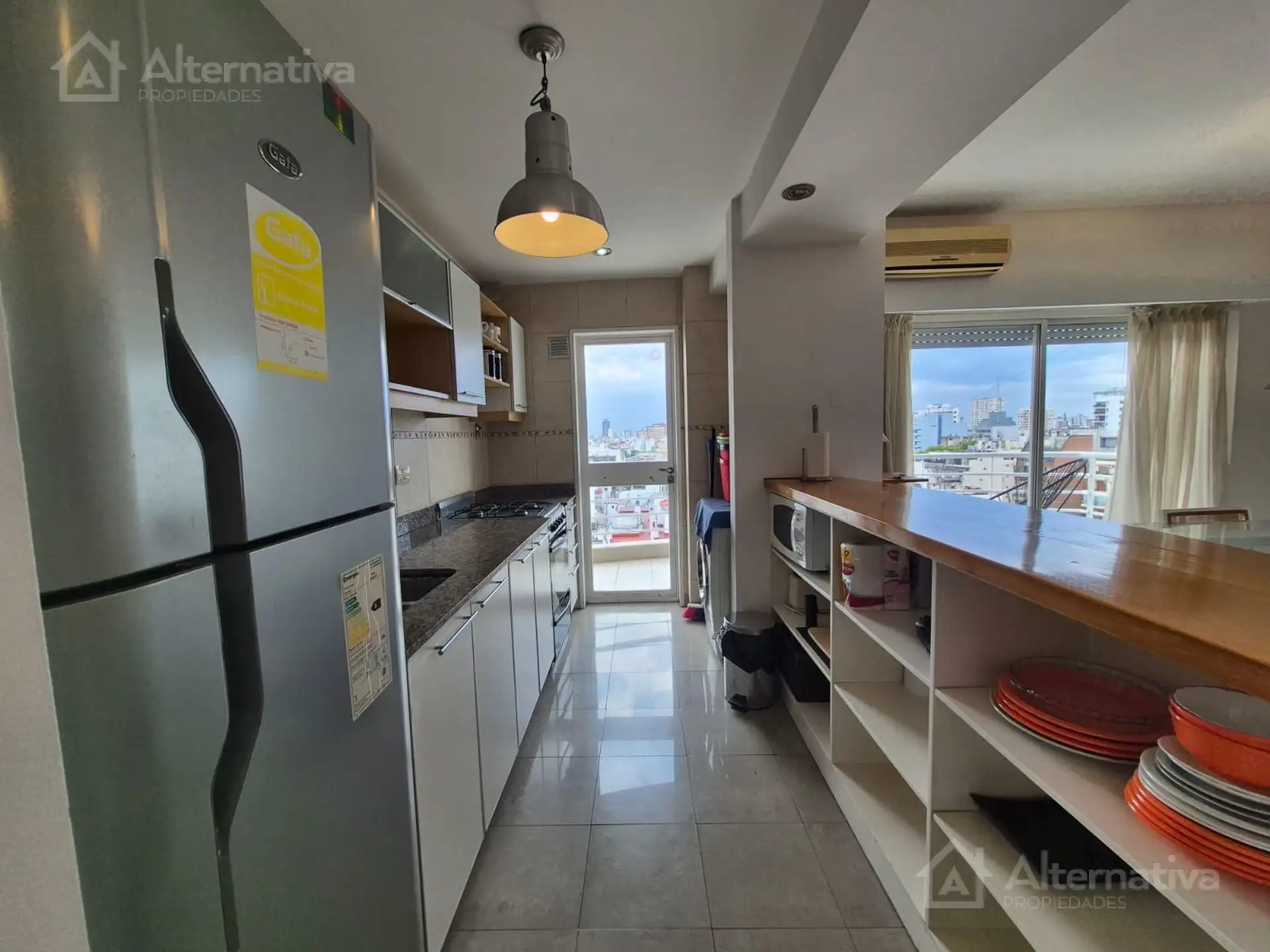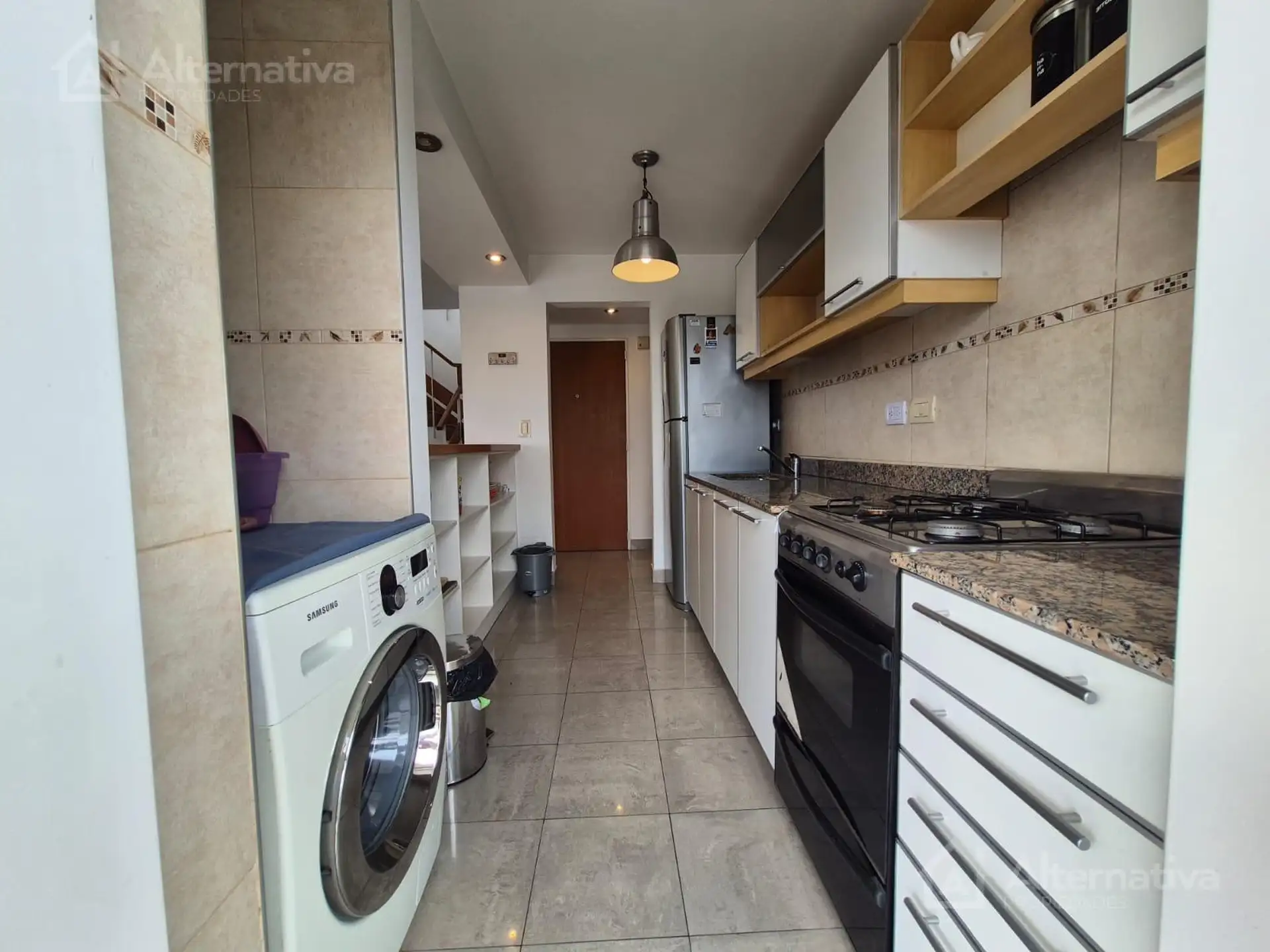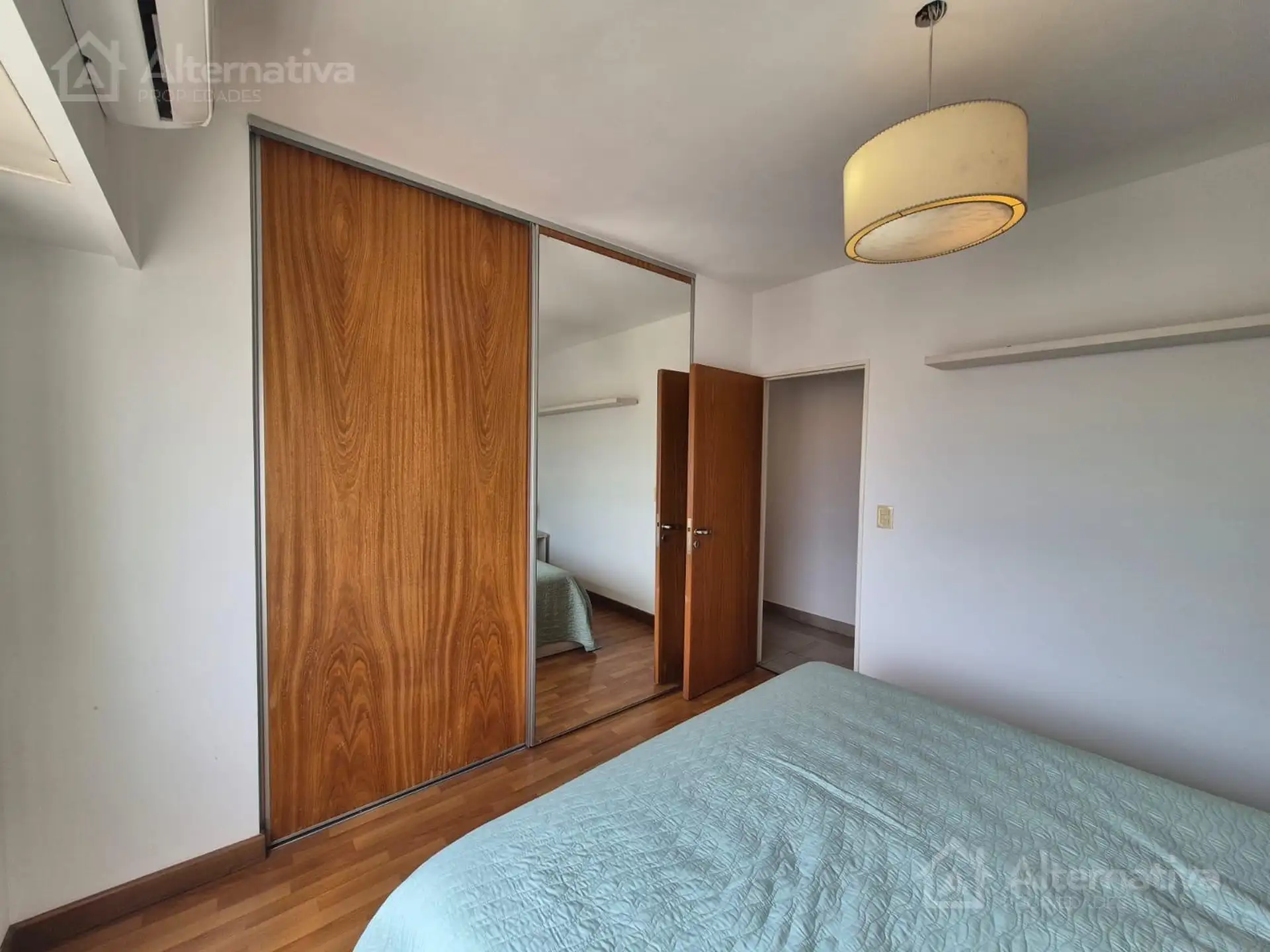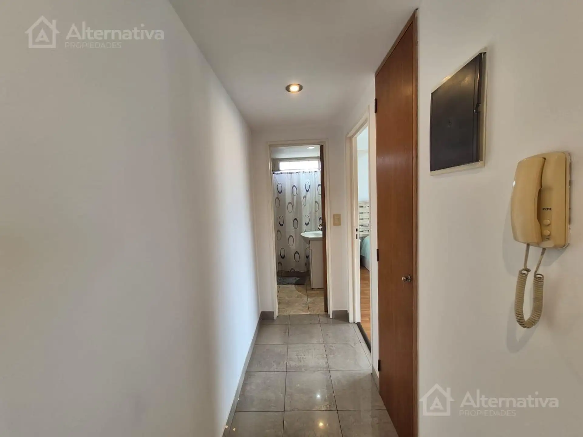 Квартира 2 ambientes площадью 1 спальня в Colegiales, с мебелью и техникой, в аренду на срок от 1 до 12 месяцев с возможностью продления. Планировка включает объединённую гостиную-столовую, оборудованную кухню с посудой и бытовой техникой, полноценную ванную комнату, места хранения в спальне и в коридоре. В спальне и гостиной установлены кондиционеры (холод/тепло). Есть балкон, собственная терраса, зона гриля (parrilla) и стиральная машина. Отопление — тёплый пол от индивидуального котла. В здан