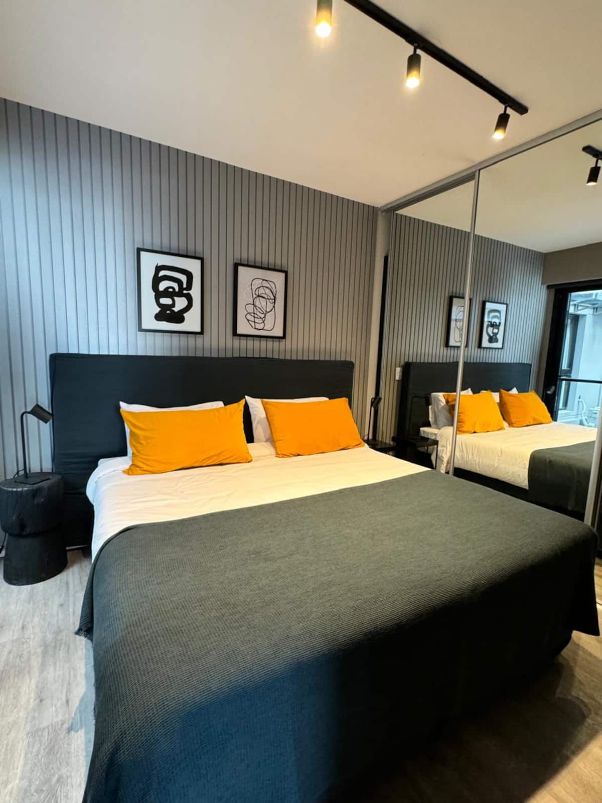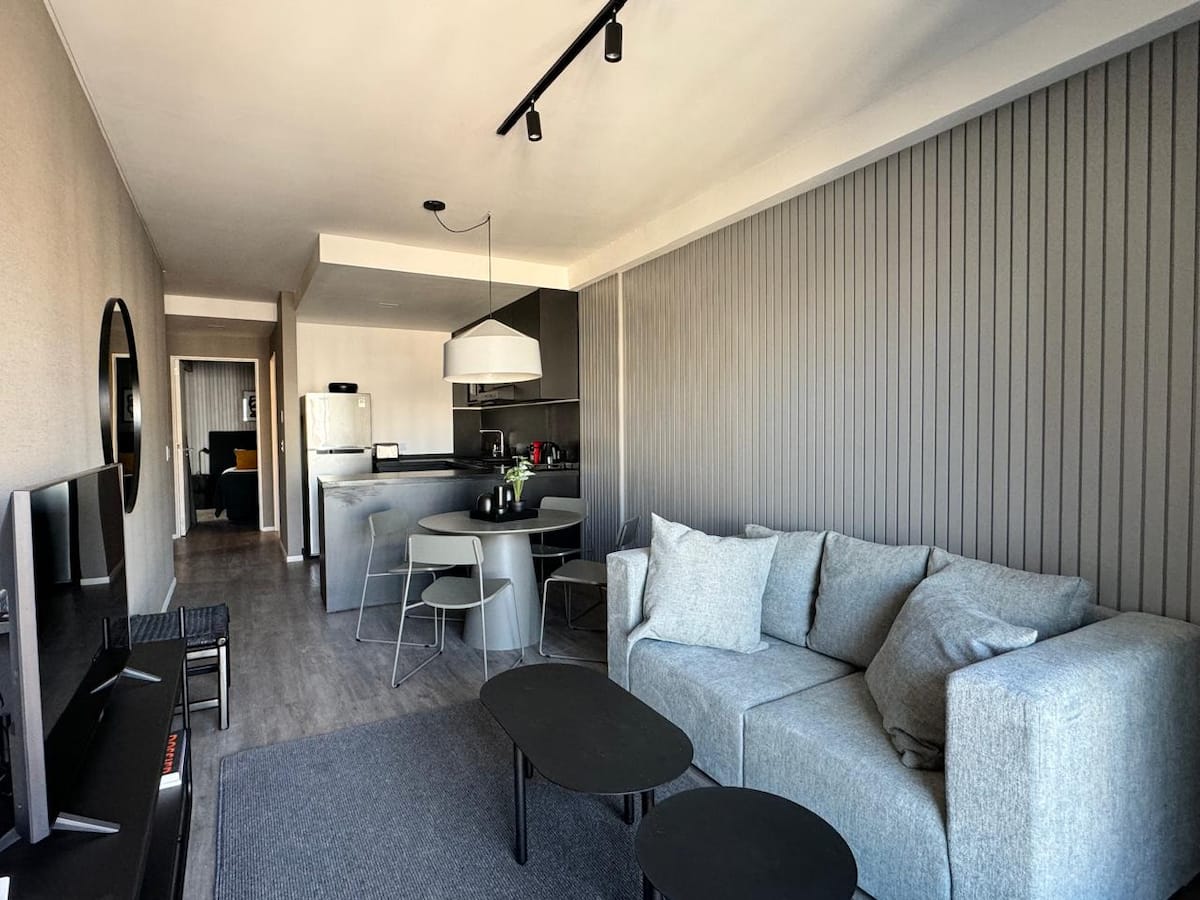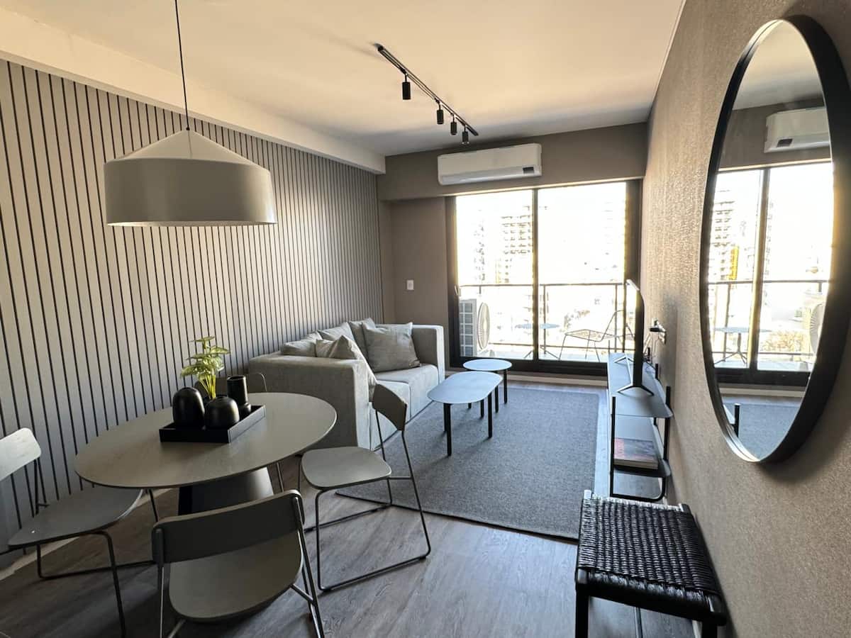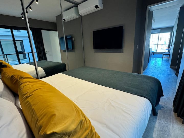 Двухкомнатная квартира в Colegiales с мебелью и оборудованной кухней. В распоряжении спальня с шкафом, отдельная ванная и большая лоджия. Кондиционер с режимом охлаждения/обогрева, телевизор и Wi‑Fi, кофемашина Nespresso, тостер, электрочайник, холодильник и электрическая духовка.