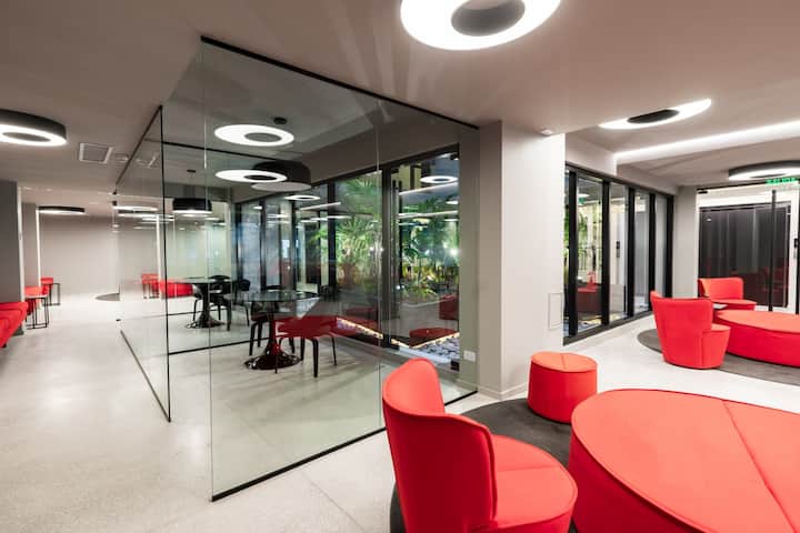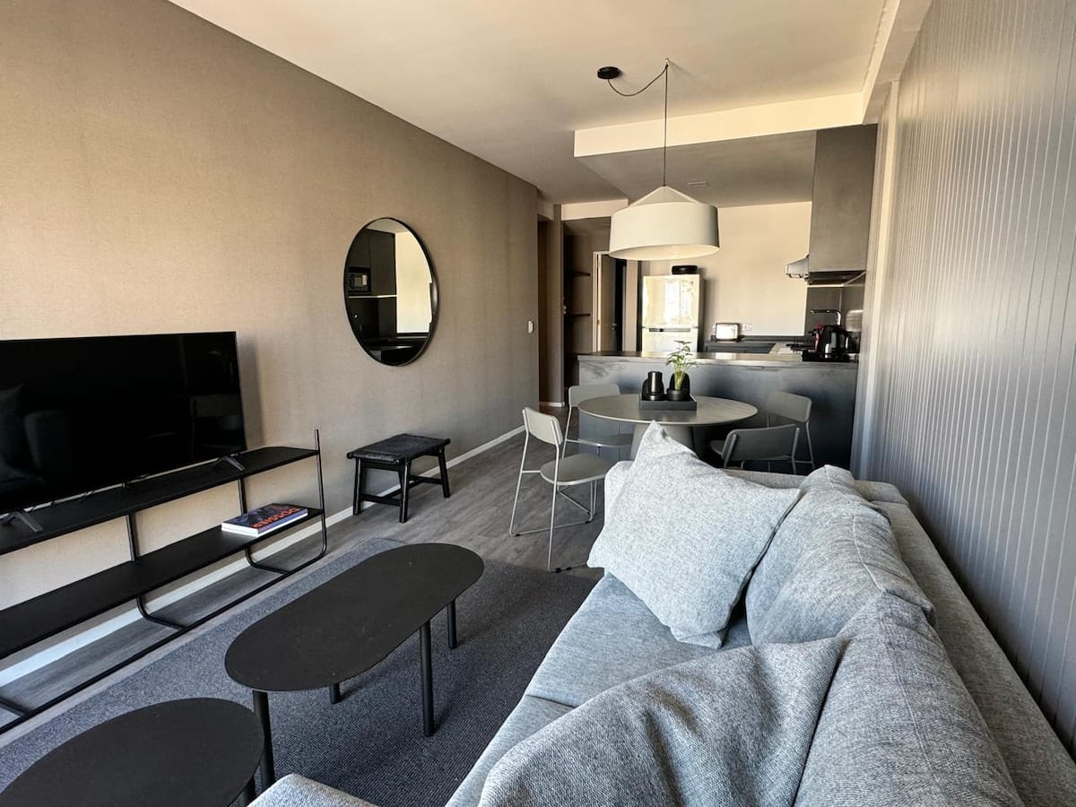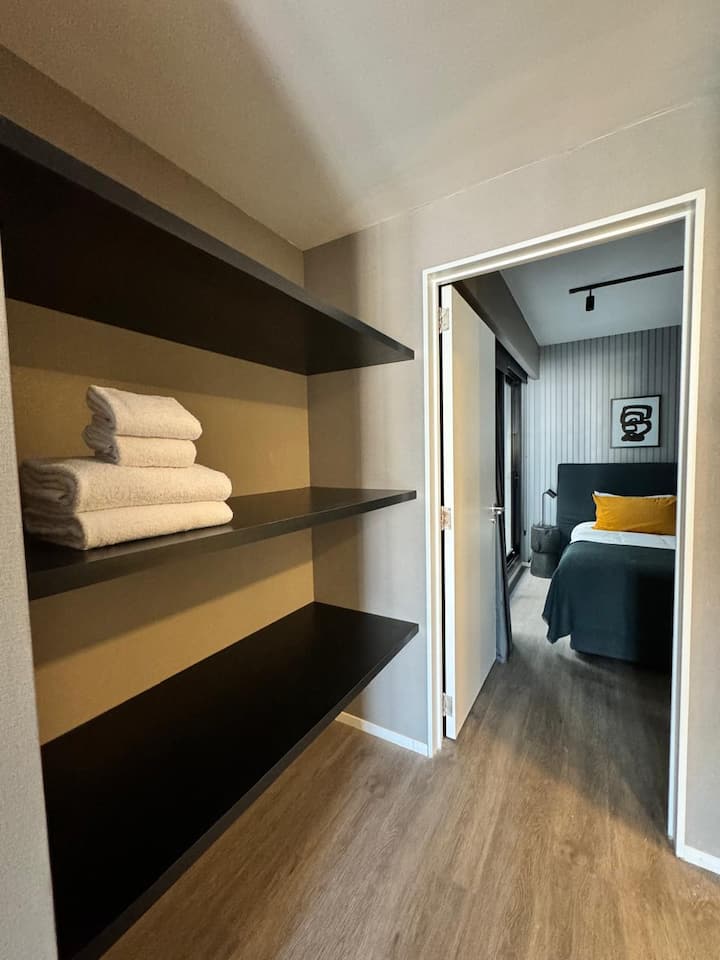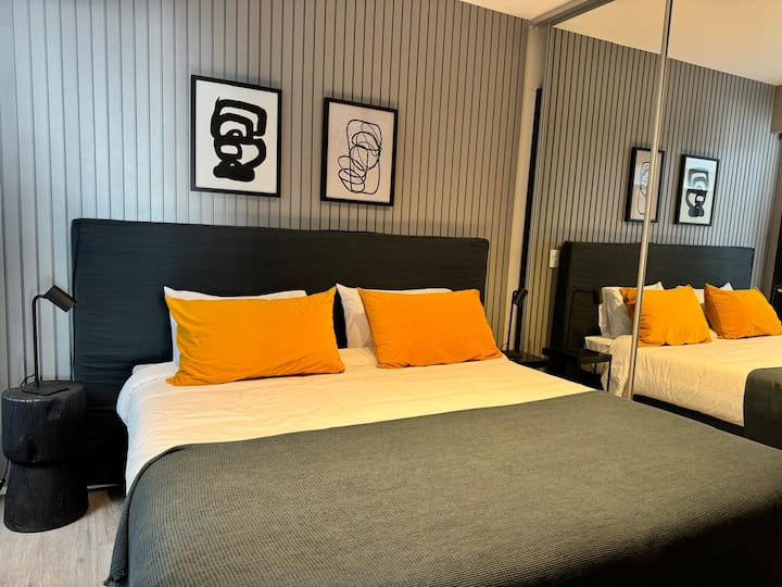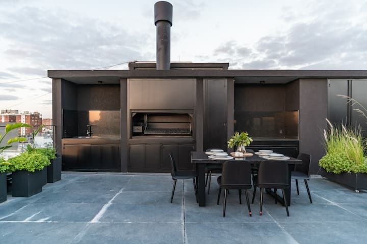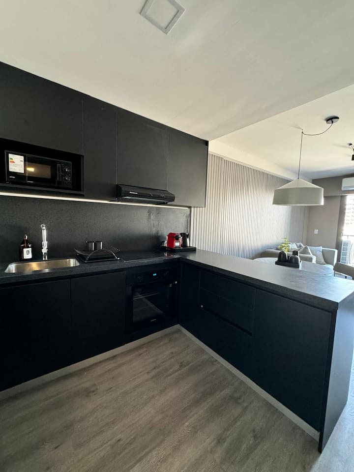 Двухкомнатная квартира в Colegiales с мебелью и оборудованной кухней. В распоряжении спальня с шкафом, отдельная ванная и большая лоджия. Кондиционер с режимом охлаждения/обогрева, телевизор и Wi‑Fi, кофемашина Nespresso, тостер, электрочайник, холодильник и электрическая духовка.