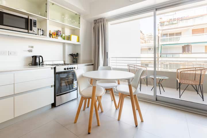 Квартира-студия в Colegiales в новой постройке. В здании предусмотрены бассейн, терраса с зоной гриля, солярий, тренажёрный зал и прачечная.