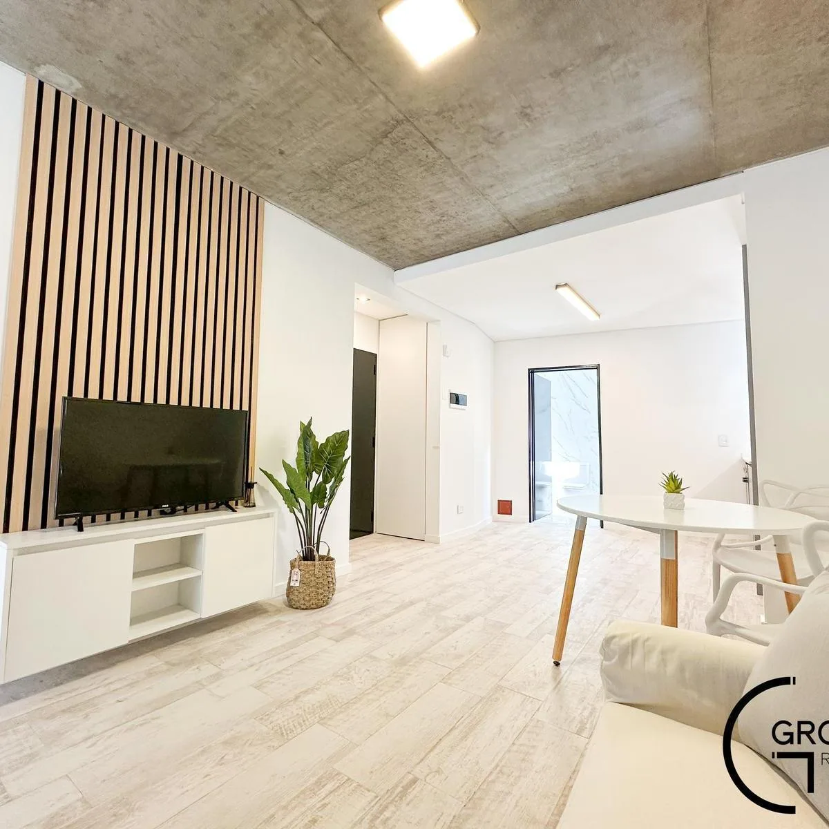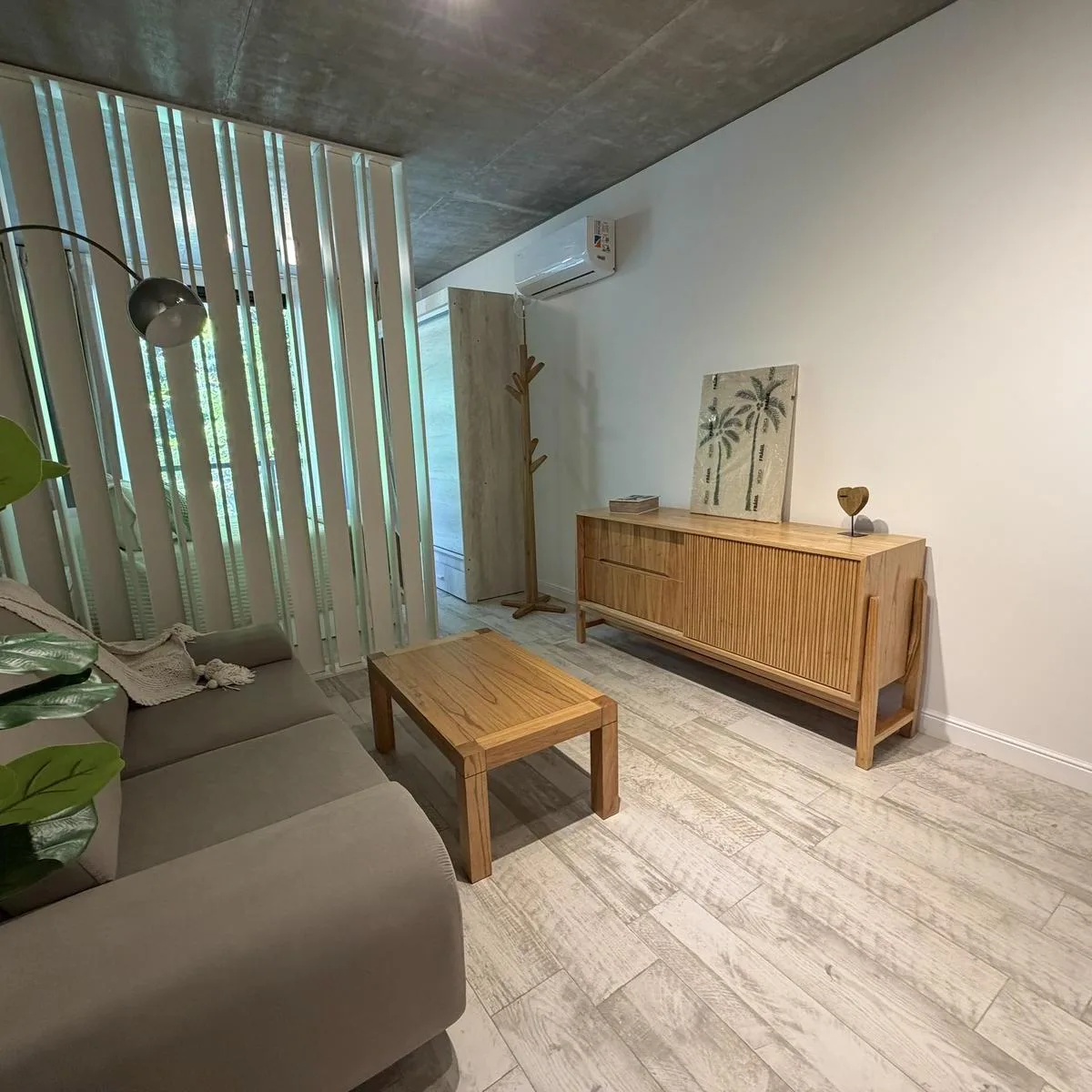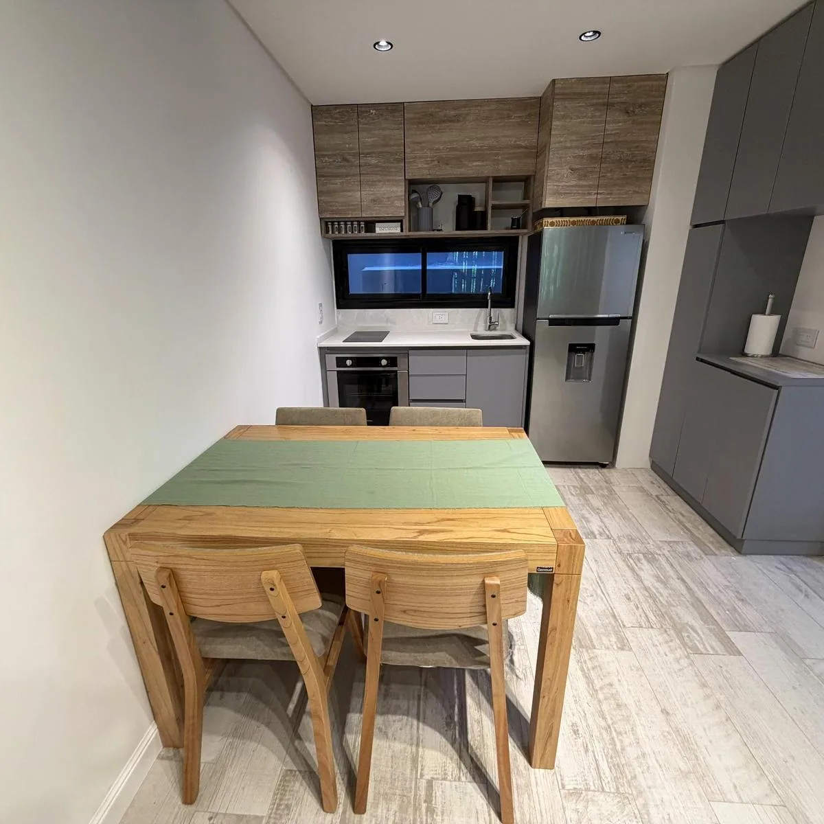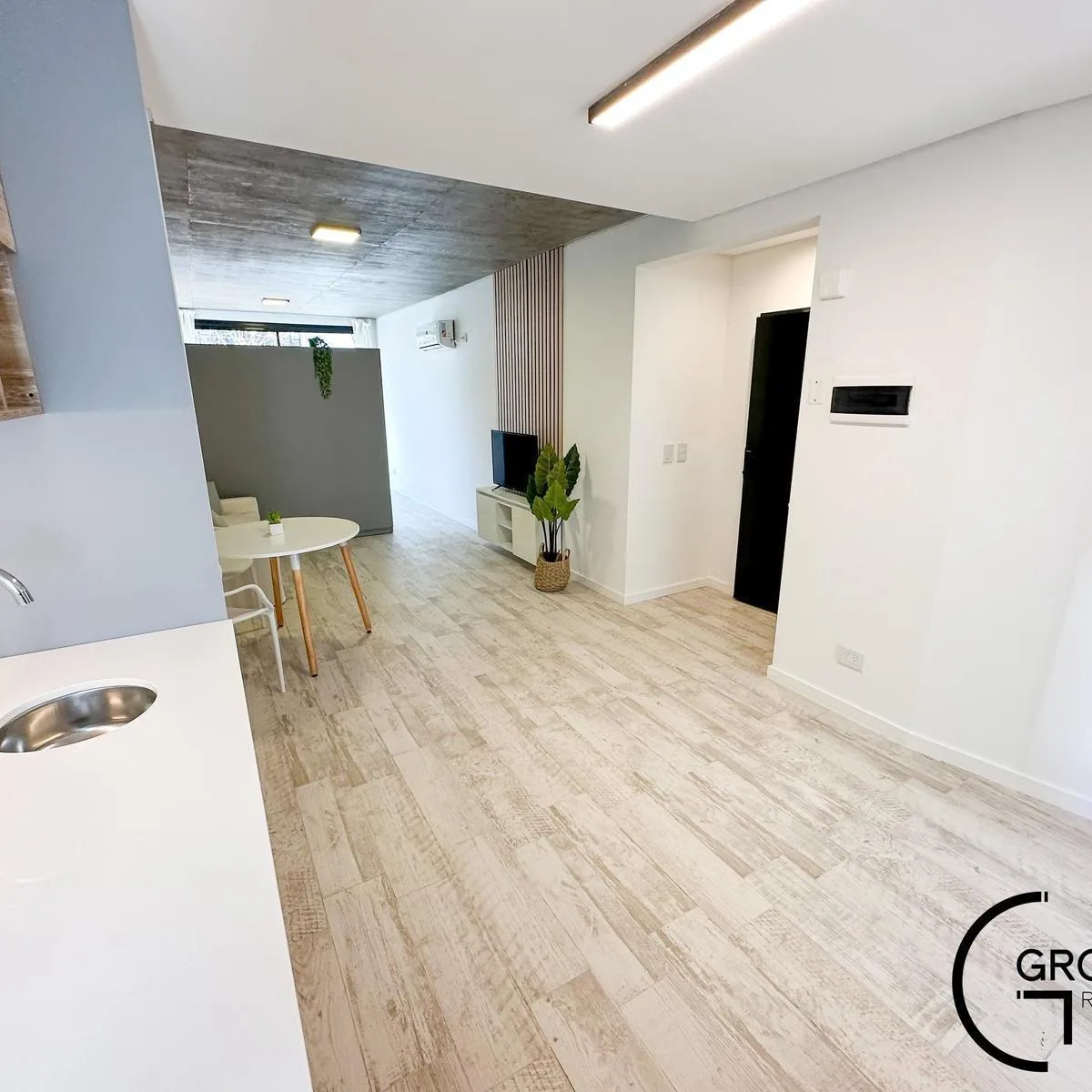 Квартира или офис с 1 спальней в Colegiales, 45 m² общих площадью, окна на улицу. Помещение с возможностью зонирования; фотографии относятся к шоуруму, при сдаче квартира будет без мебели. В квартире отдельный санузел, кухня в американском стиле объединена с гостиной-столовой и выходит на балкон. Здание на 10 этажей, предусмотрены цифровой доступ к дому и к квартирам через приложение HIPCAM (ключ, QR-код, распознавание лица или отпечаток). В здании есть озеленённая терраса с джакузи, солярий, об