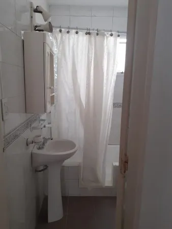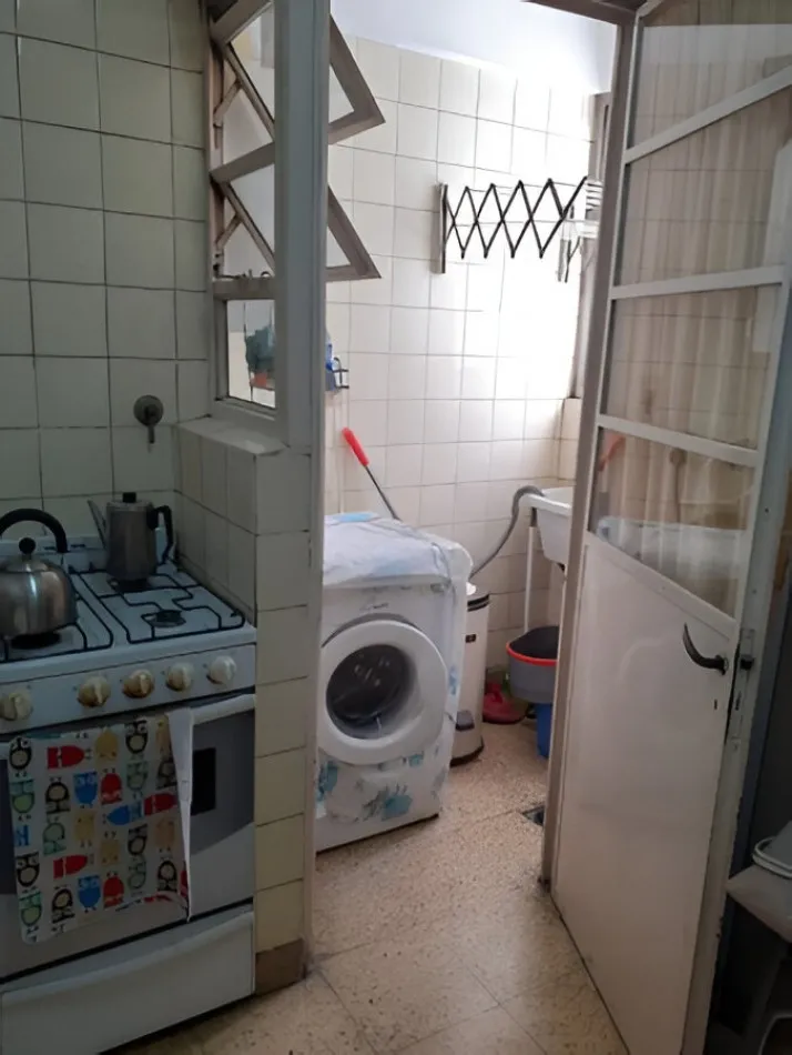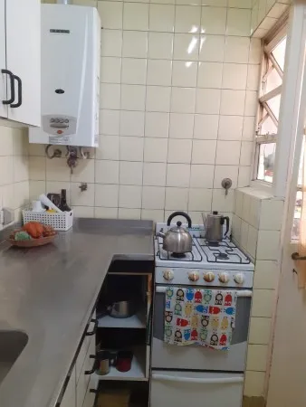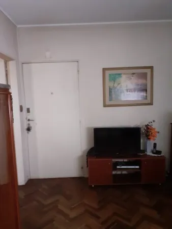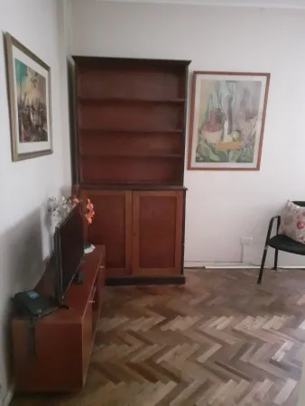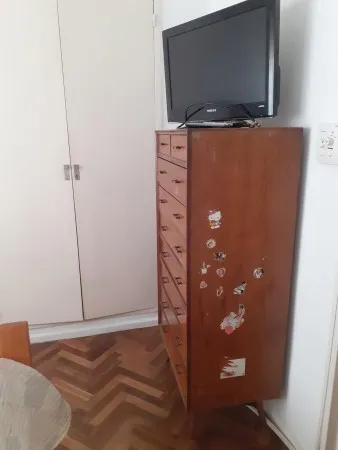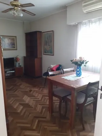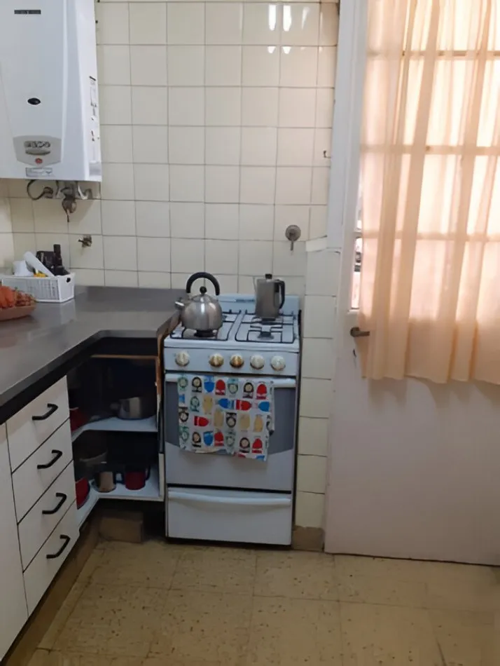 Квартира с двумя комнатами в Palermo, окна на улицу, с мебелью и техникой. В спальне двуспальная кровать, в гостиной-столовой обеденный стол и стулья, диван и телевизор. Отдельная кухня с холодильником с морозильной камерой, рядом — зона для стирки с стиральной машиной. Кондиционер, ванная комната с ванной. Цена включает коммунальные платежи здания и налоги; электричество и газ с лимитом $14.000, интернет не включён.