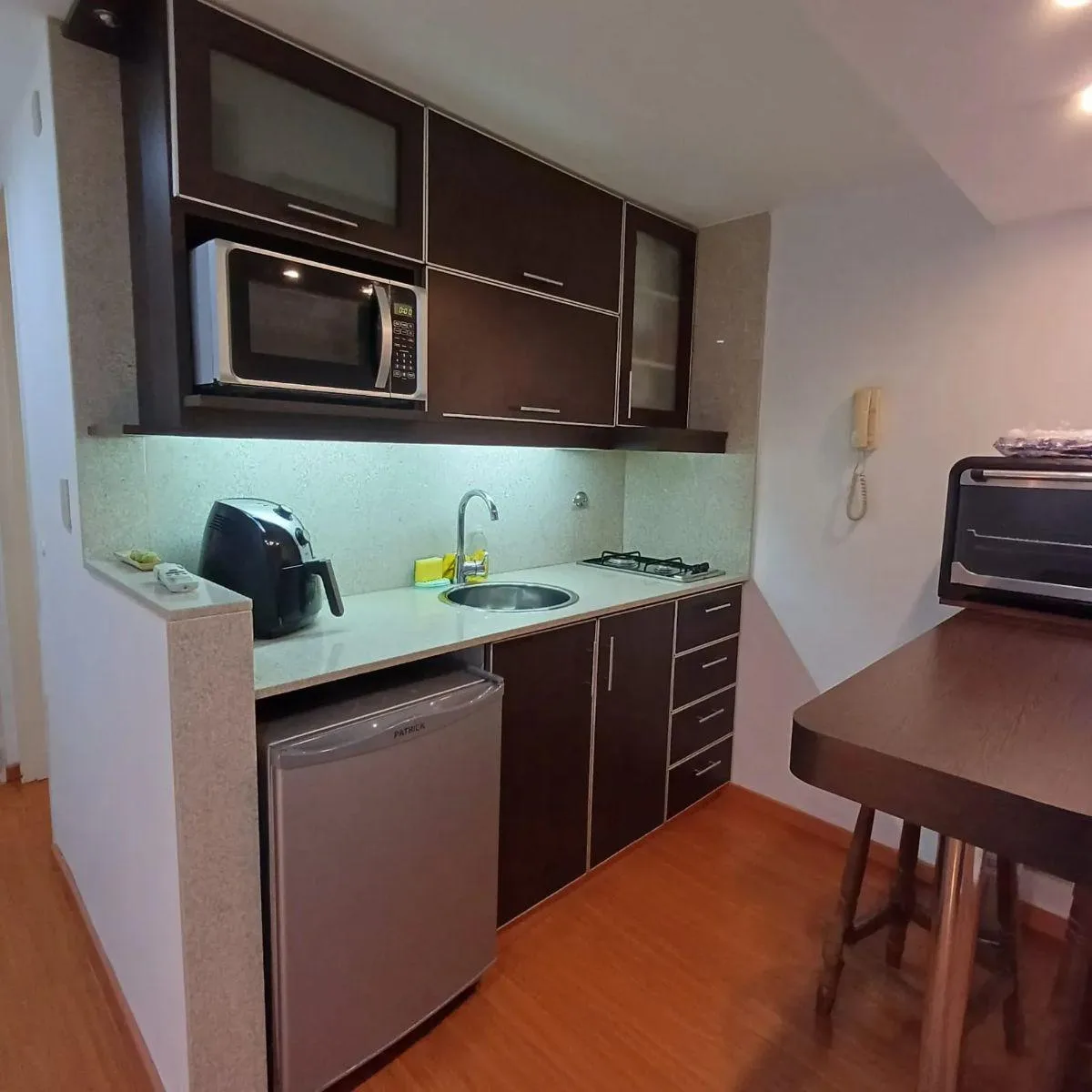 Квартира с 2 комнатами в Colegiales, с отдельной спальней и полной ванной. Кухня оборудована, есть барная стойка для завтраков, духовка и микроволновая печь, стиральная машина и холодильник с морозильной камерой. Квартира с мебелью и террасой. Адрес: Virrey del Pino 2632.