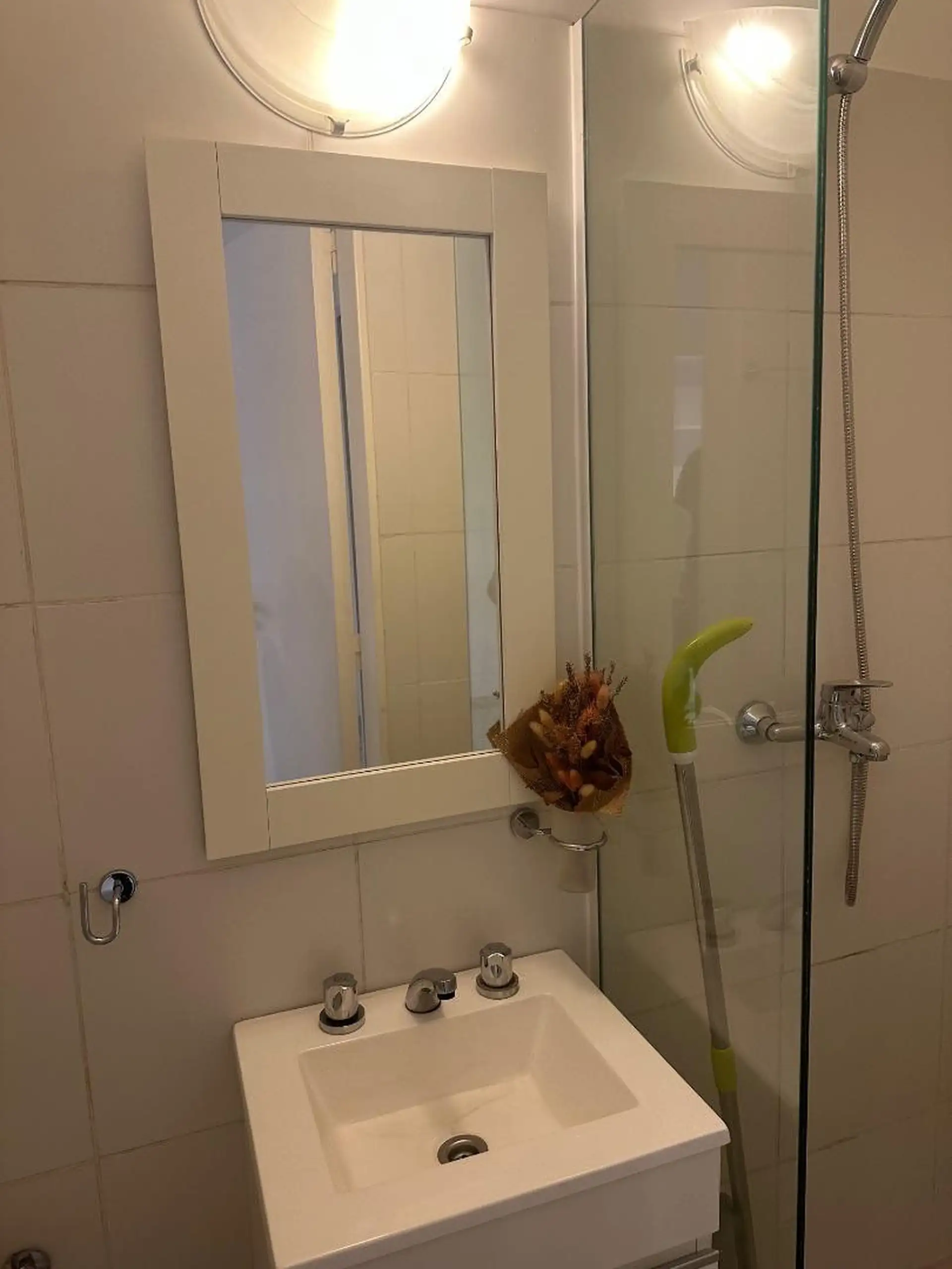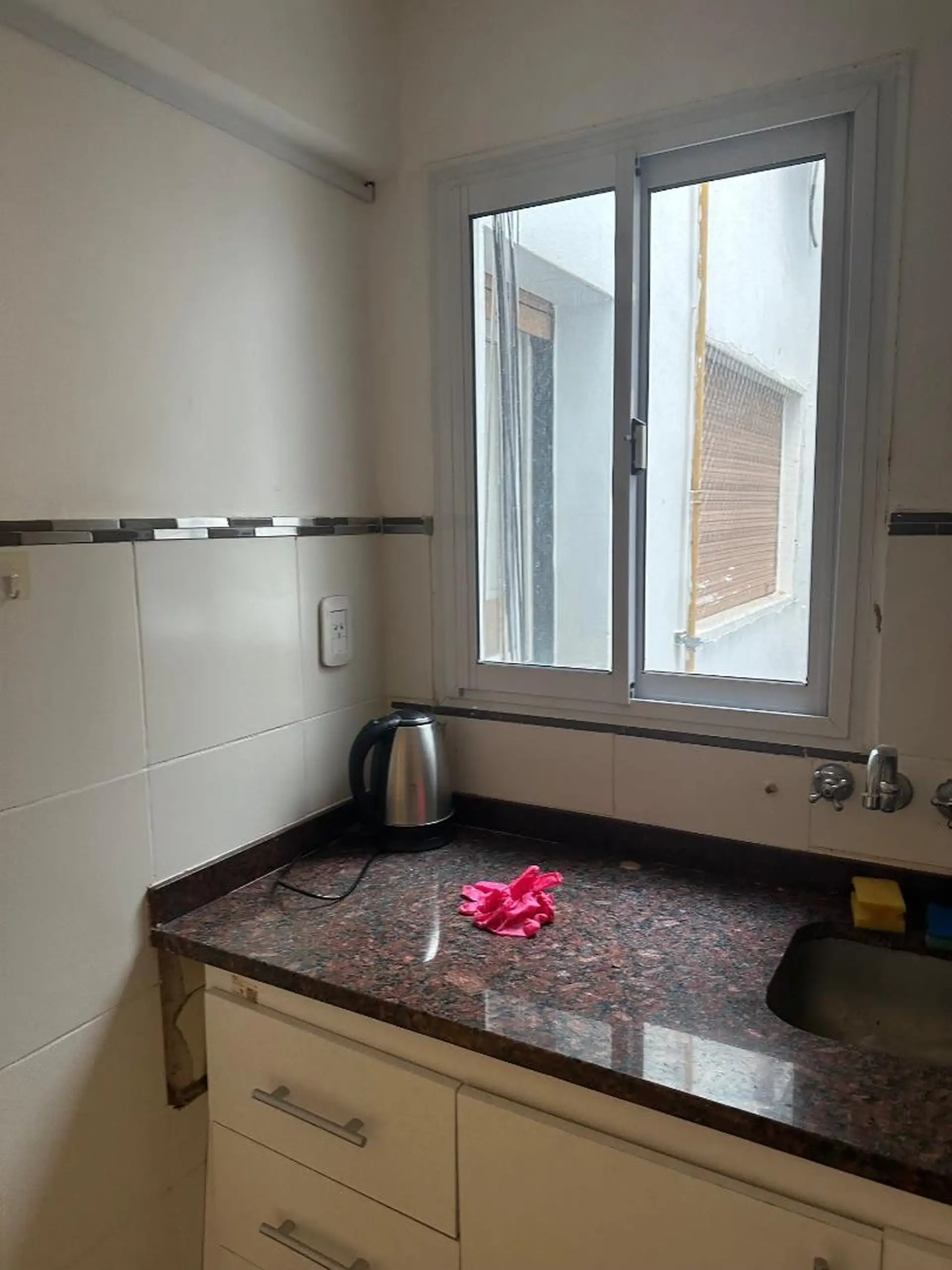 Квартира-студия на 5-м этаже в Colegiales, с окном. После ремонта, с новым термотанком. В отделке установлены новые светильники; кухня с мрамором, ящиками и кухонными навесными шкафами. В ванной новый ванитори, новая душевая перегородка; в квартире есть мебель-библиотека, которая может разделять пространство, и она не демонтируется.