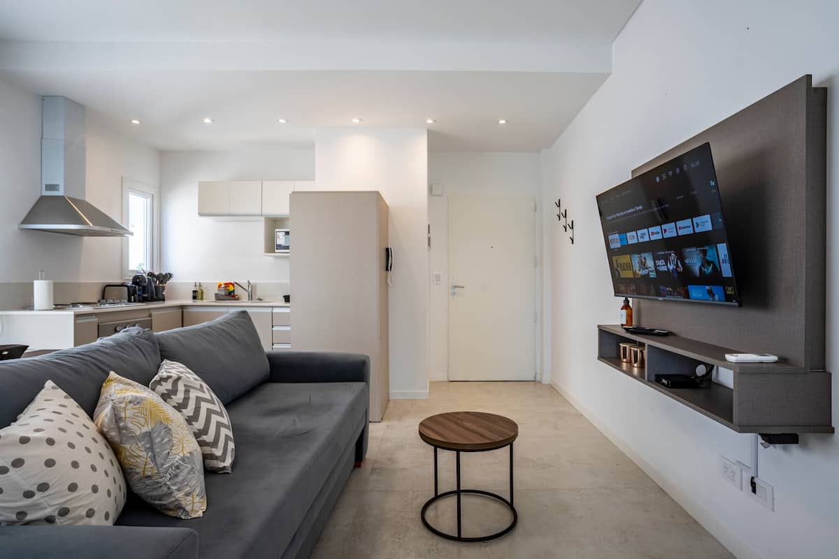Апартамент с 1 спальней в Colegiales. Указан как новая квартира. Размещение описано как подходящее для поездок с компанией.