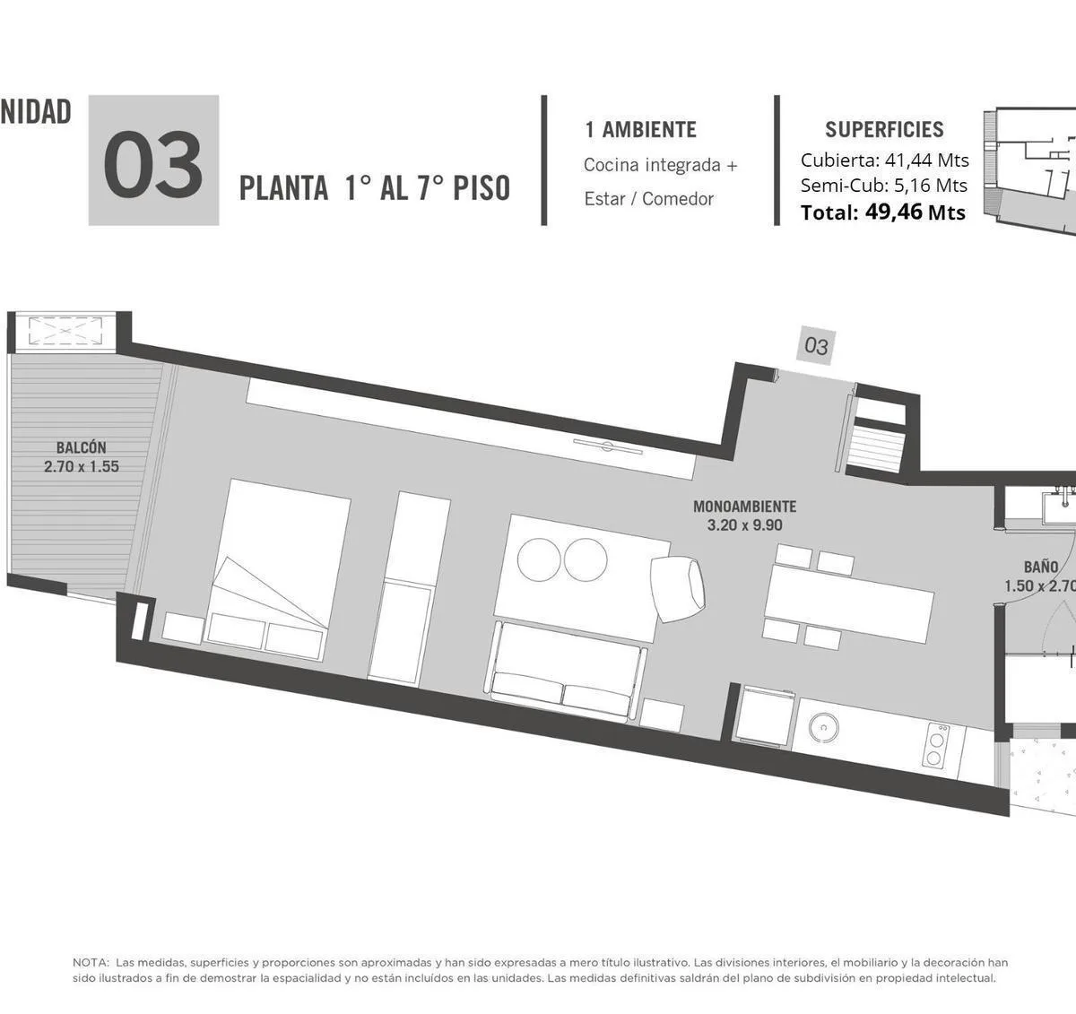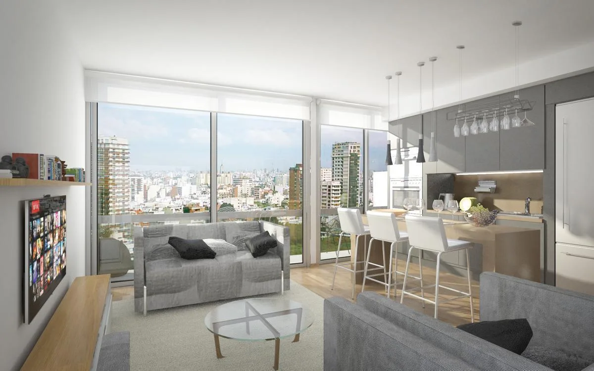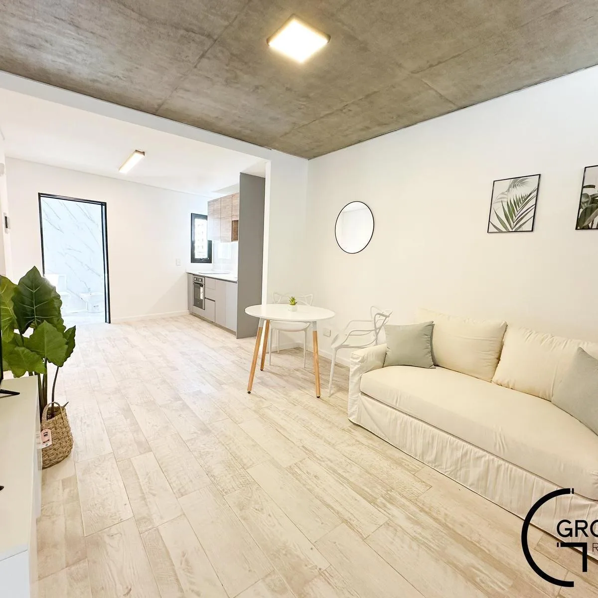 Квартира в аренду в Colegiales с 1 спальней и возможностью профессионального использования. Планировка предусматривает разделяемое помещение, окна на улицу. Общая площадь 53,64 m²; квартира с полноценной ванной, кухней в стиле americana, объединённой с гостиной-столовой, и выходом на балкон. Сдаётся без мебели.