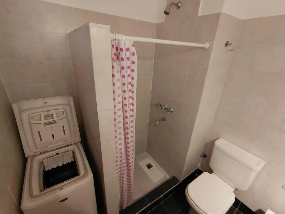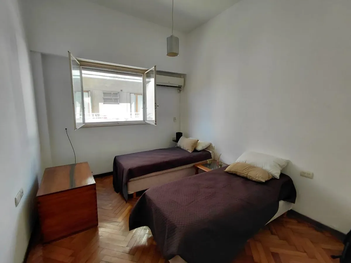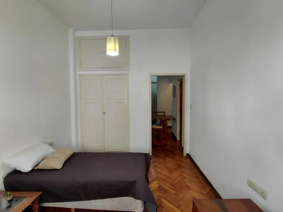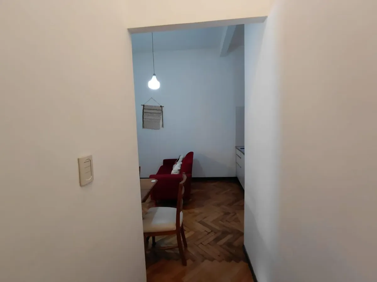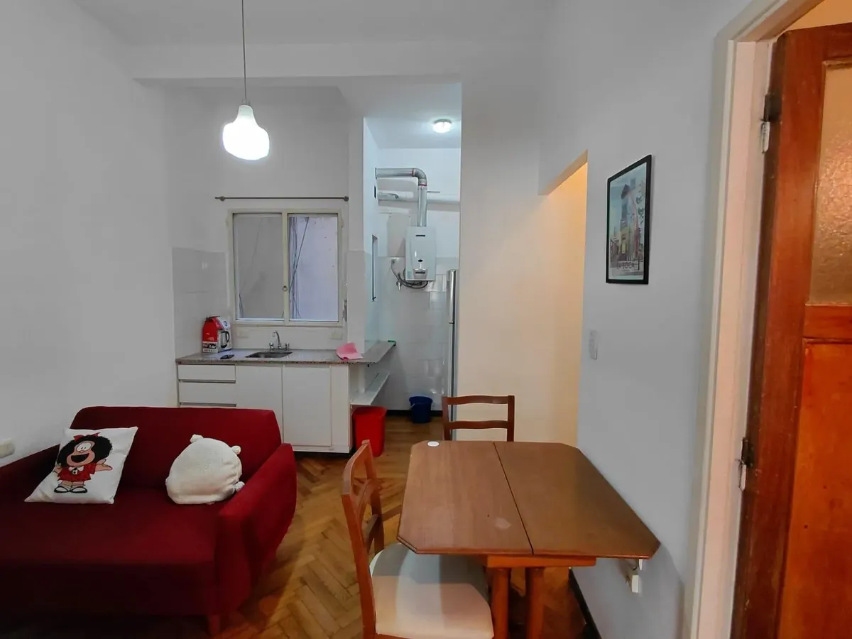 Квартира-двухкомнатная (2 ambientes) с мебелью, расположена на frente (окна на улицу). Включает 1 спальню, просторную гостиную и обустроенную кухню с газовой плитой, холодильником. В санузле установлена стиральная машина (lavarropas). Кондиционер холод/тепло, высокие потолки, паркетные полы, в спальне встроенный шкаф. В здании установлены камеры безопасности, есть 1 лифт.