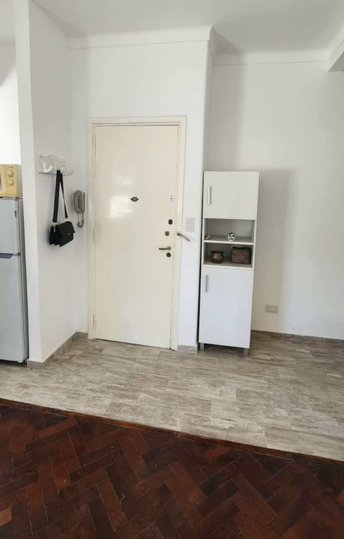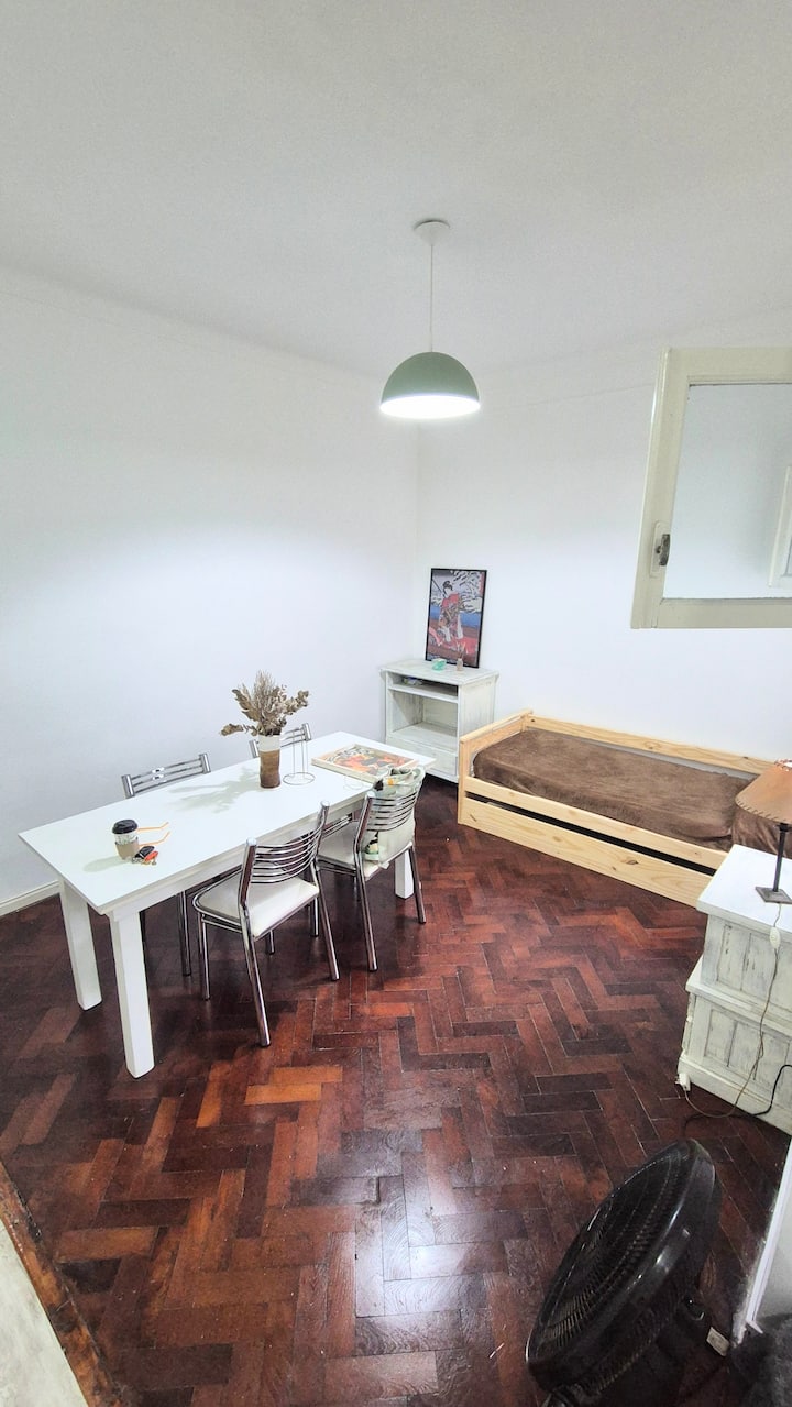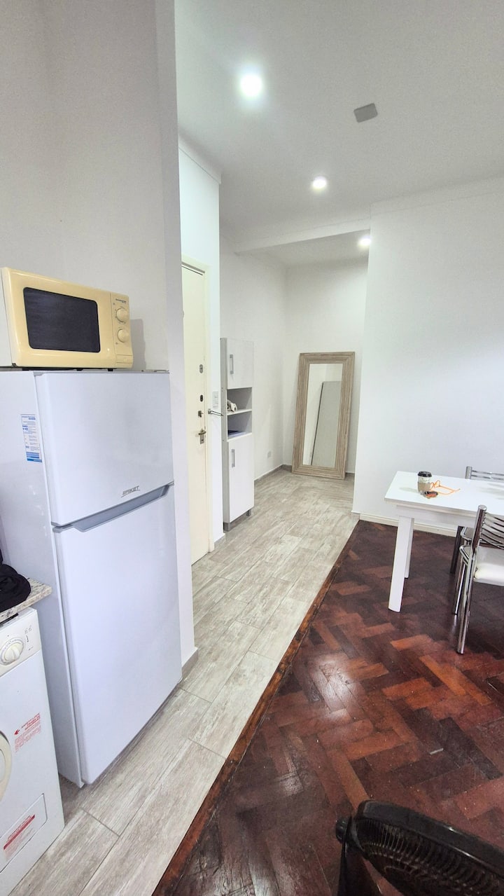 Квартира в Constitución с 1 спальней. Расположена на 2-м этаже, вход по лестнице. В описании указано, что окна выходят на светлую сторону и что площадь достаточна для проживания. Упоминаются близость к British Hospital и Parque España, а также доступность исторических районов Barracas и La Boca.