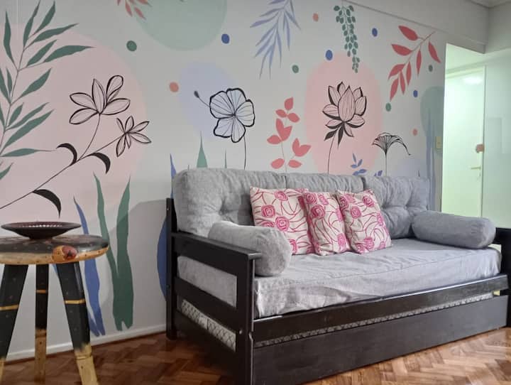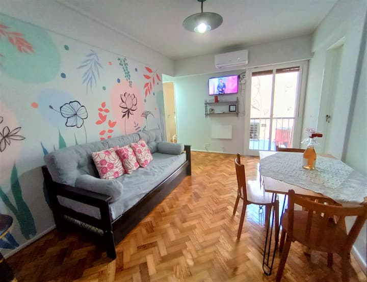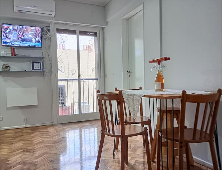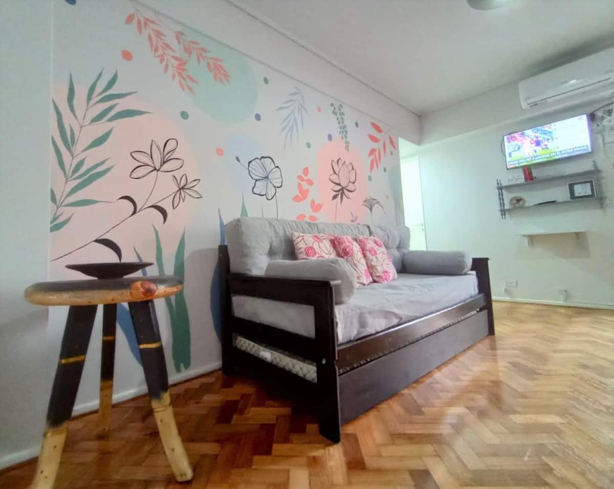 Квартира с 1 спальней в районе San Telmo, рядом с Mercado San Telmo и Plaza Dorrego. В гостиной — диван, который раскладывается в две односпальные кровати, установлен кондиционер с горячим воздухом и Smart TV 32 дюйма. В спальне — двуспальная кровать, телевизор 32 дюйма, портативный обогреватель, потолочный вентилятор и шкаф для хранения. Ванная комната с биде и ванной. Кухня оборудована газовой плитой на 4 конфорки, вытяжкой, электрической чайник/питчер, тостером, микроволновой печью, посудой и