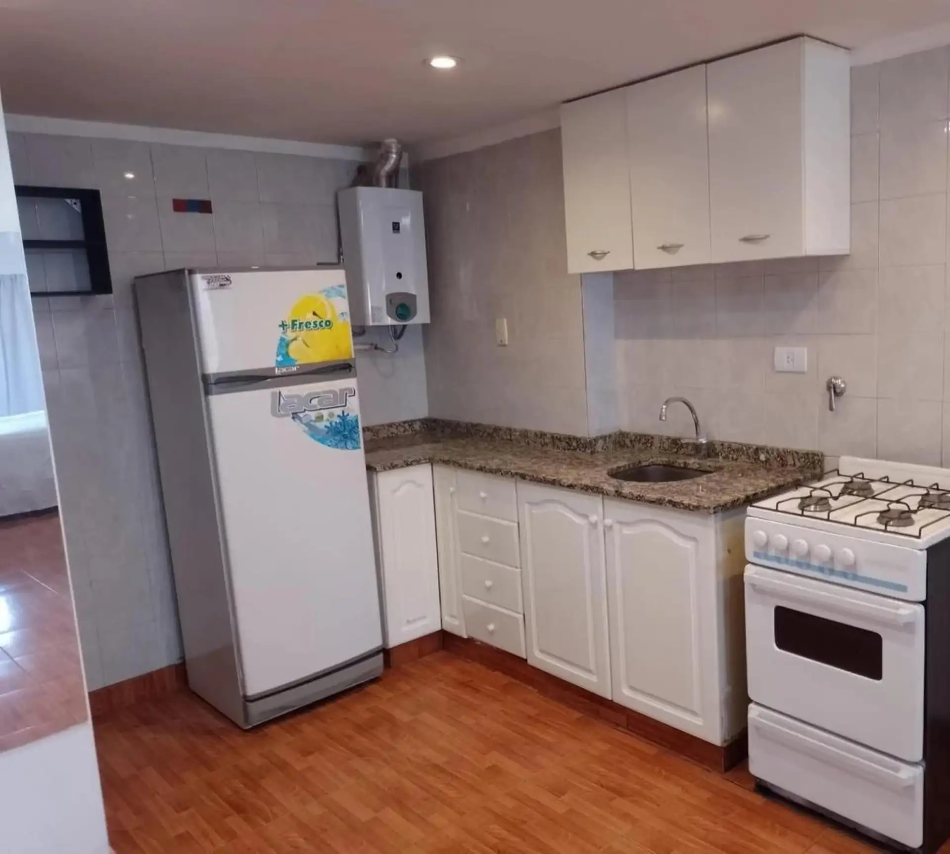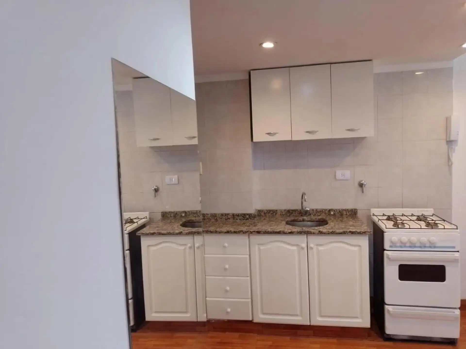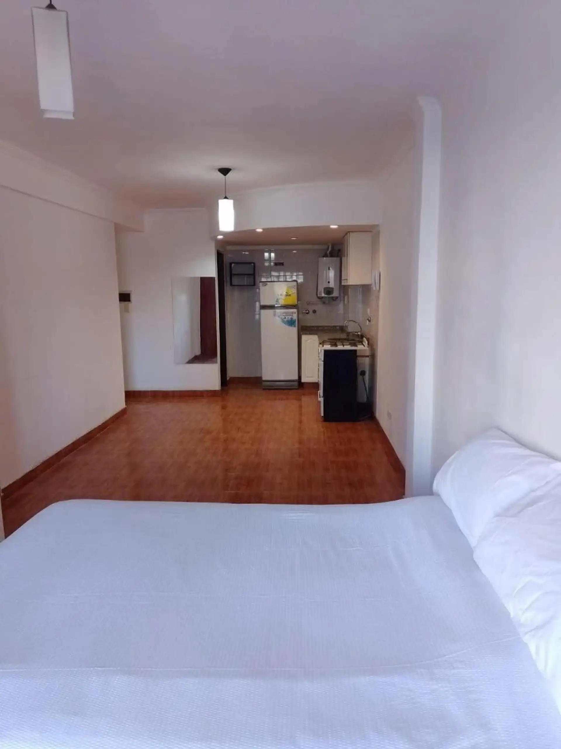 Квартира-студия площадью примерно 33 m², из которых 31 m² крытых, расположена на высоком этаже с лифтом. Окна на улицу, ориентация на юг. Кухня с мебелью верхнего и нижнего яруса. В основном помещении предусмотрены встроенные места хранения, есть отдельная полностью оборудованная ванная комната. Установлены балкон и обеспечивается естественная вентиляция. Коммунальные платежи здания по состоянию на 22/12/2025 составляют около $123.000.
