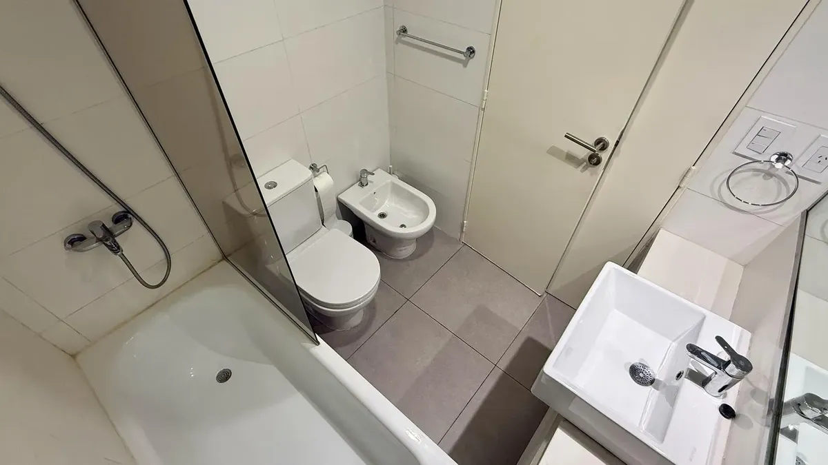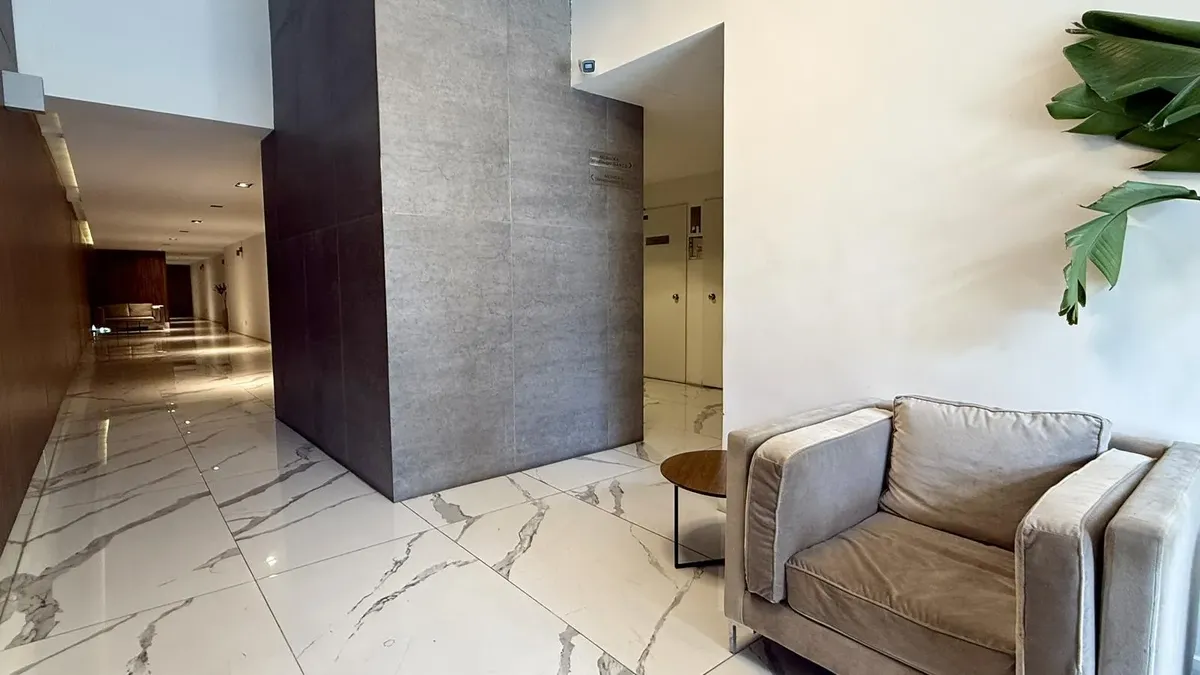 Квартира-студия 25 m² на 2-м этаже, внутренняя планировка (2do cuerpo), окна на улицу Piedras al 1600, район San Telmo. В основном помещении 3 m x 4.9 m есть балкон, кухня интегрирована; отдельная ванная комната. Квартира с мебелью и оборудованием: умный замок, электрическая варочная панель, кондиционер холод/тепло, стойка под TV с местом для хранения. В здании установлены камеры безопасности, есть laundry, помещение для велосипедов, лифты и персонал по уборке по будням. Арендная плата $500.000