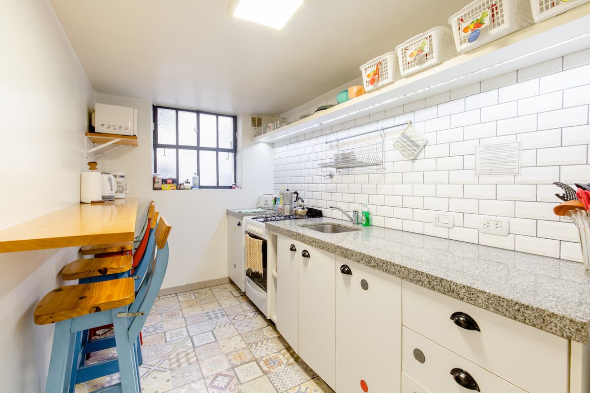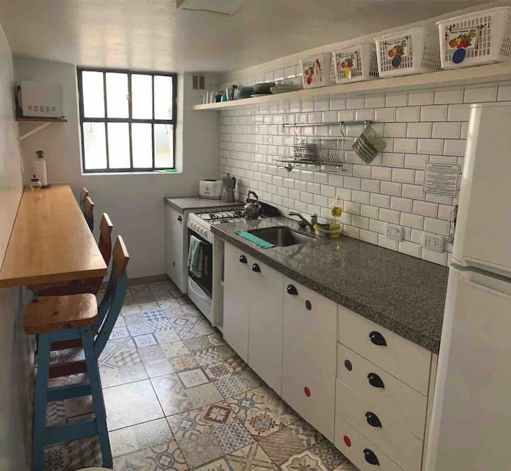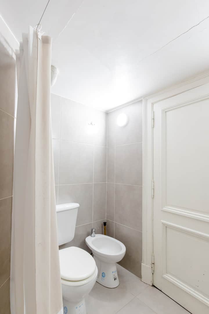 Апартаменты в районе Constitución, с 4 полностью отремонтированными частными комнатами. Гостю предоставляется отдельная комната площадью 20 m² с отдельным ключом. В комнате есть кондиционер hot/cold, письменный стол, системы хранения и собственный балкон. В общих зонах предусмотрены полностью оборудованная кухня, гостиная, 2 ванные комнаты с феном и зона для стирки. Максимальная вместимость дома — 6 гостей, доступен бесплатный WiFi, до метро и Metrobus — 300 м.
