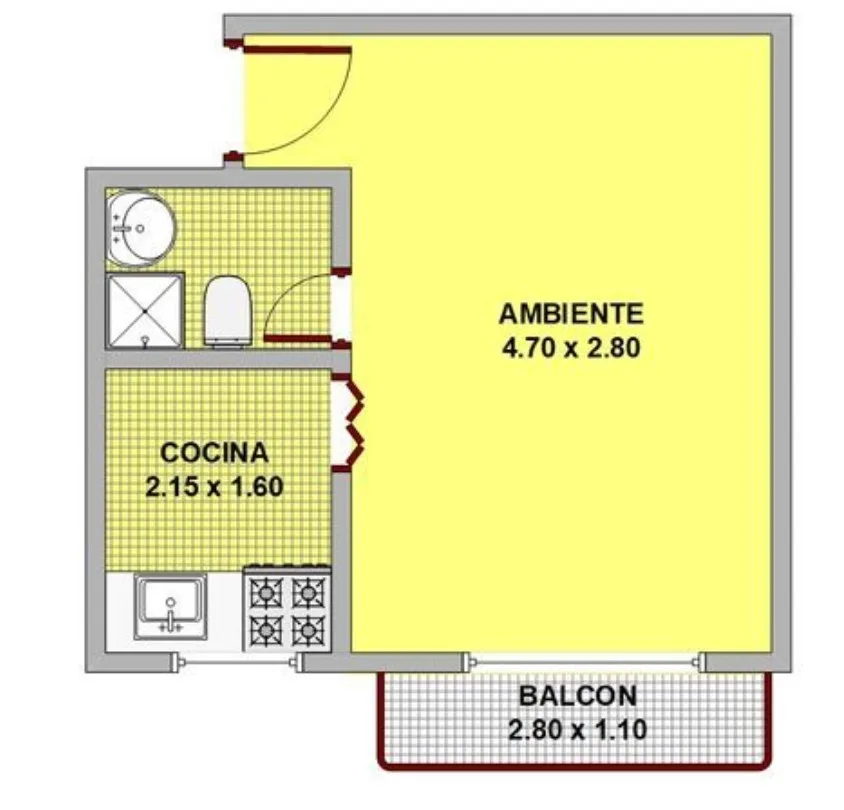 Квартира-студия площадью 30 m² в Constitución, окна на улицу, с открытым видом. Кухня отдельная, ванная комната полностью оборудована. Кондиционер (холод/тепло), газовая духовка и бойлер с помощью calefón; напольное покрытие — паркет. Для стиральной машины предусмотрено подключение. Здание высотой 11 этажей с дежурным; условия аренды: залог-страховка аренды, гарантийный депозит, арендный месяц авансом и подтверждение доходов.