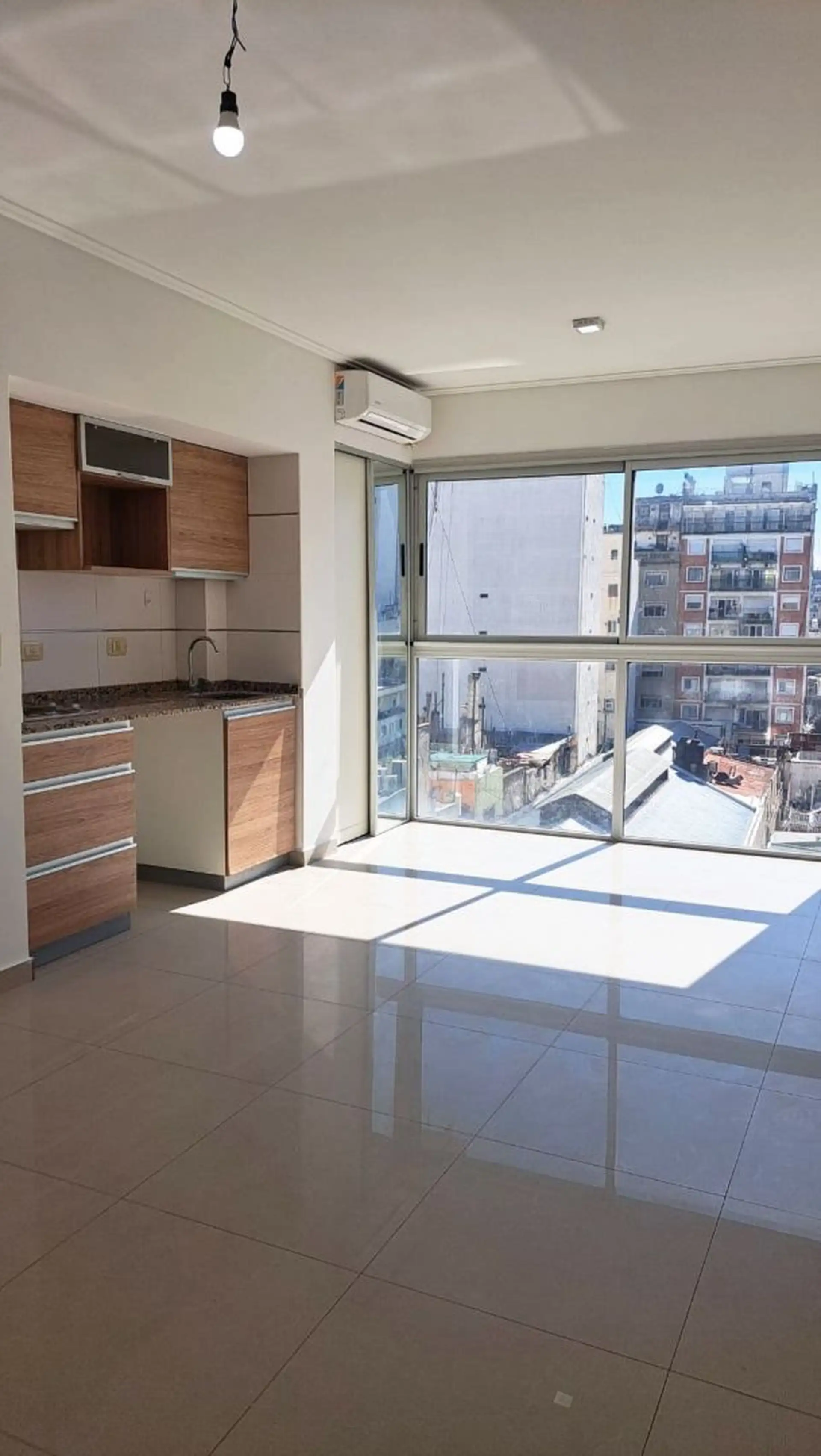 Квартира-студия площадью 30 m² в Monserrat, окна на север. Кухня интегрирована и оснащена электрической варочной поверхностью; установлена мебель под столешницей. Полная ванная комната, горячая вода централизованная. В здании 9 этажей, по 4 квартиры на этаже; есть тренажёрный зал и прачечная с общими стиральными и сушильными машинами. Договор на 2 года, индексация каждые 3 месяца по IPC.