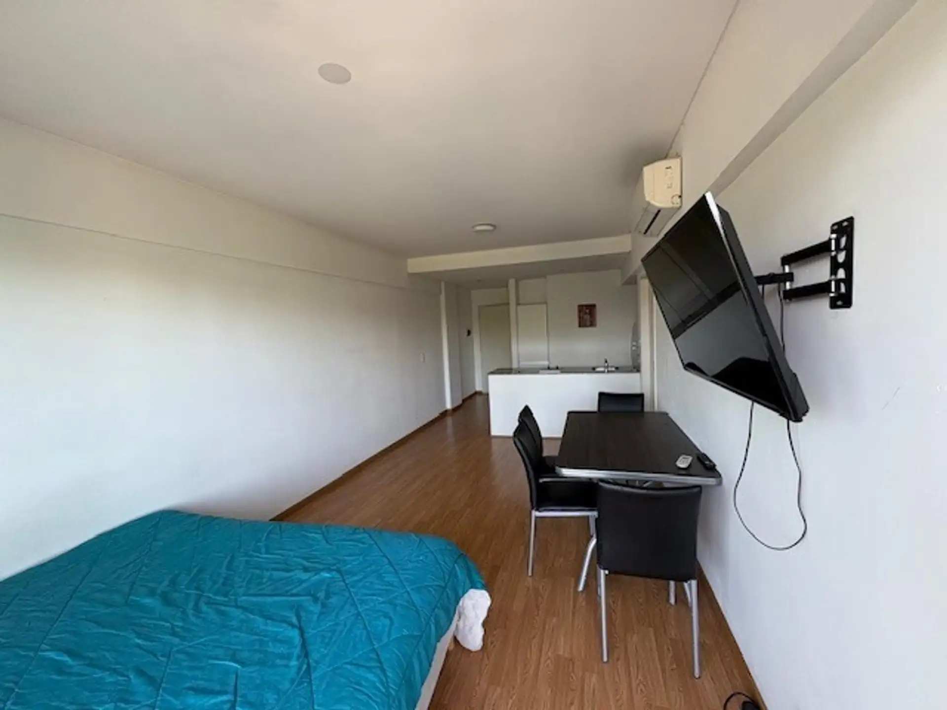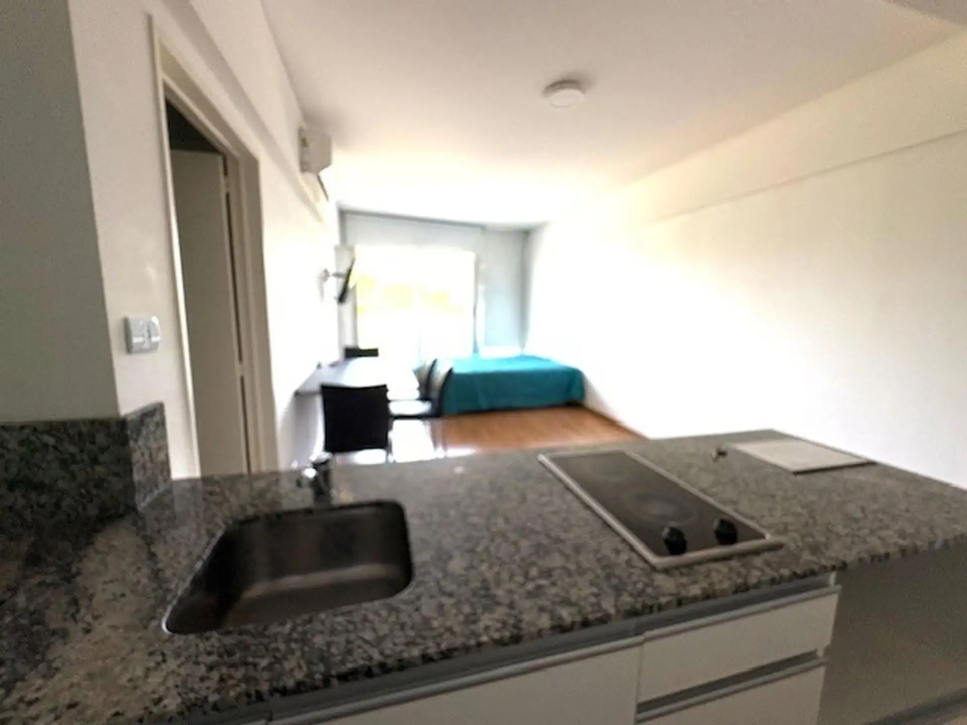 Квартира-студия площадью не указана в Constitución, с мебелью и двуспальной кроватью. Включает холодильник с морозильной камерой, стол на 4 места, варочную панель (anafe), электрическую духовку, кондиционер холод/тепло и Smart TV. В здании работают круглосуточная охрана, зоны гриля, солярий и прачечная. Договор на 24 месяца с поквартальным увеличением. Соблюдаются требования Ley 5115.