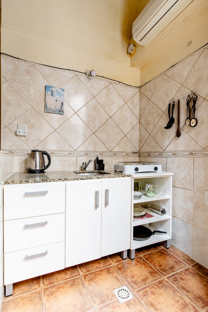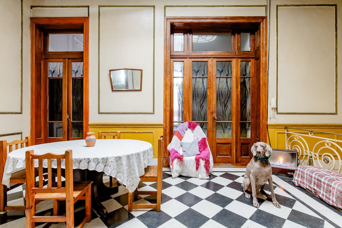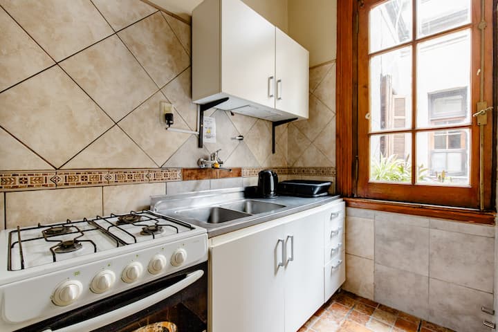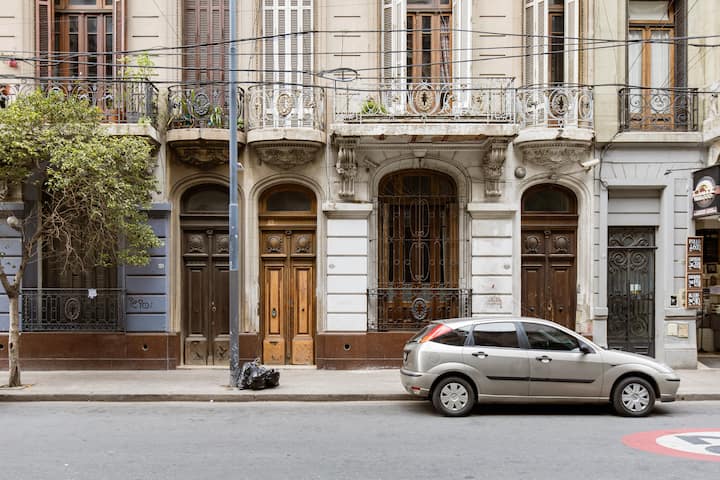 Лофт в Constitución. Внутренние помещения дома старой застройки в Buenos Aires с большой площадью и окнами. Есть гостиная, ванные комнаты и оборудованные кухни с подачей воды и природным газом 24 часа в сутки, Wi‑Fi и автоматическая стиральная машина. Вход в квартиру осуществляется по лестнице. Расстояние до Obelisco — 12 кварталов, до San Telmo — 1 квартал, до Caminito (Barrio de La Boca) — 20 кварталов.