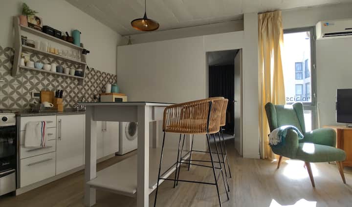 Квартира-студия в San Telmo с мебелью. Есть частный балкон, на который попадает солнце в течение дня. В подборке Time Out отмечена как один из 11 лучших вариантов для краткосрочного проживания в Buenos Aires.