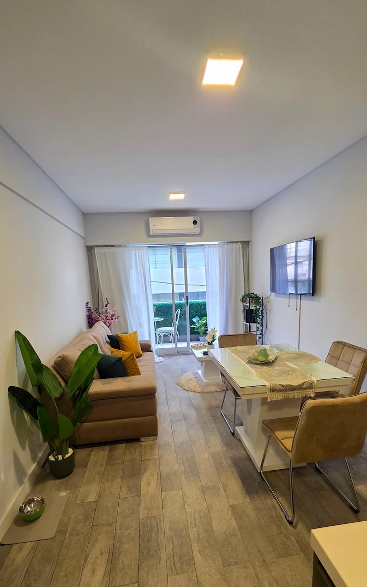 Квартира в Constitución. В описании указаны современность и яркое освещение, а также меблировка и оснащение для проживания. Есть балкон. О других характеристиках площади, этажности и планировке данных нет.