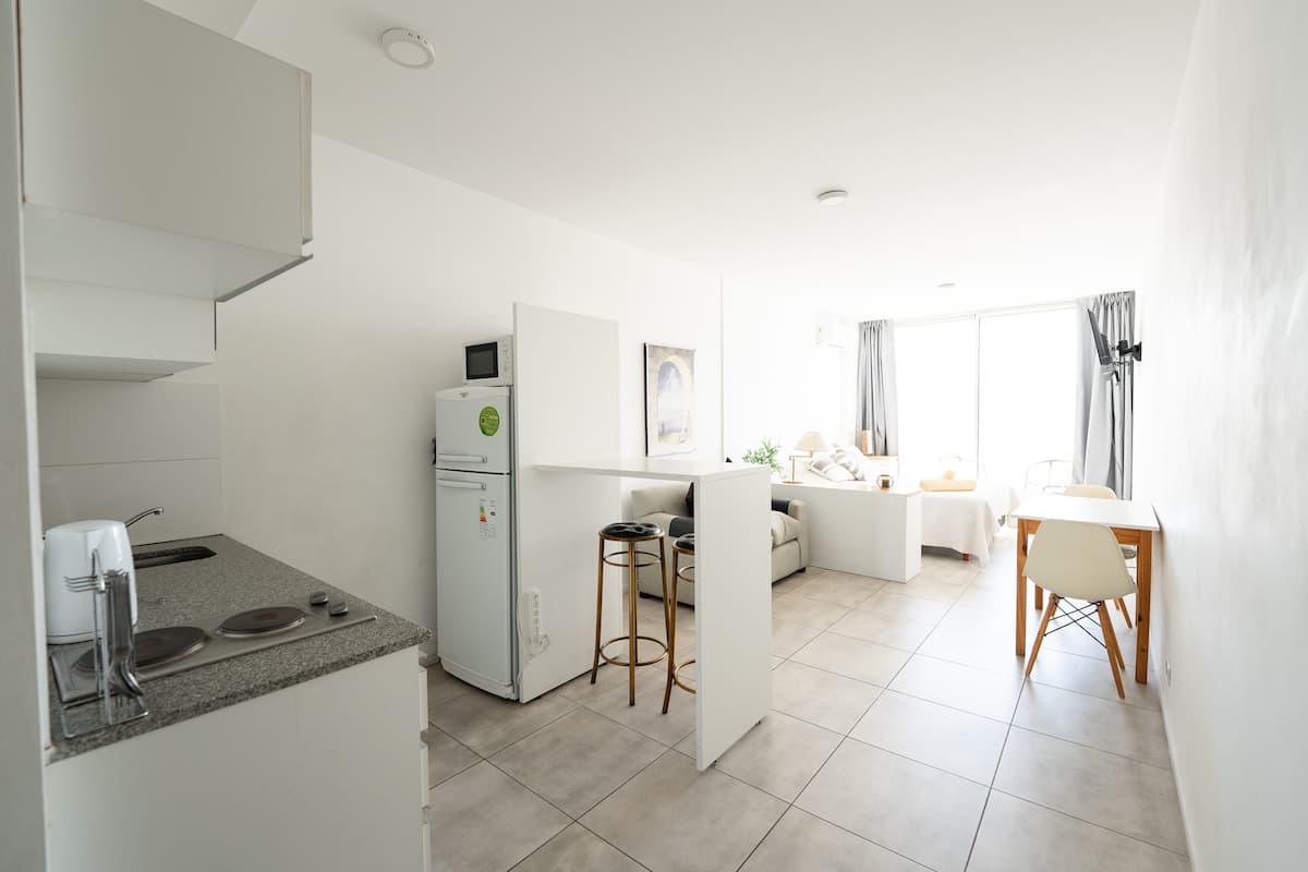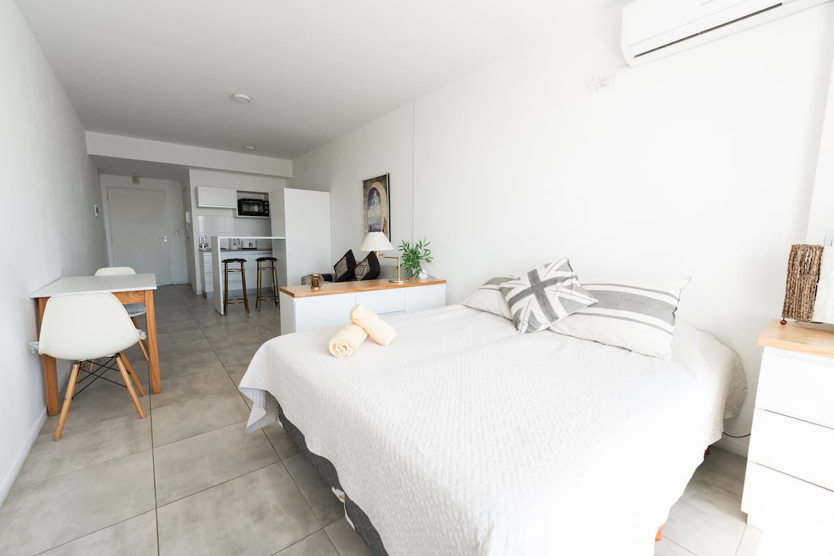 Квартира на тихой улице в Constitución. В доме недалеко от UADE и рядом с линиями C и E метрополитена. Для размещения на срок от 15 ночей требуется дополнительная услуга уборки, которая оплачивается и организуется раз в две недели.